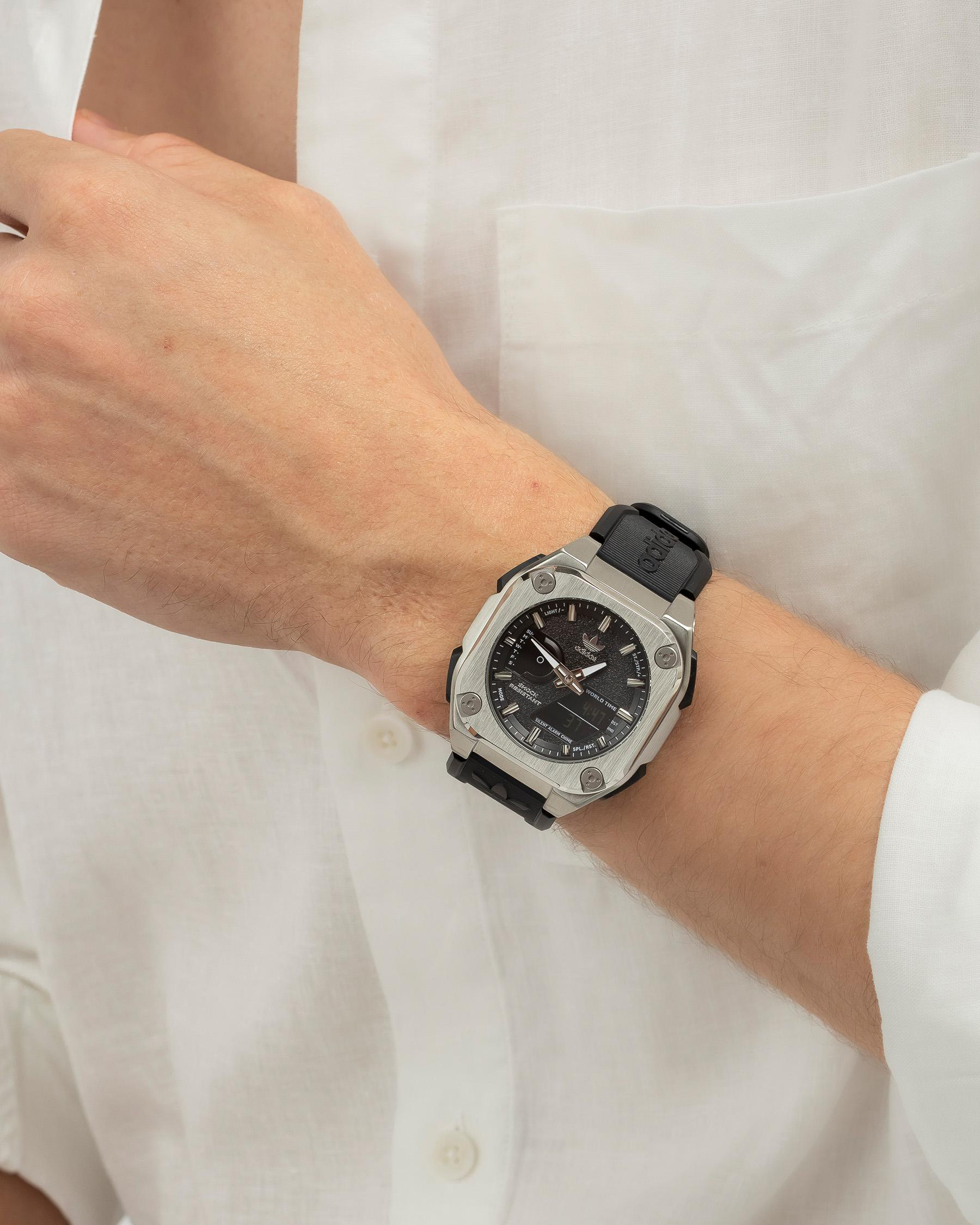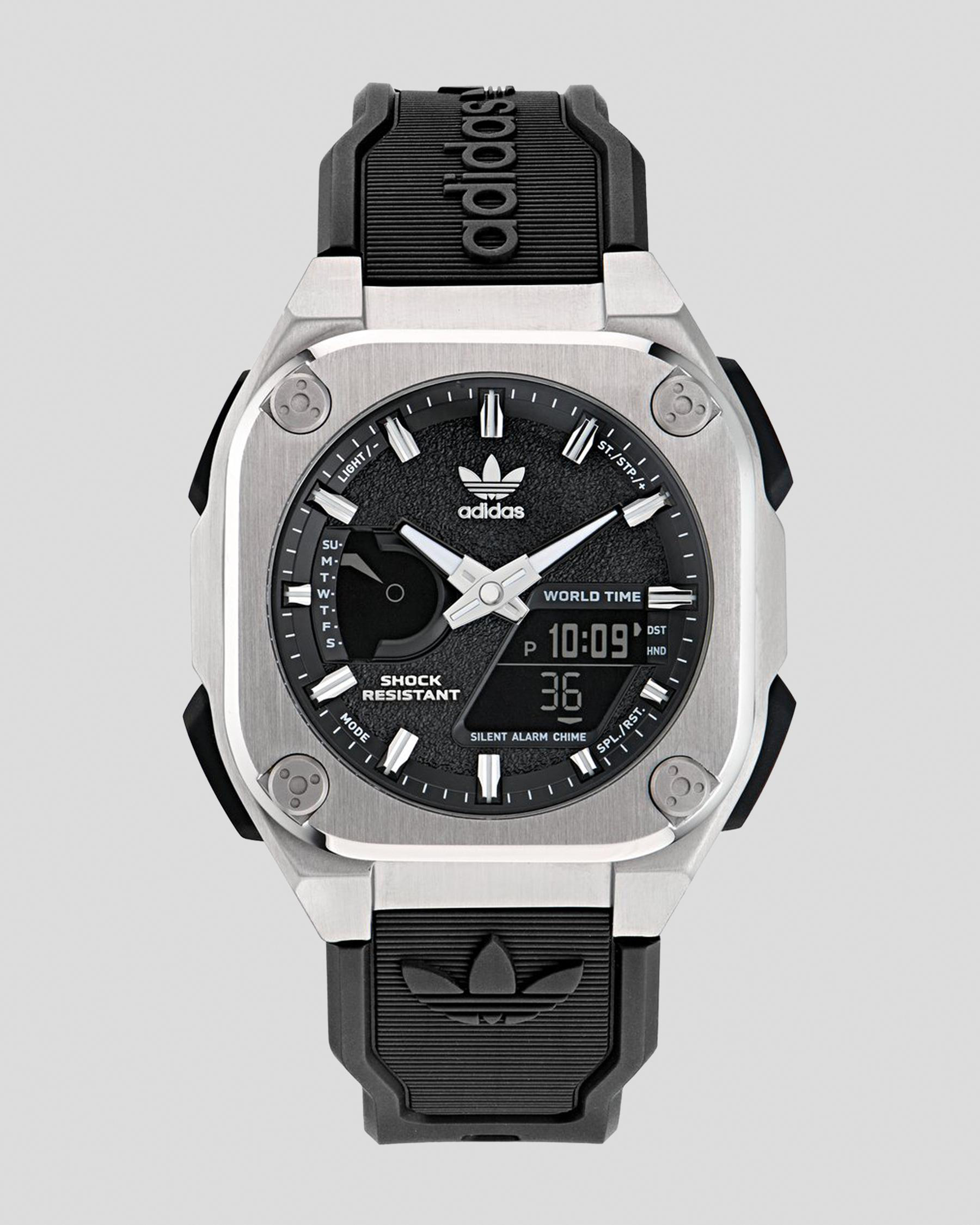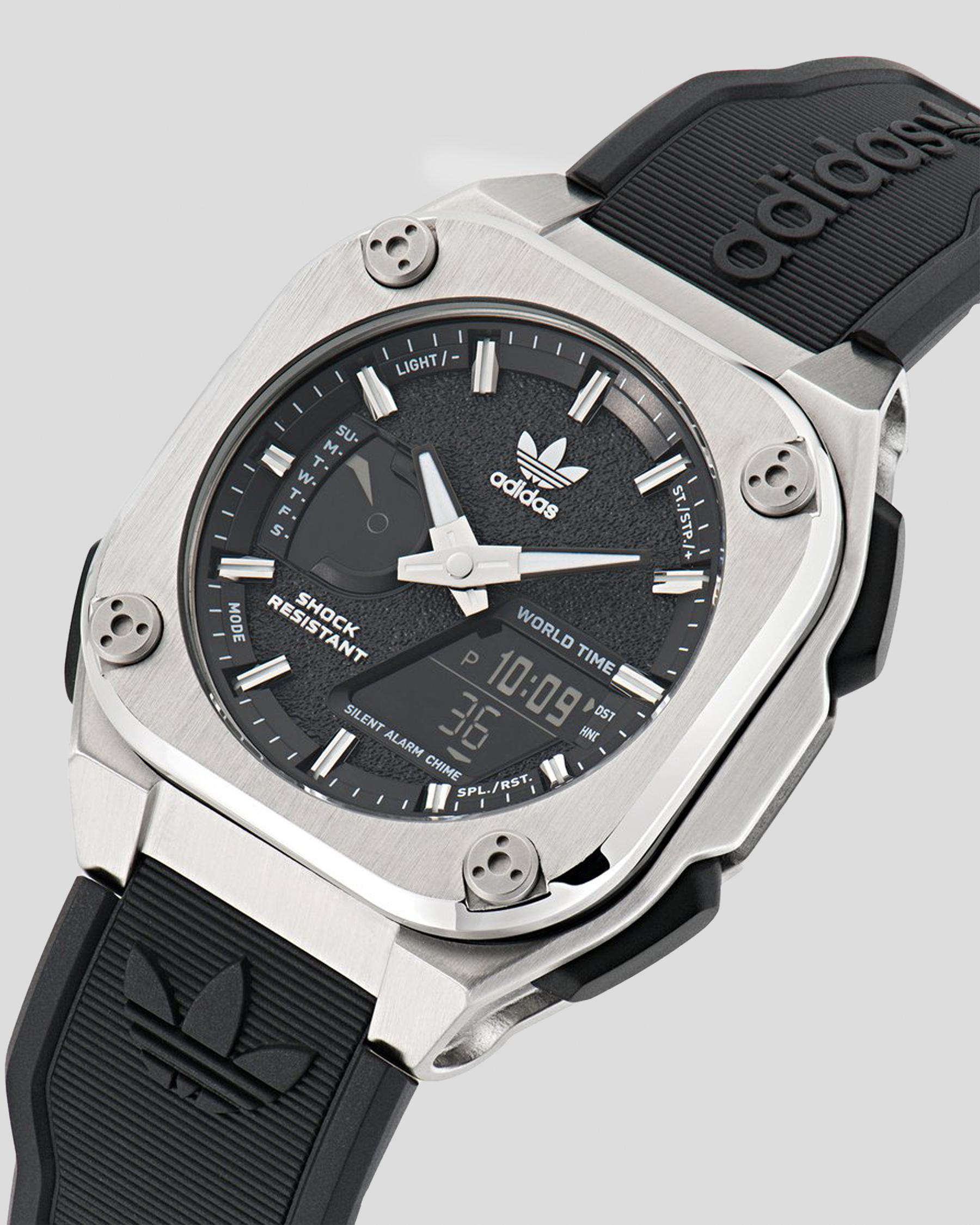 This adidas Originals watch mixes high resistance, strong character and cutting-edge functions.