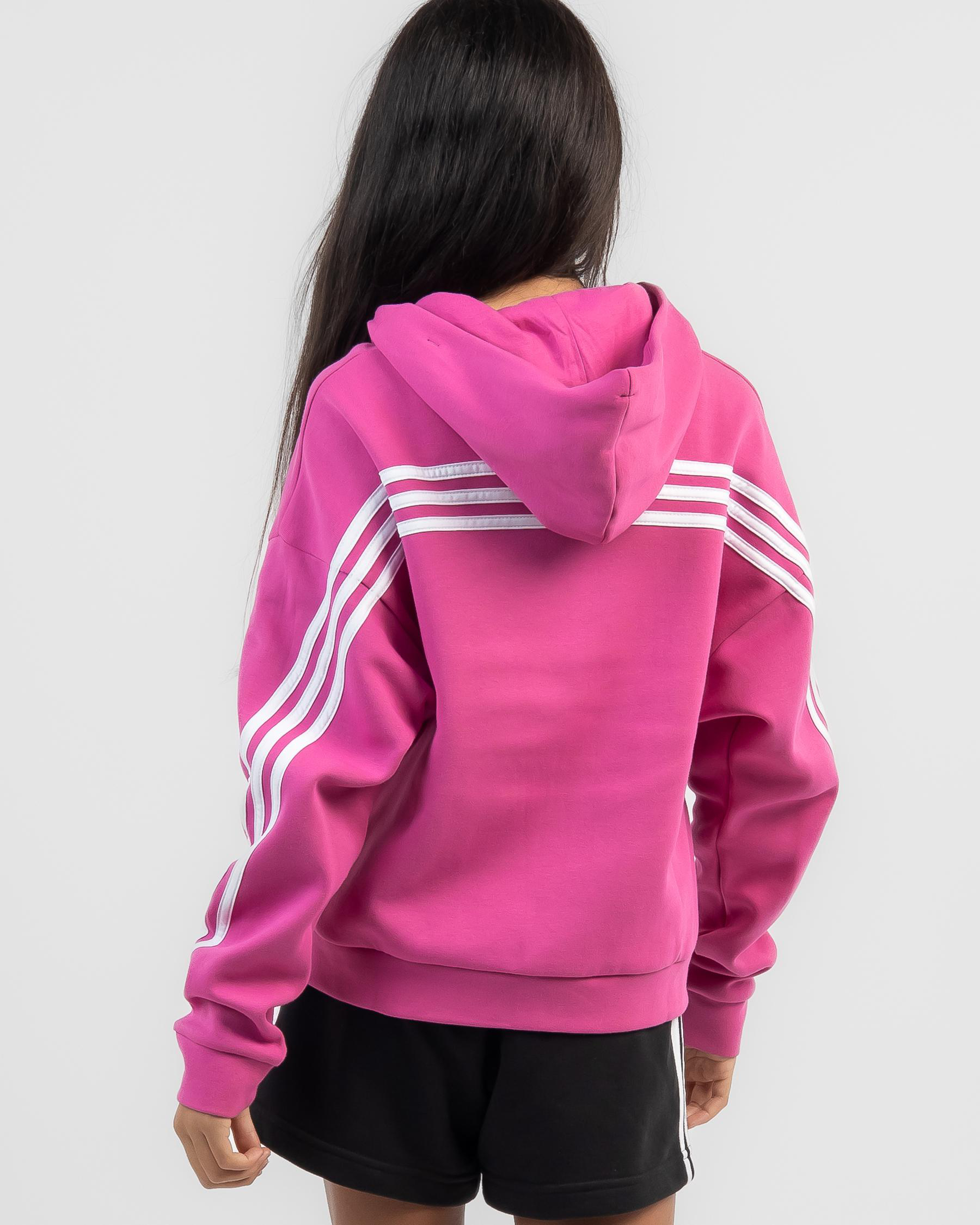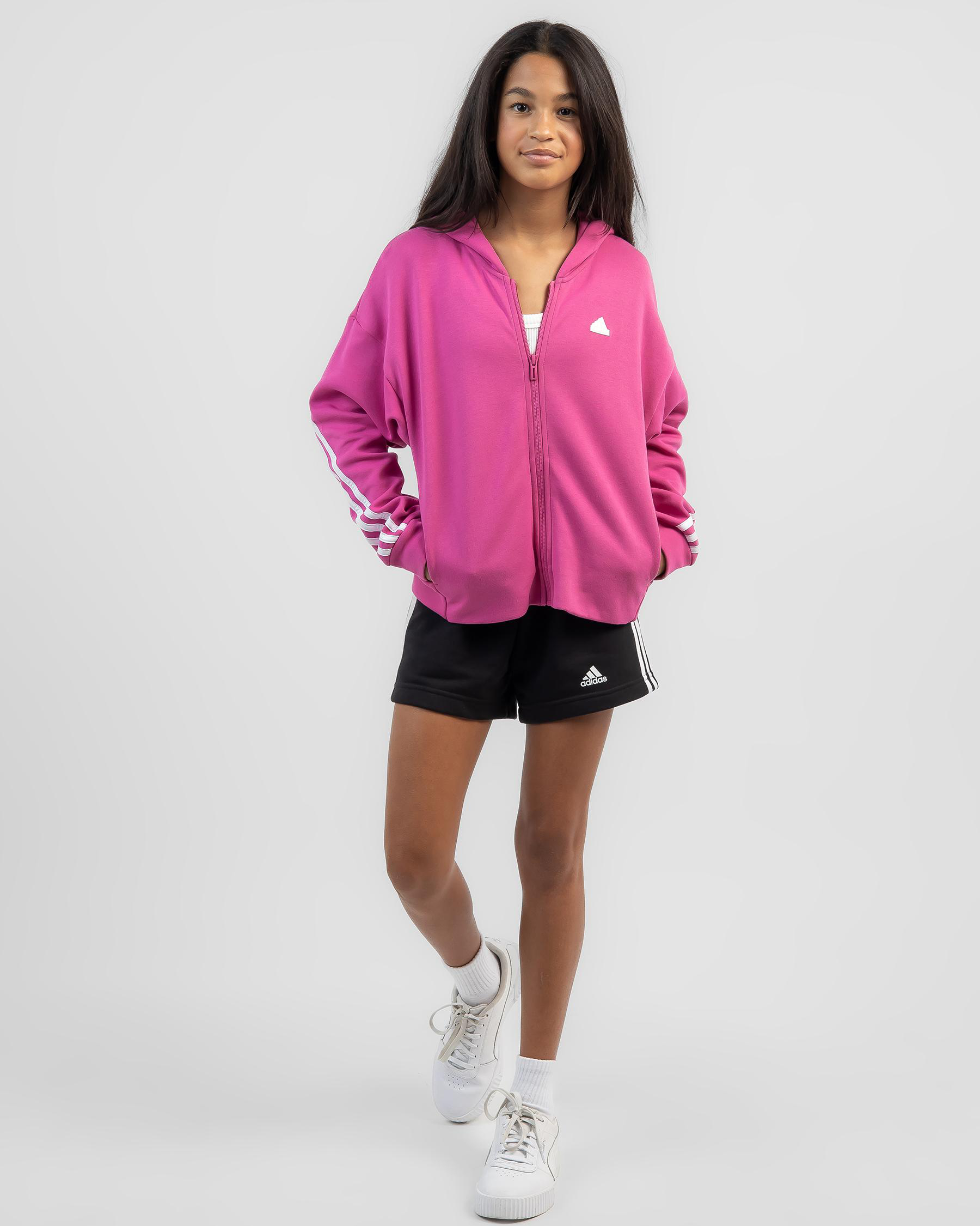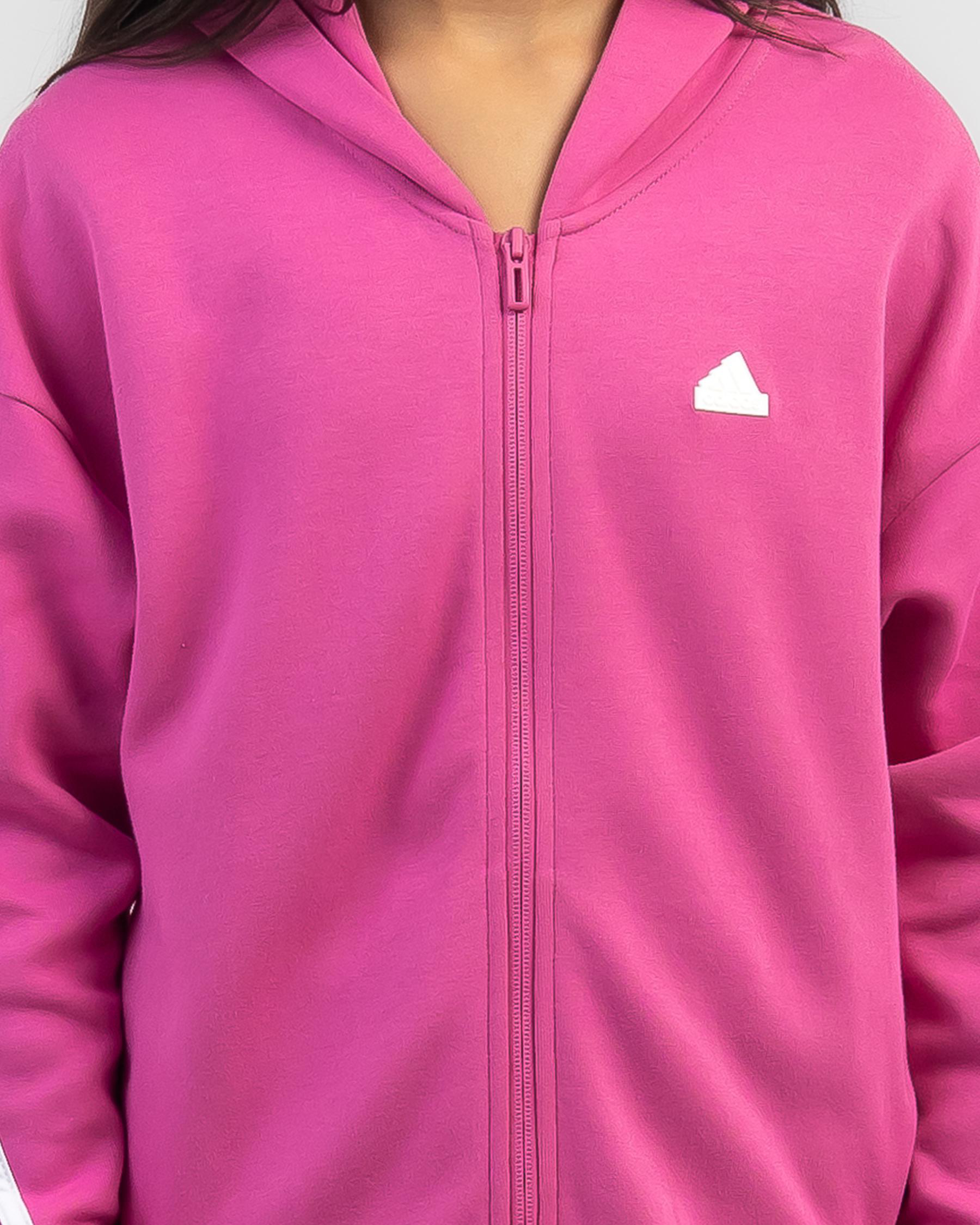 Stay cozy and stylish in the adidas Girls' Future Icons Zip Hoodie in eye-catching Fuchsia. Perfect for her active lifestyle.