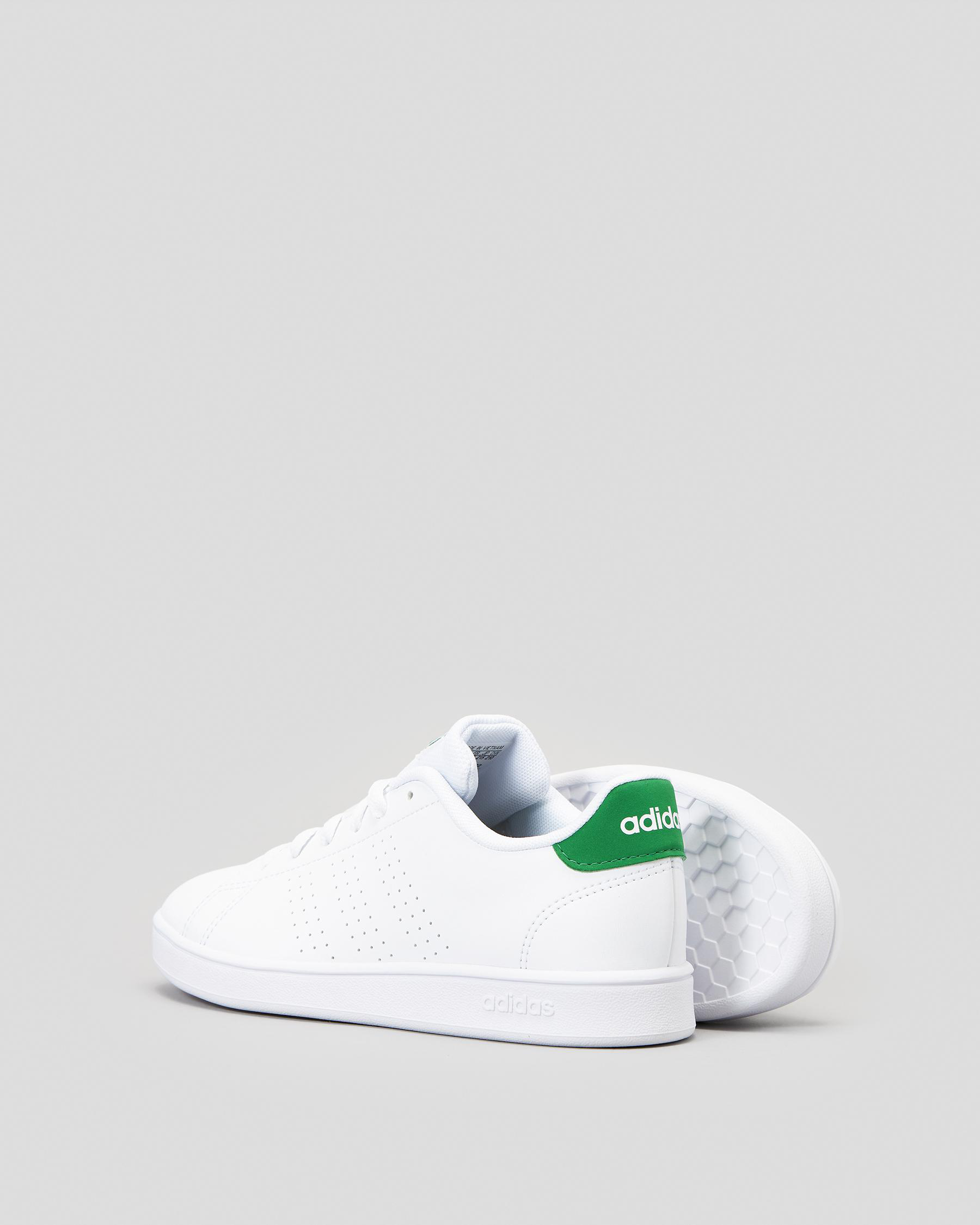 Step up your game in these adidas Junior Boys' Advantage Shoes featuring a sleek ftwr white design with accents of green and core black. Perfect for on and off the court.