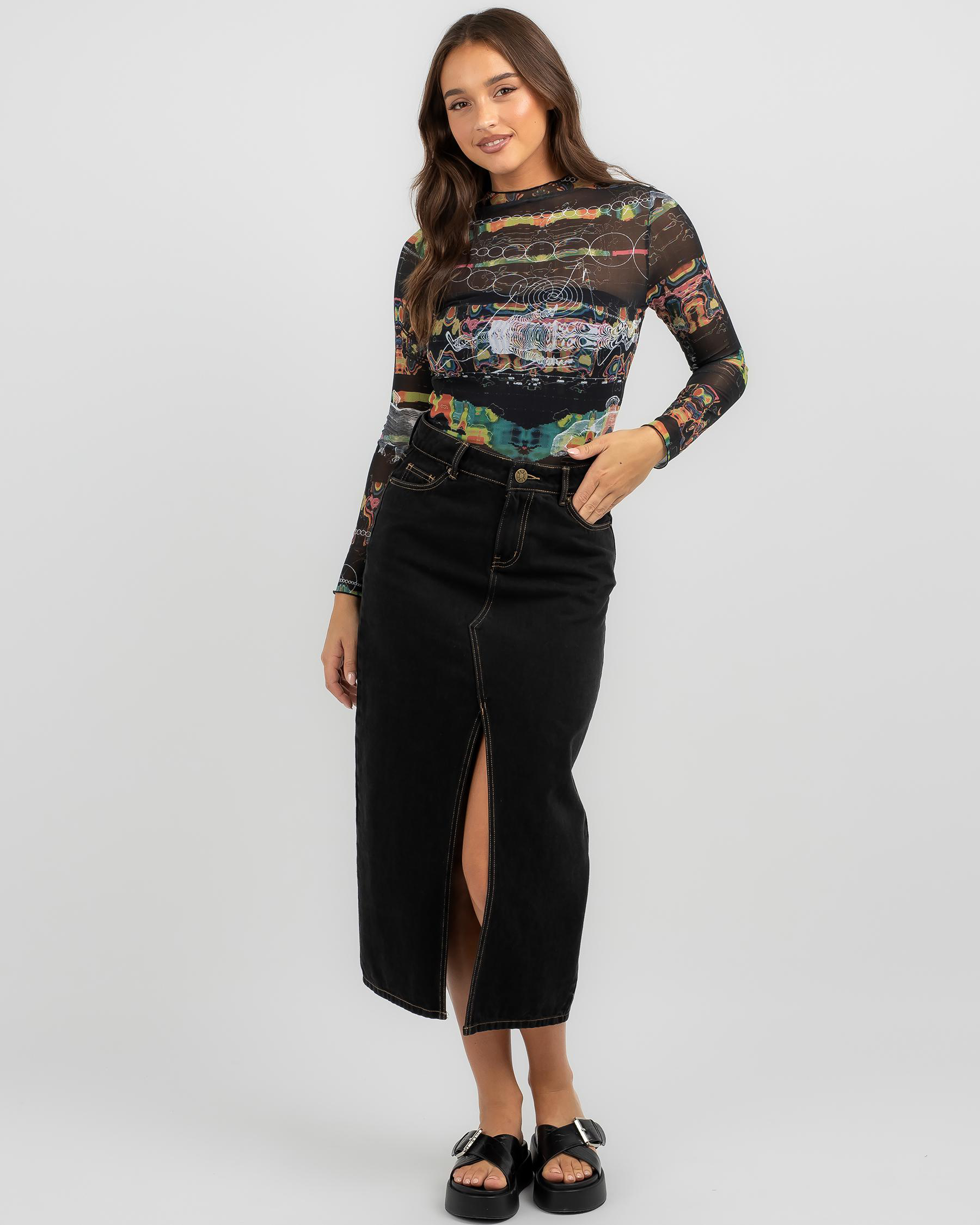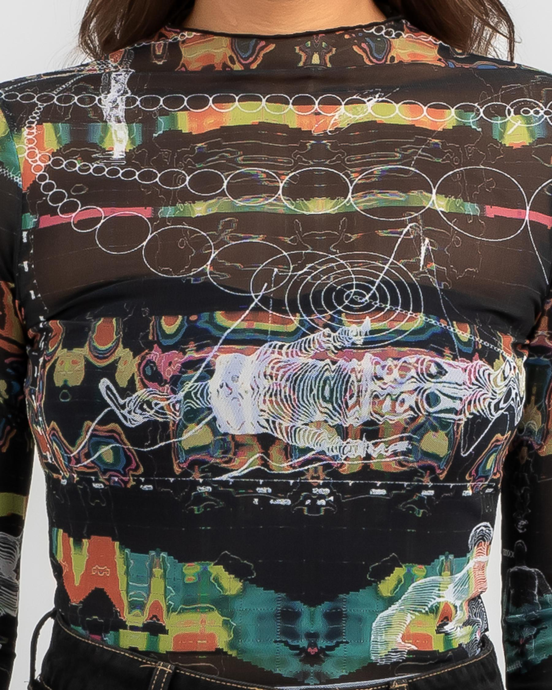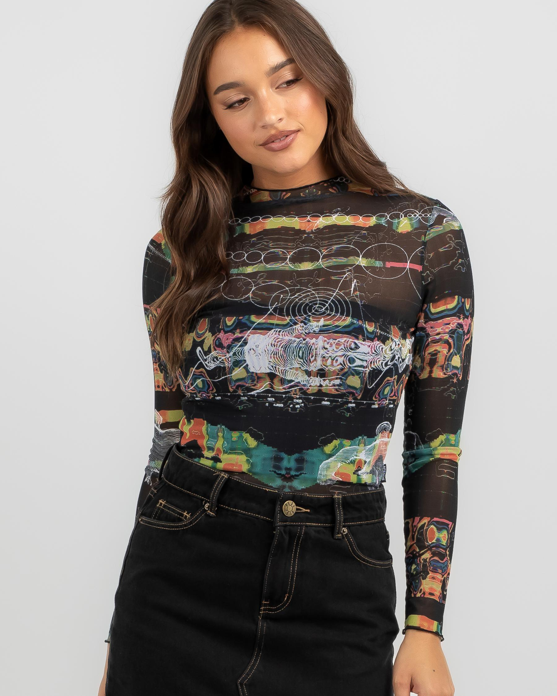 The Afends Astral Sheer Long Sleeve Top in Black is a versatile and stylish addition to your wardrobe, perfect for layering or wearing on its own.
