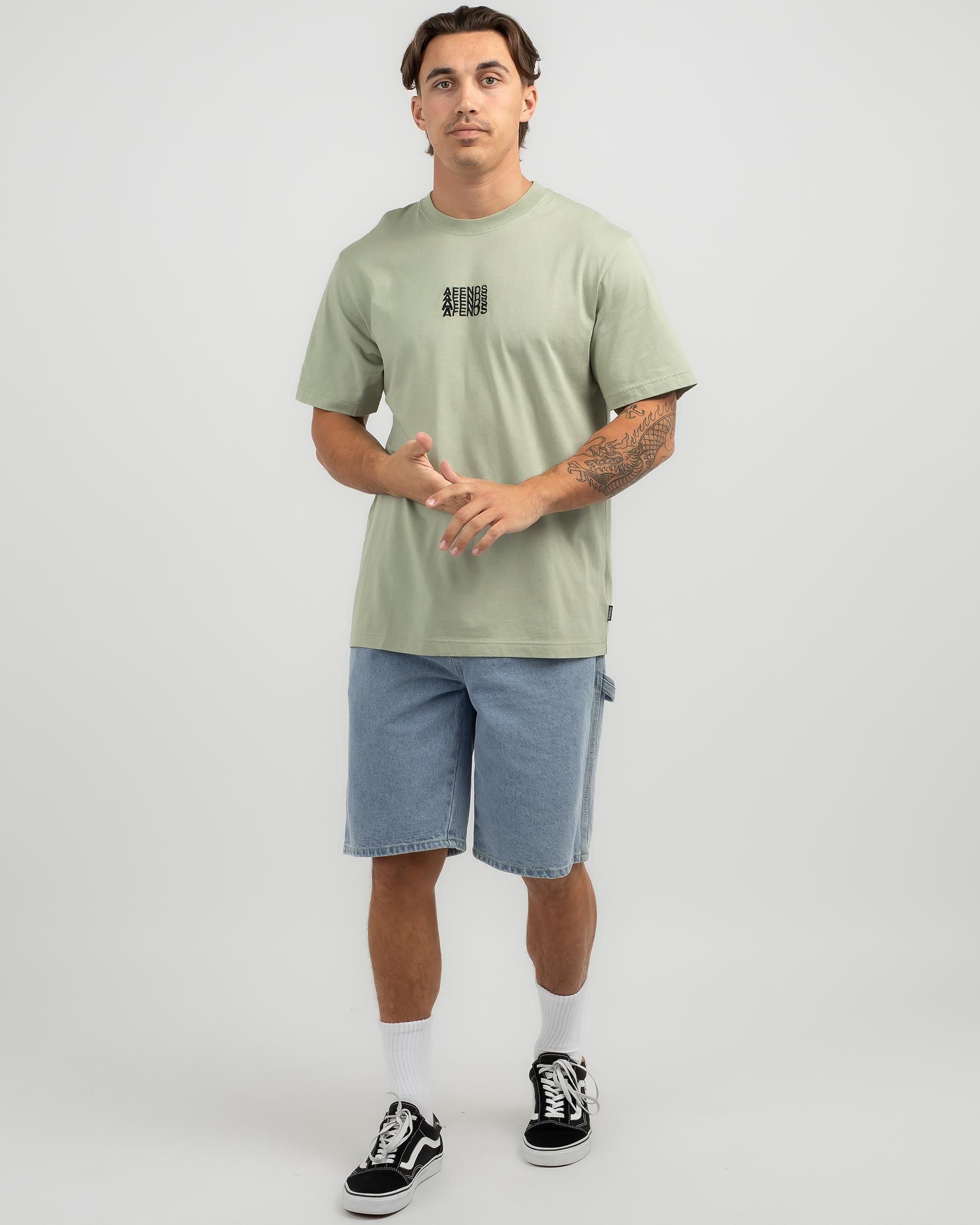 The Afends Limits T-Shirt in Eucalyptus is a versatile addition to your wardrobe with its fresh and modern green hue.