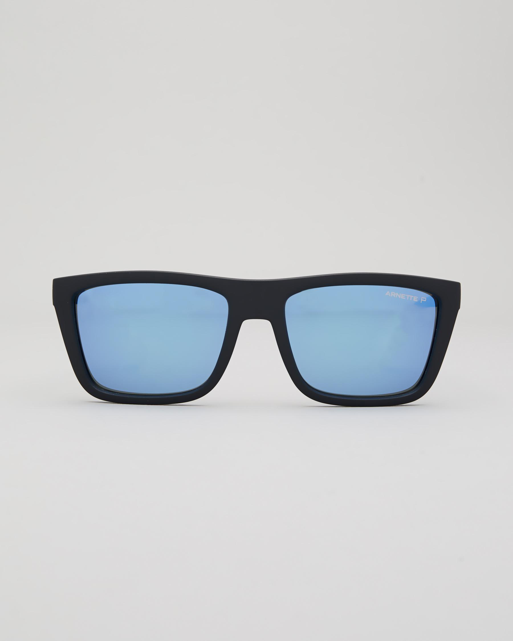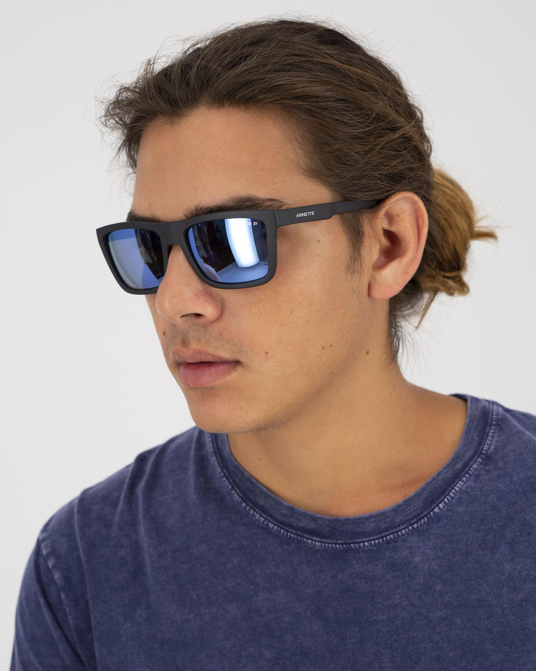 These Arnette men's sunglasses feature a bold, square frame with stepped temples embellished with the classic Arnette logo.