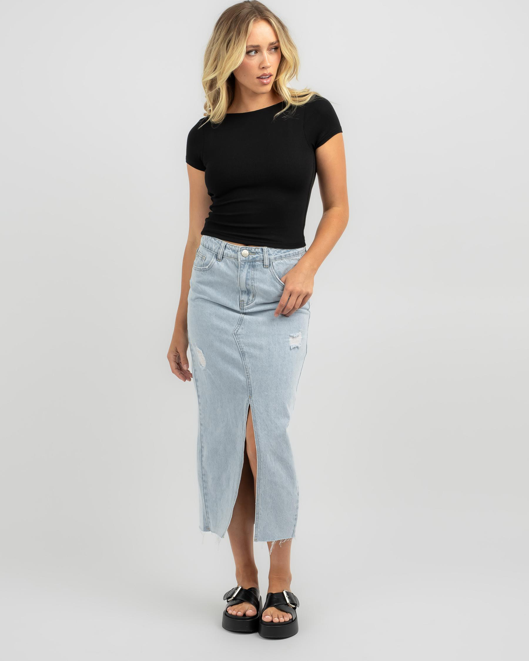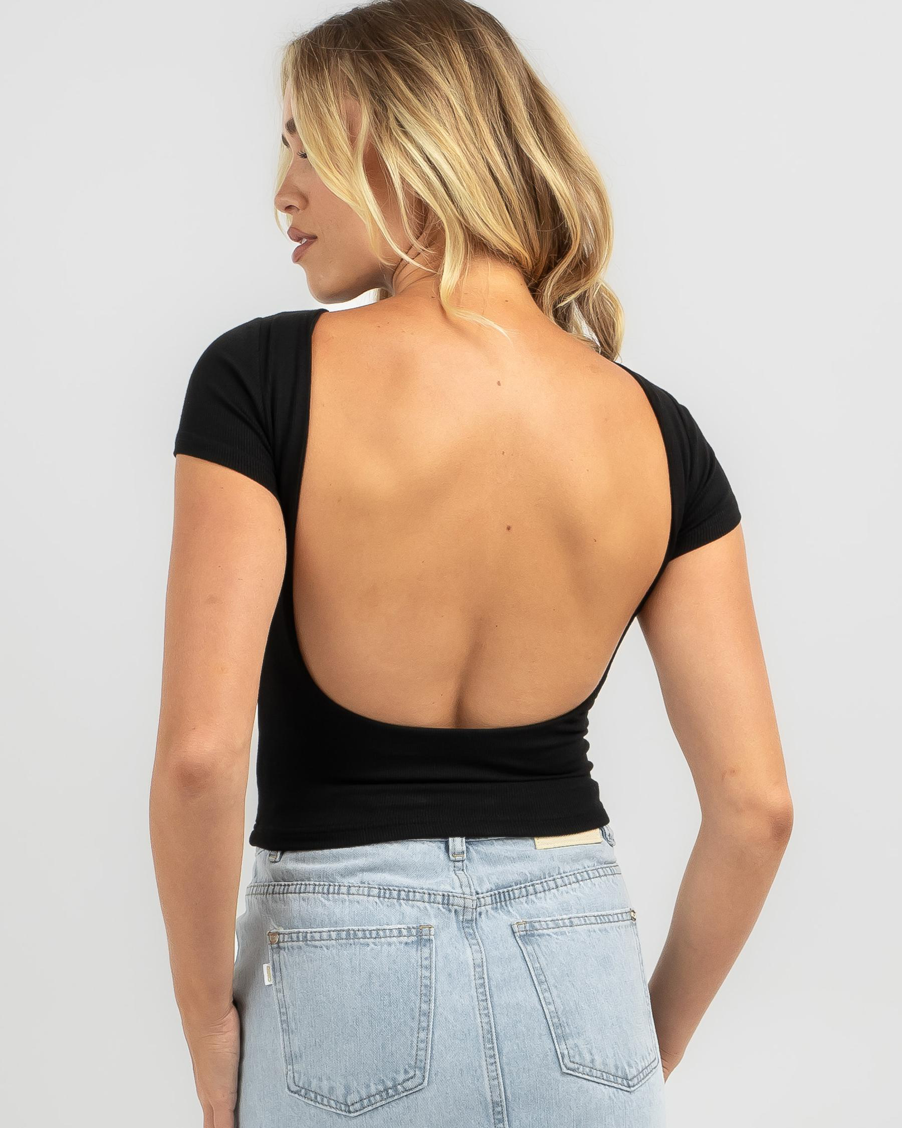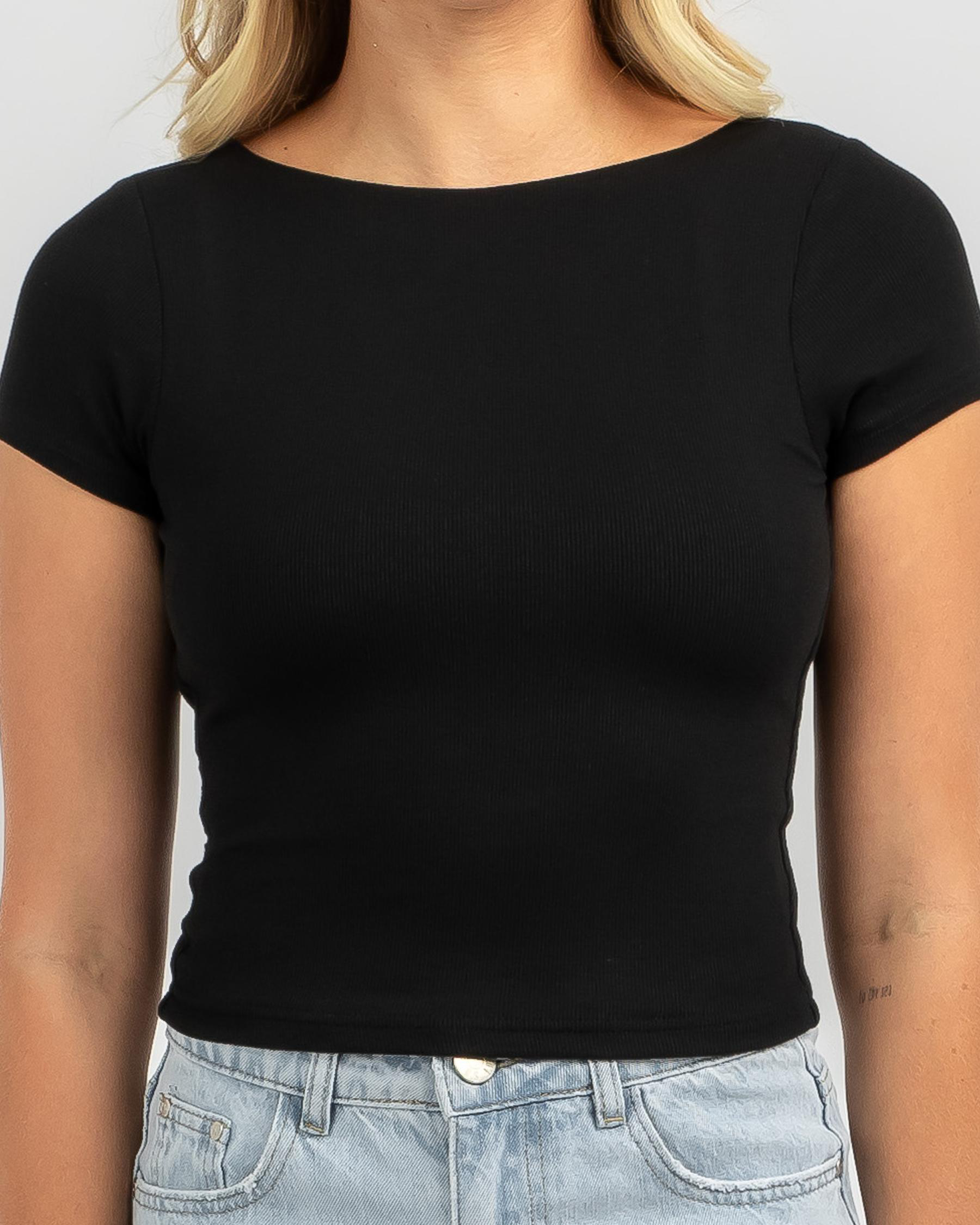 Elevate your basics collection with the Ava And Ever Basic Fine Rib Backless Tee in sleek black. Perfect for a stylish and versatile look.