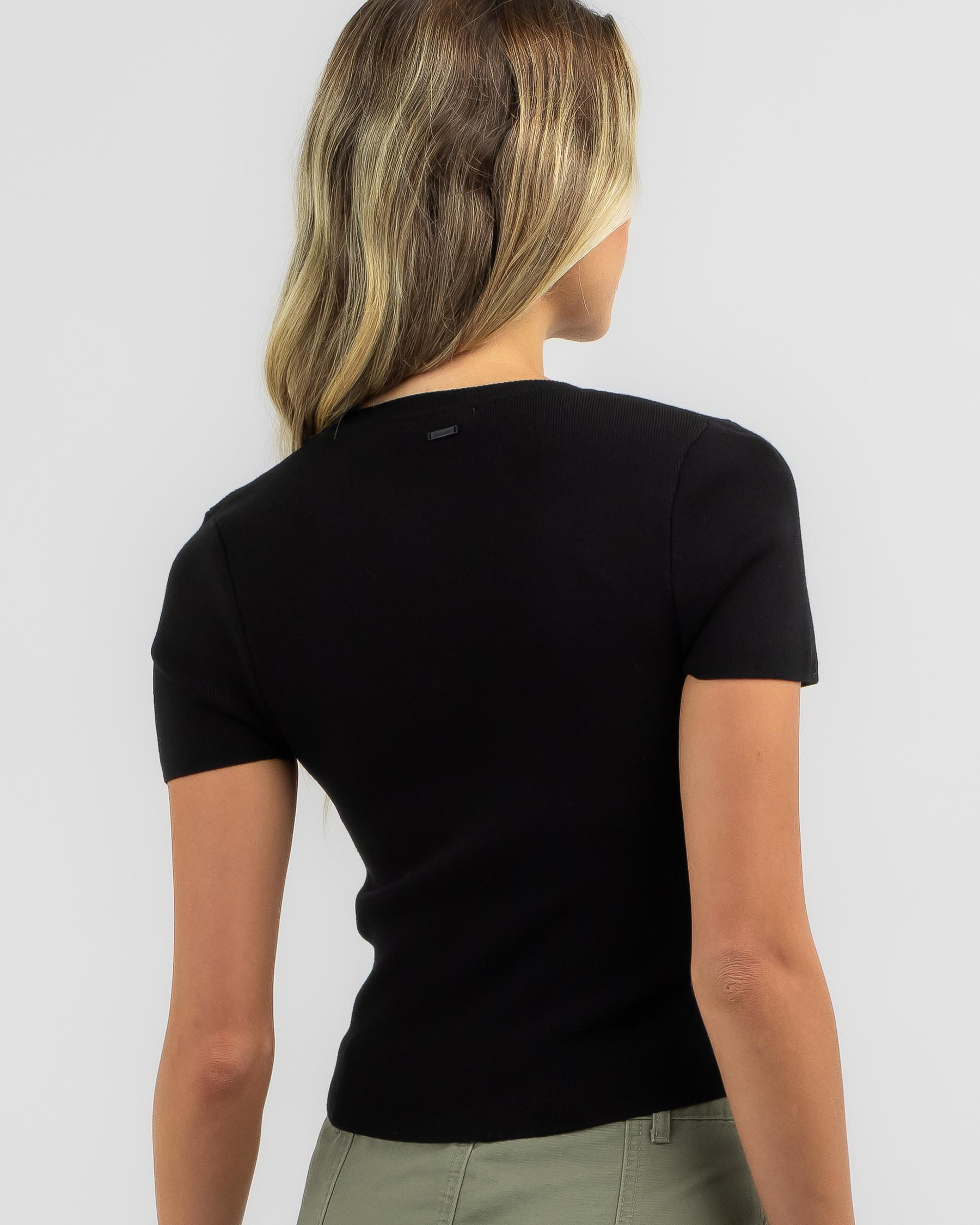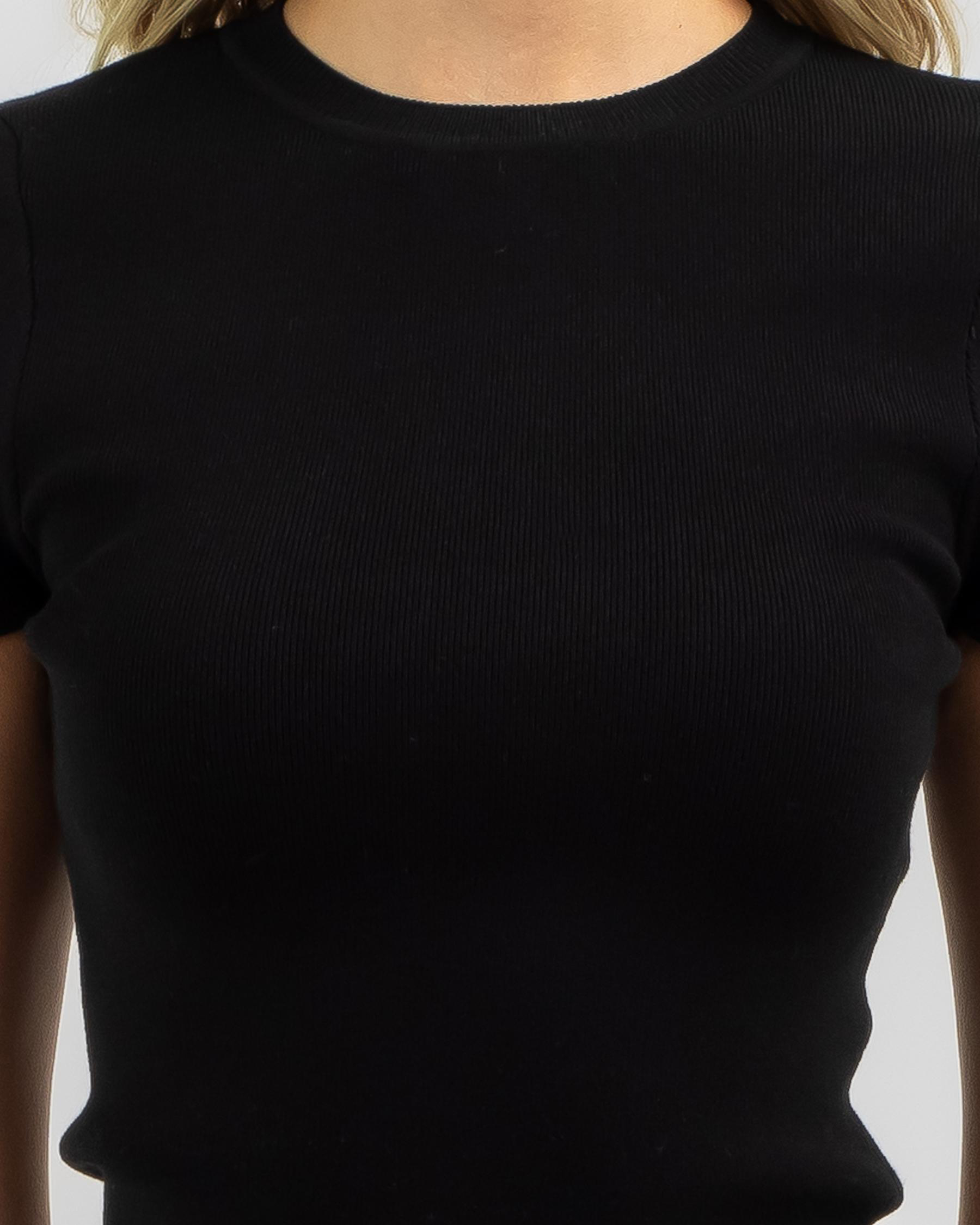 The Ava And Ever Basic Knit Tee in Black is a versatile wardrobe staple that can be dressed up or down for any occasion.