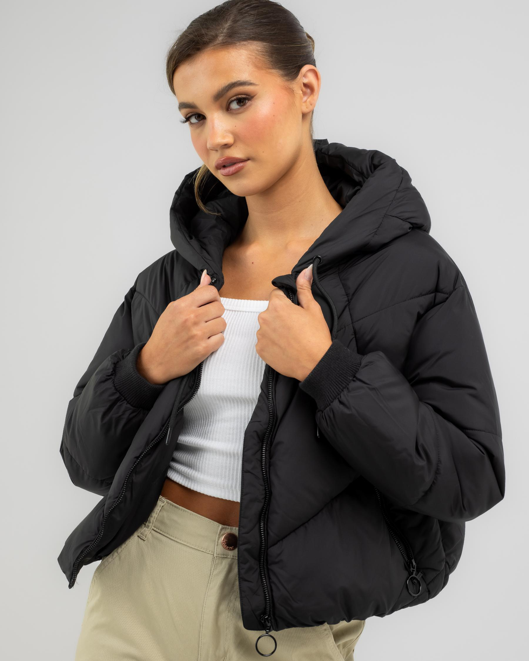 Stay warm and stylish in the Ava And Ever Fate Puffer Jacket in classic black. Perfect for chilly days and versatile enough to match any outfit.