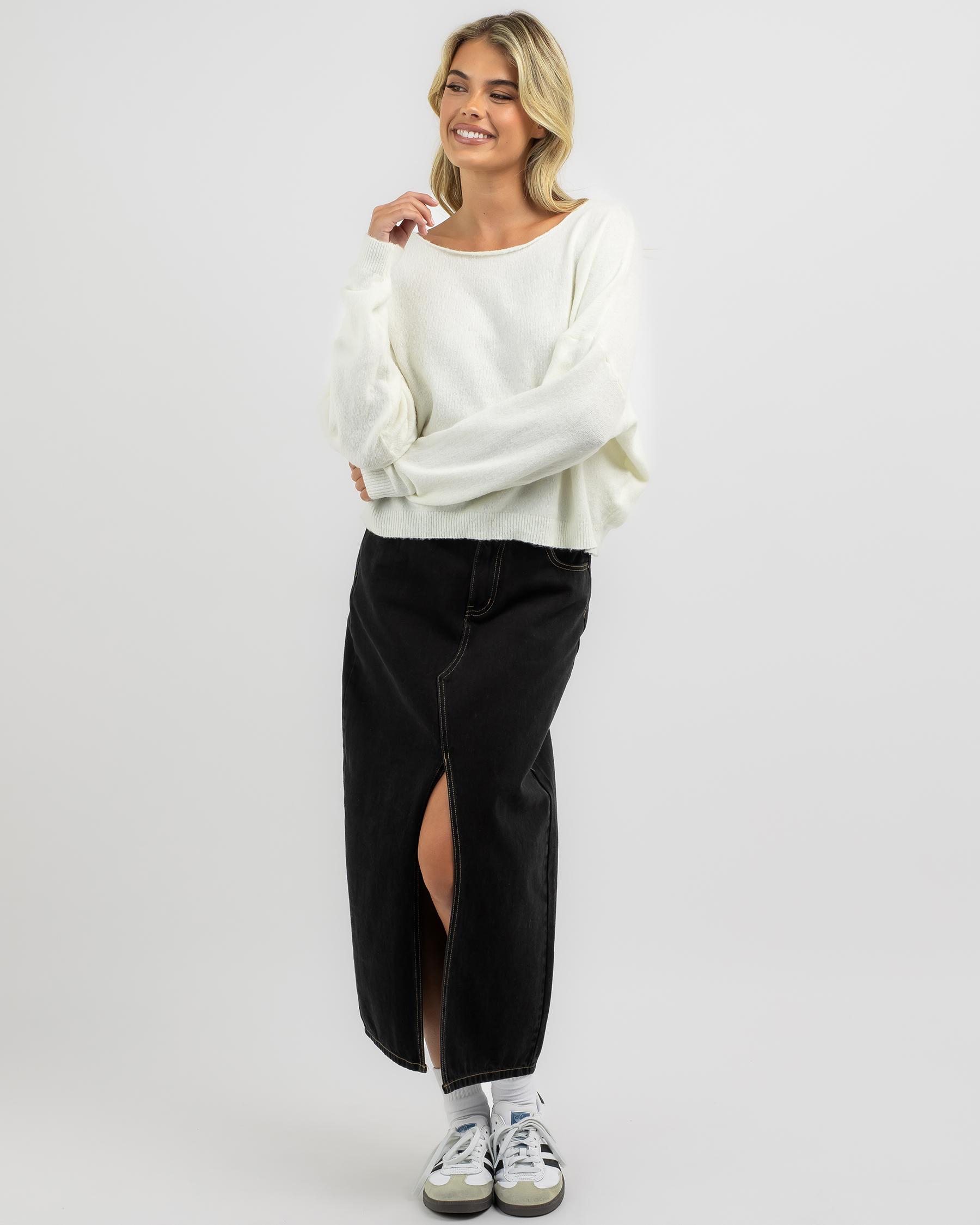 The Ava And Ever Fromey Off Shoulder Knit Jumper in Black exudes chic sophistication with its off-shoulder design and cozy knit fabric. Upgrade your winter wardrobe with this versatile staple.