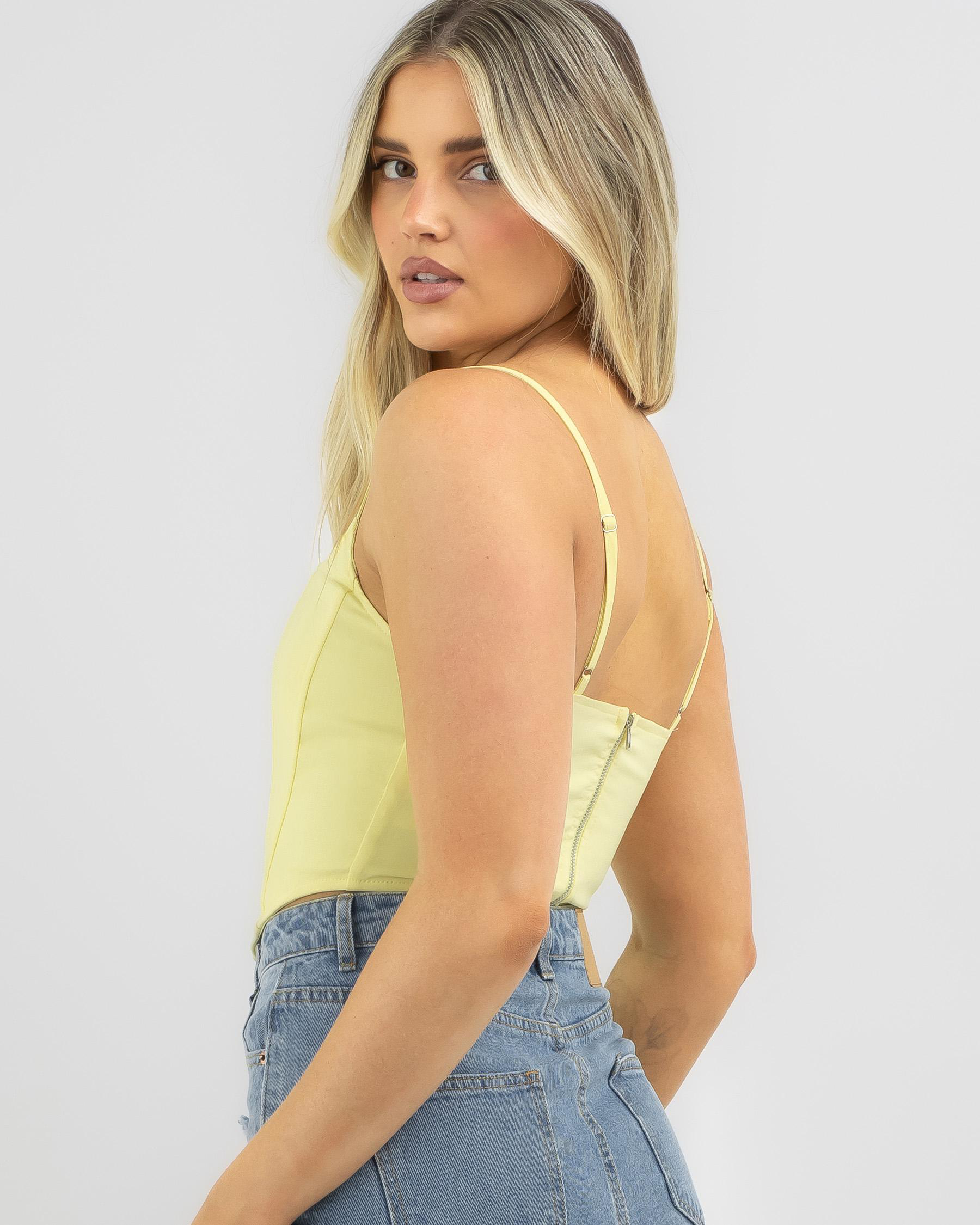 Elevate your summer wardrobe with the Ava And Ever Lamar Corset Top in Lemon. This vibrant top is perfect for adding a pop of colour to any outfit.