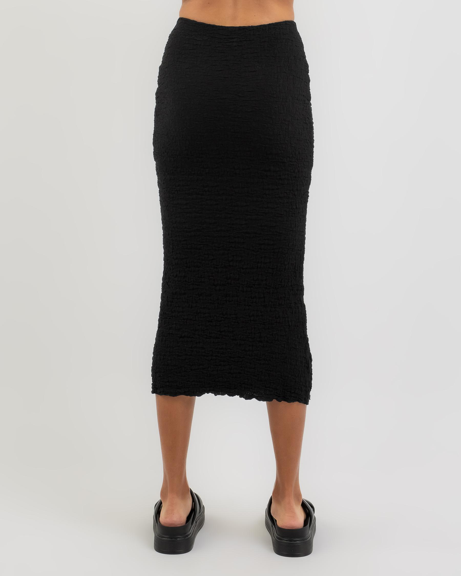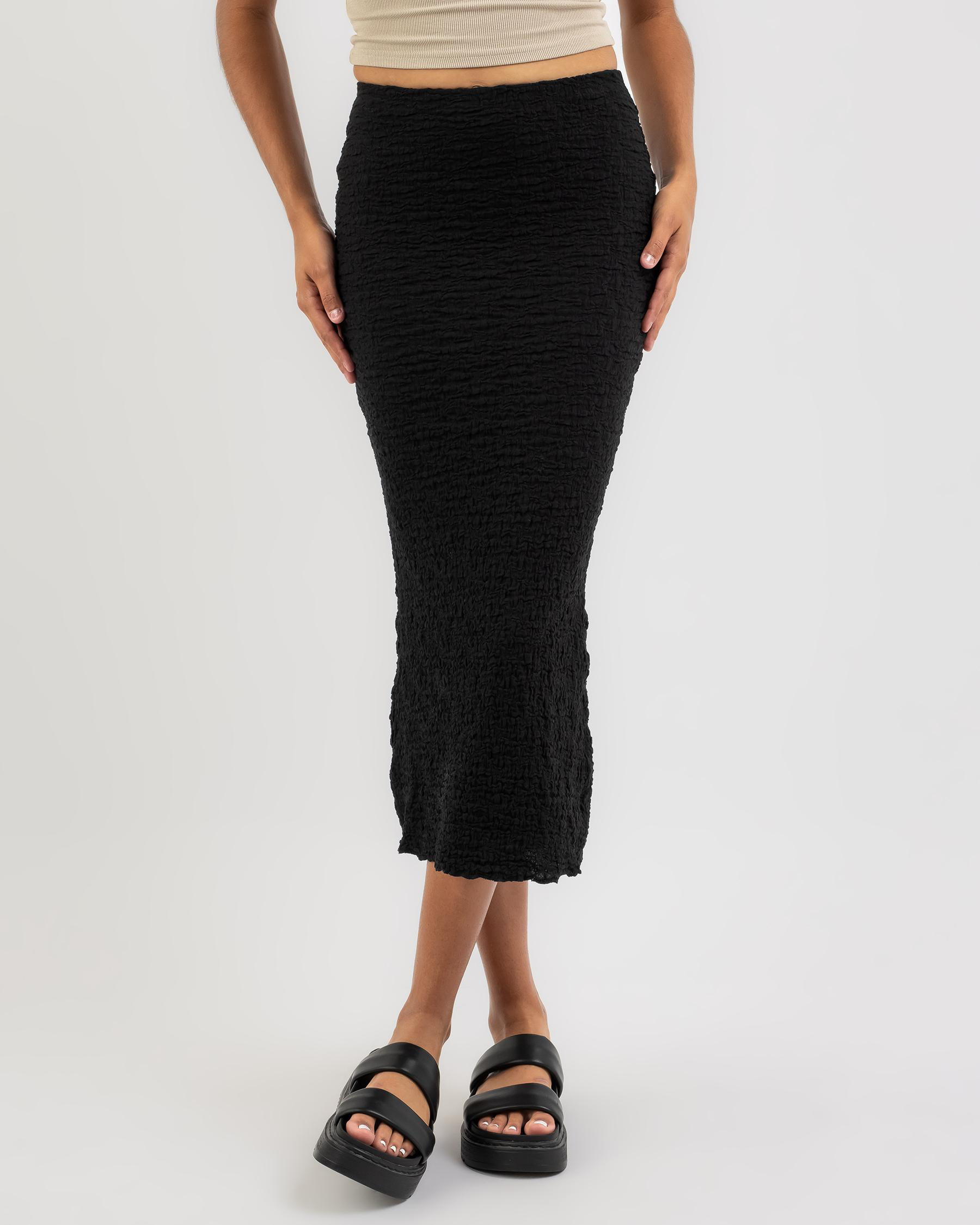 The Ava and Ever Lennox Midi Skirt in Black is a versatile wardrobe staple, perfect for pairing with any top for a chic and stylish look.