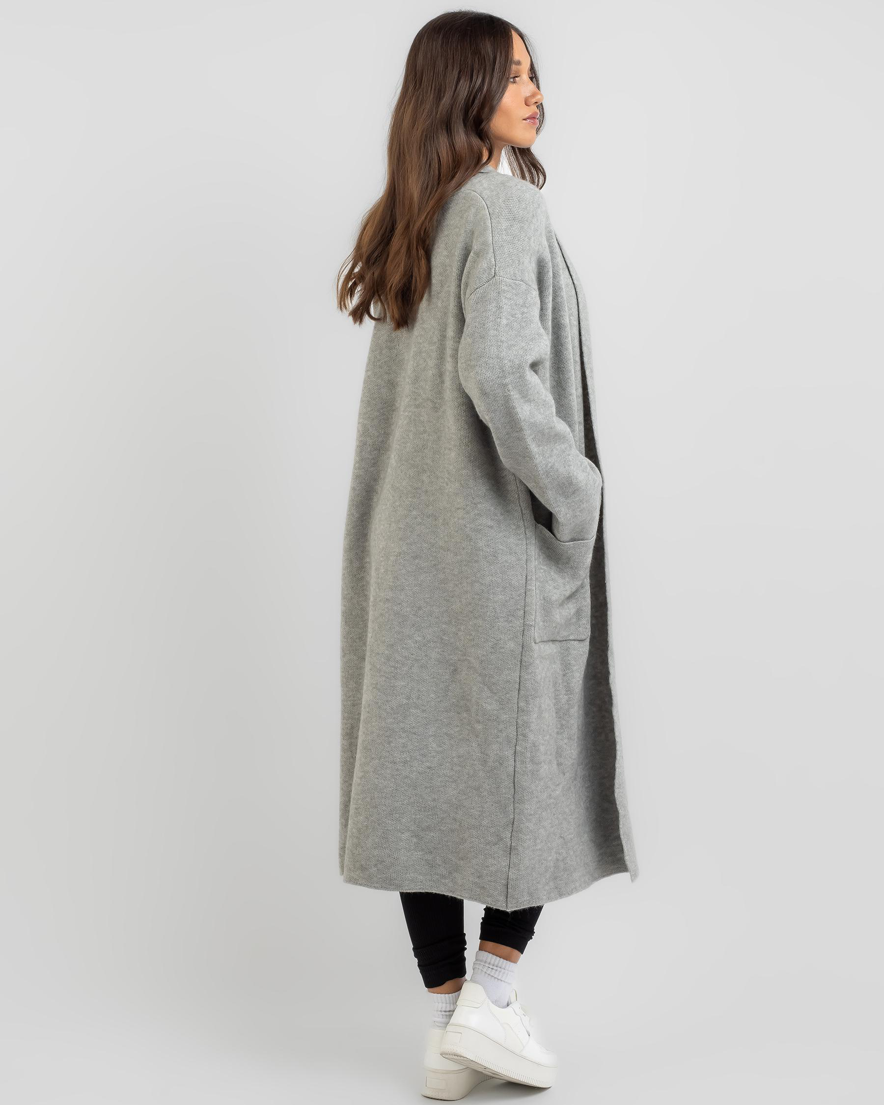 Stay warm and stylish in the Ava And Ever London Longline Knit Cardigan in Grey. Perfect for layering over any outfit.
