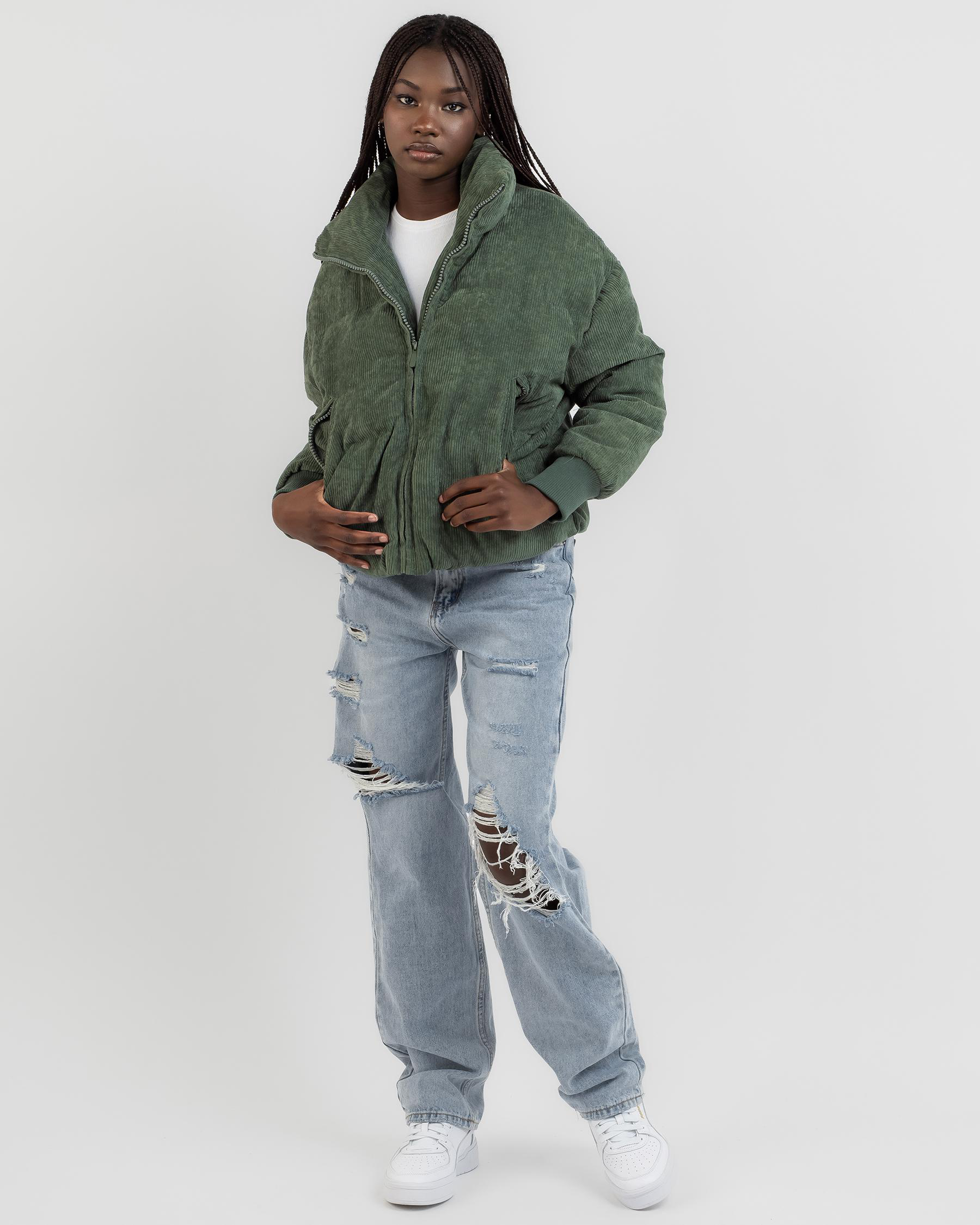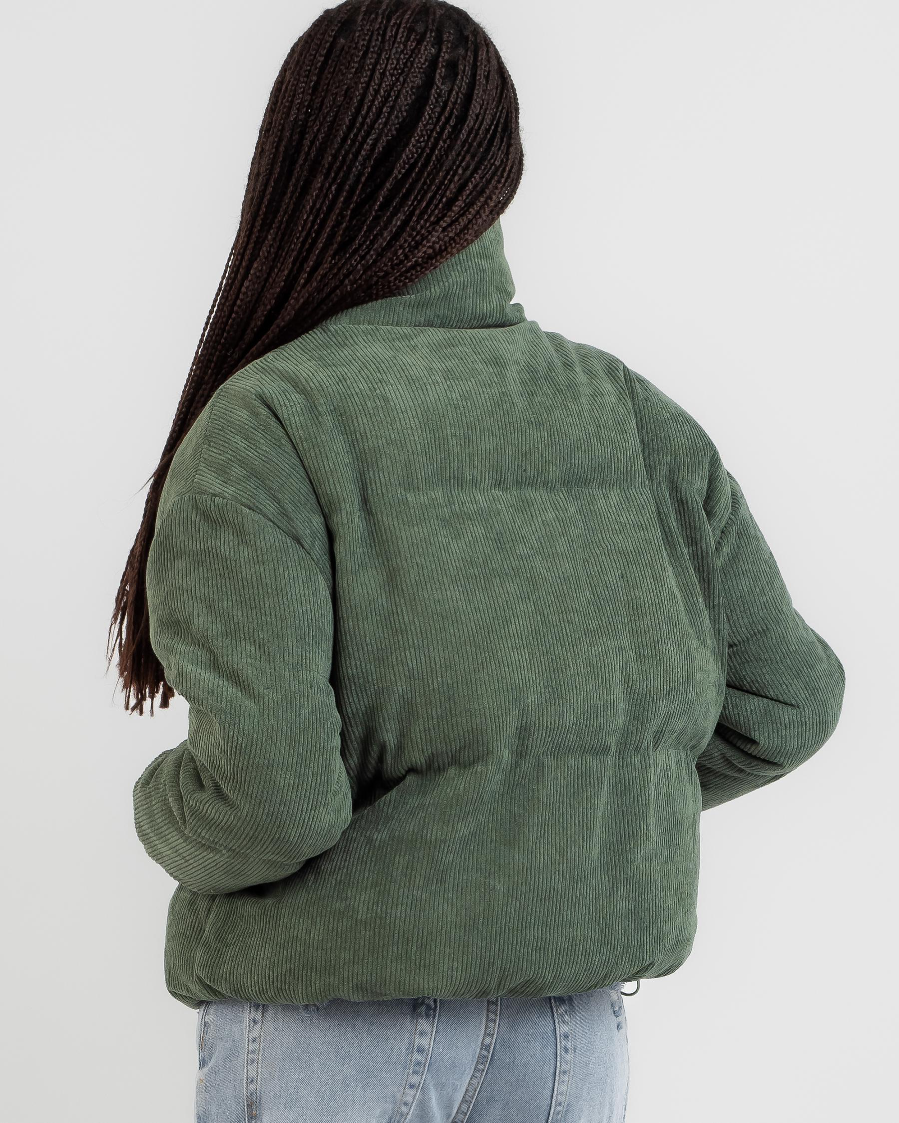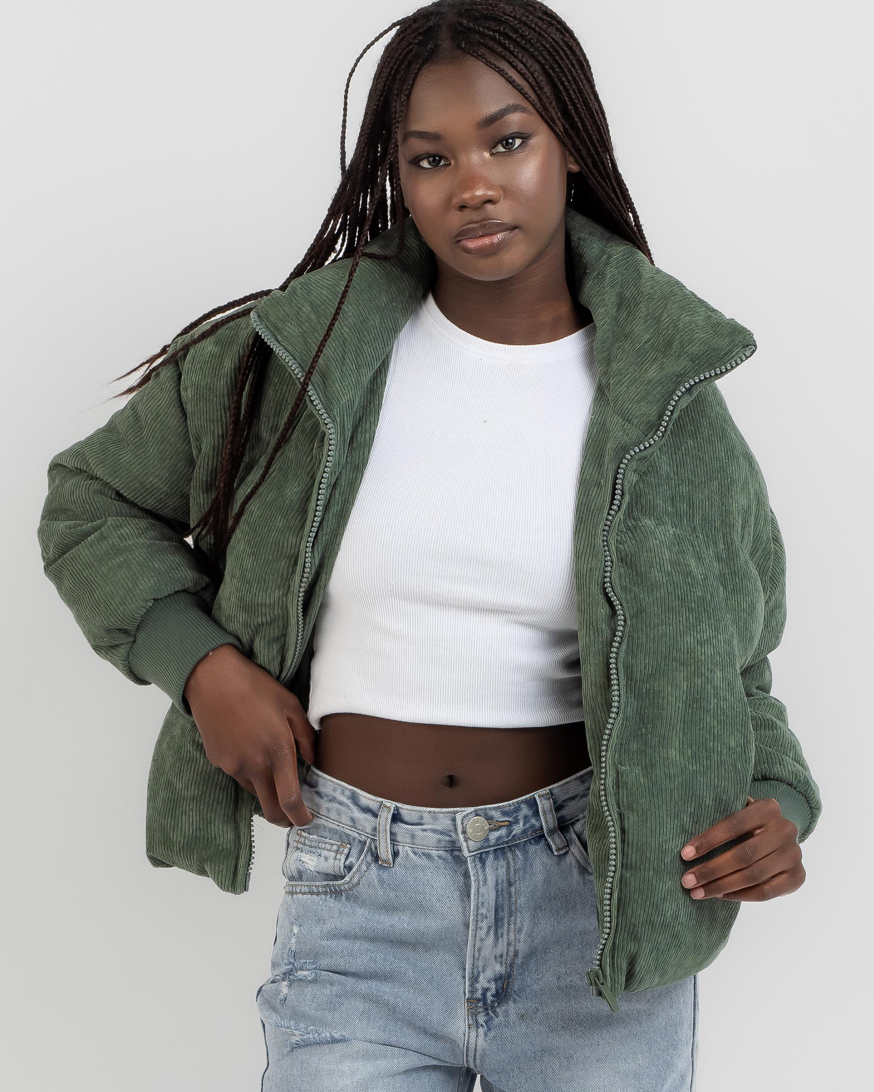 Stay warm and stylish in Ava And Ever's On Tour Puffer Jacket in Olive. Perfect for those chilly days, this jacket is a must-have for your winter wardrobe.