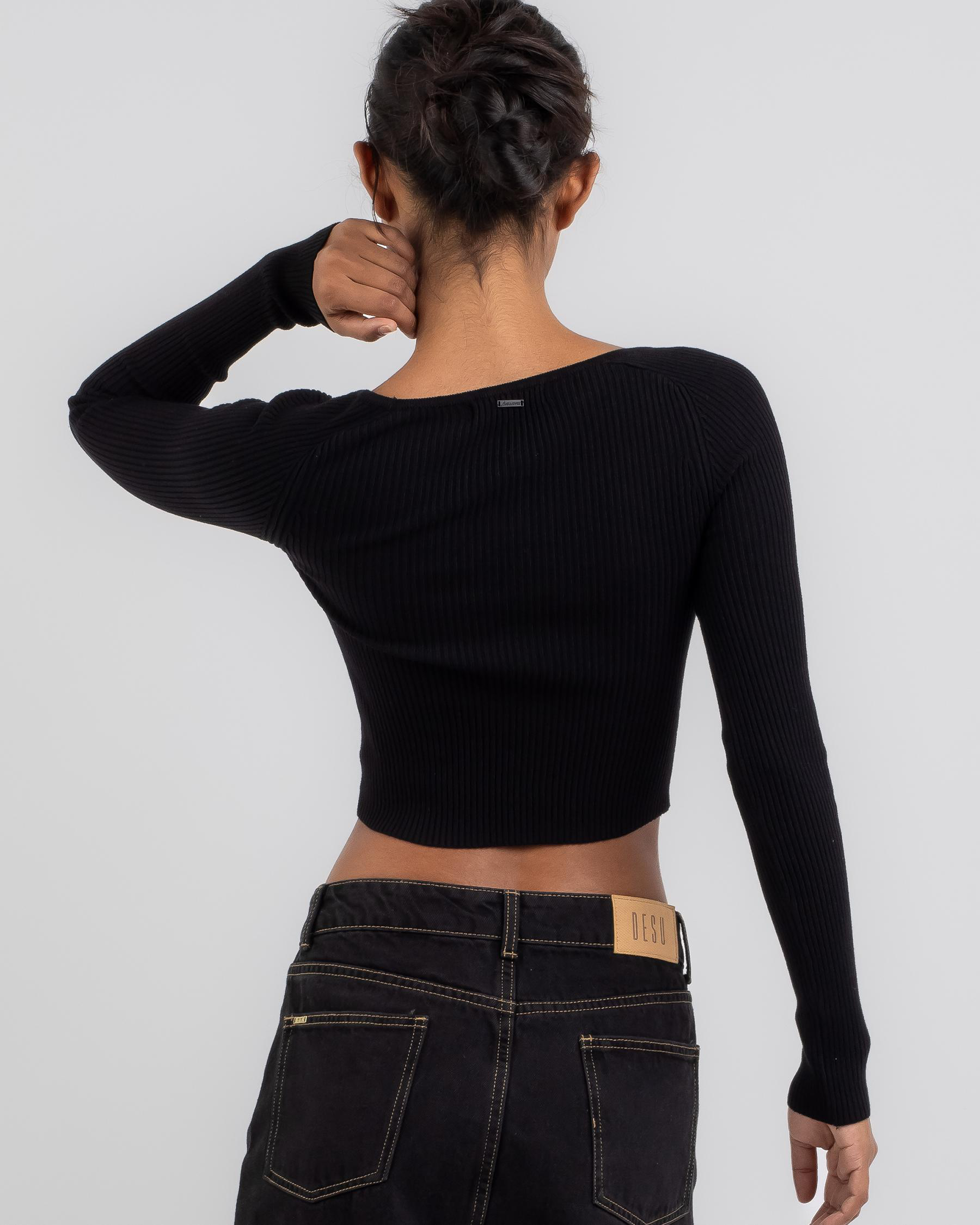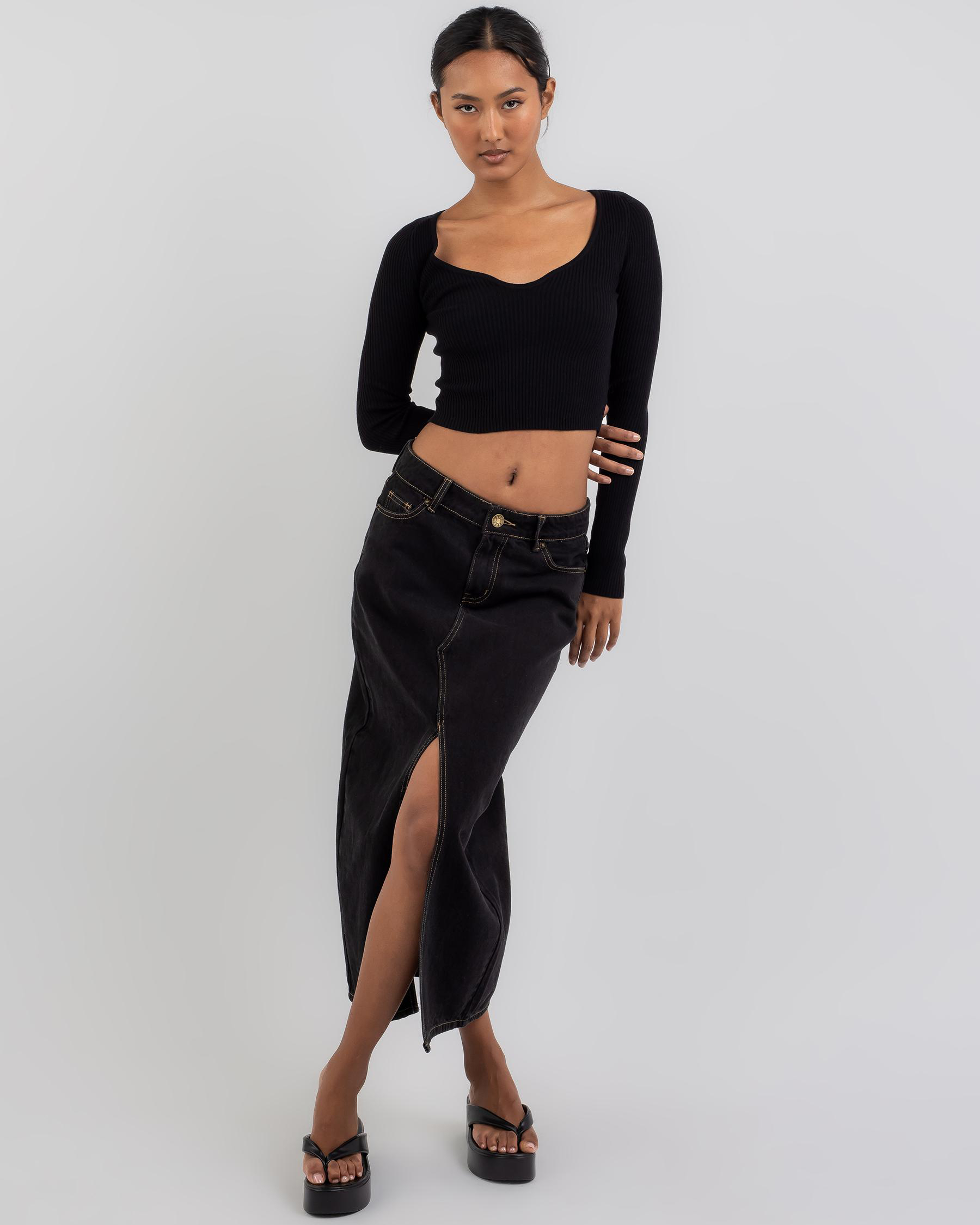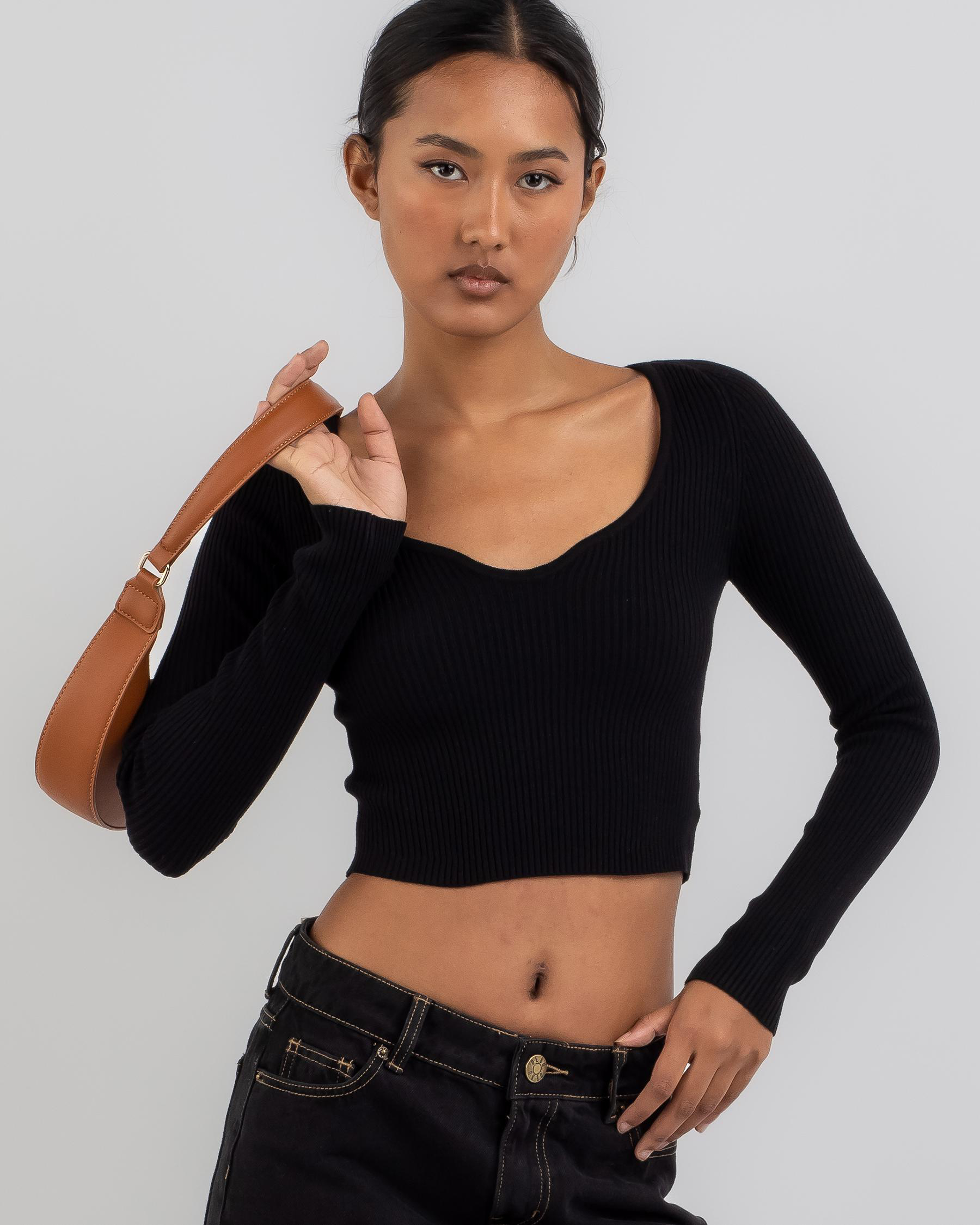 Stay cozy and chic in the Ava And Ever Pop Quiz Long Sleeve Crop Knit Top in classic black. Perfect for everyday wear with its effortless style.