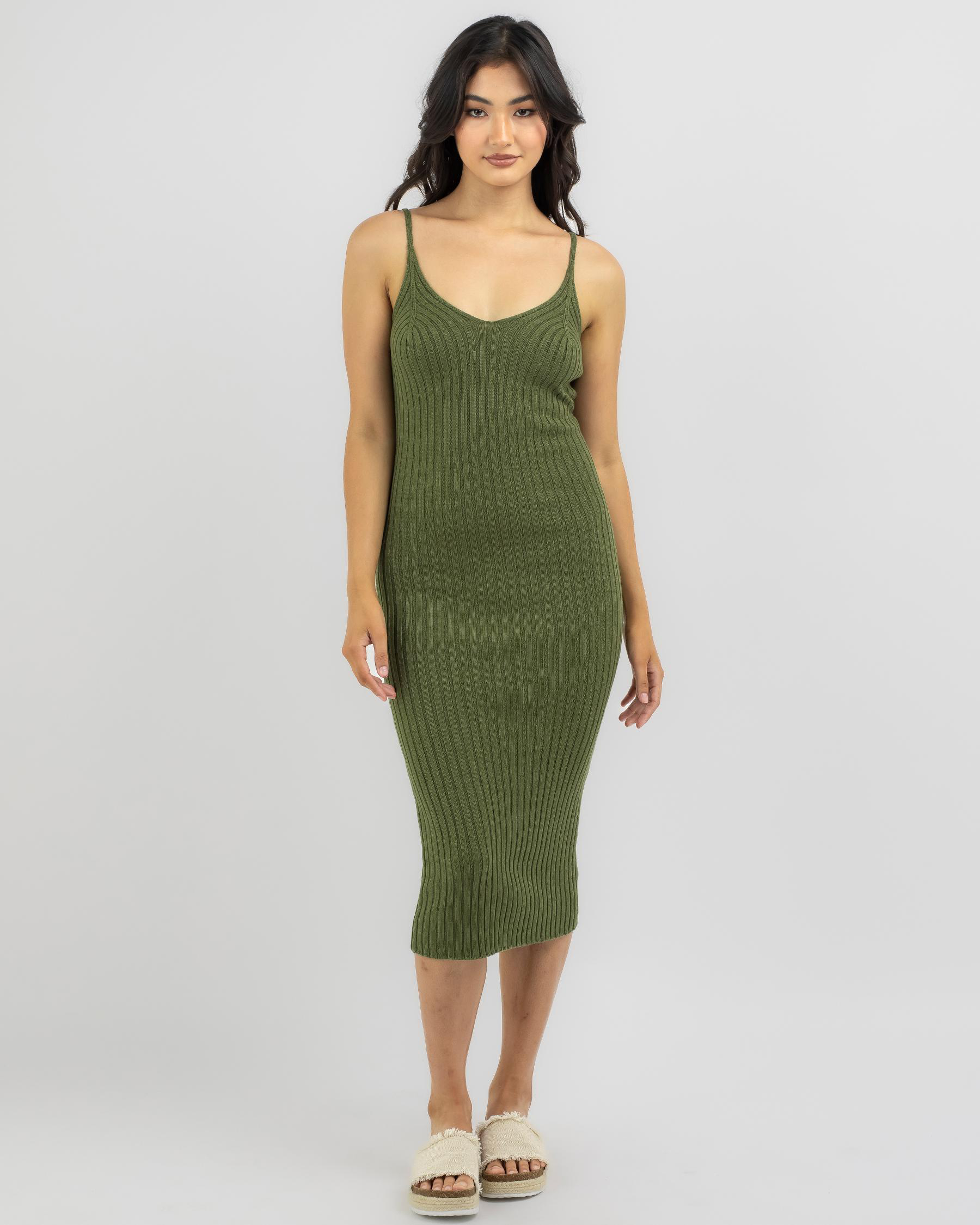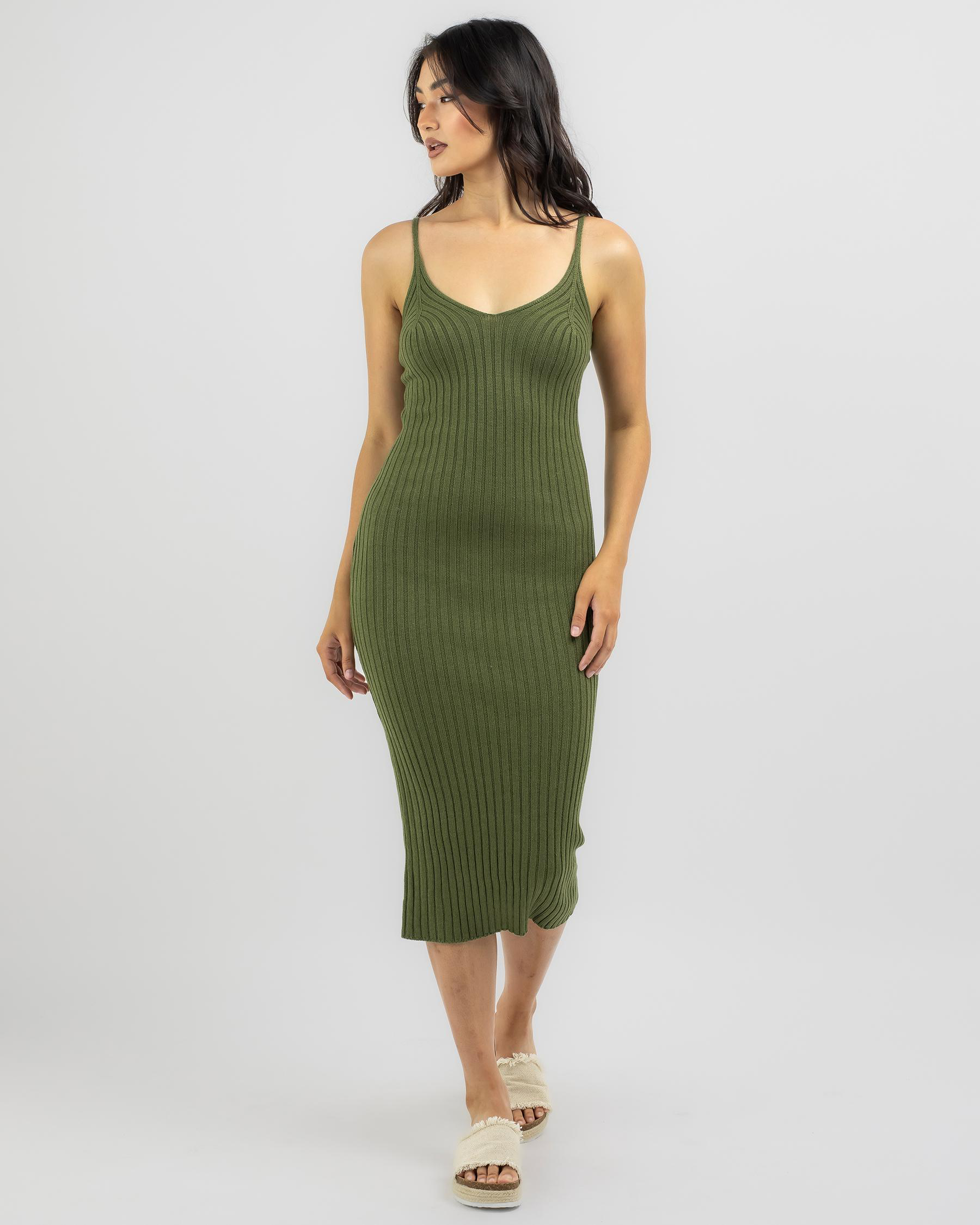 The Ava And Ever Princeton Midi Dress in Olive is a chic wardrobe essential for any season, offering a versatile style for everyday wear.