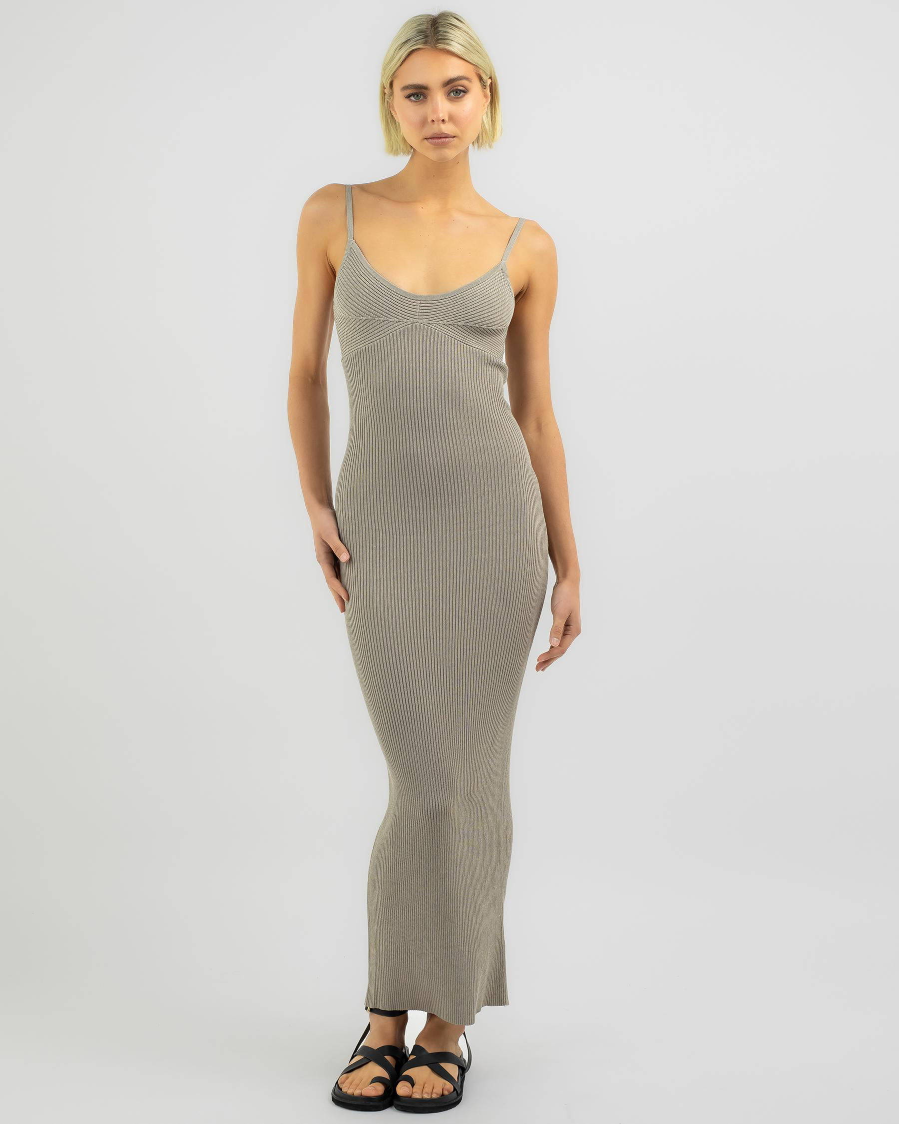 The Ava And Ever Sunrise Maxi Dress in Stone exudes effortless elegance with its flowing silhouette and neutral hue, perfect for day-to-night wear.