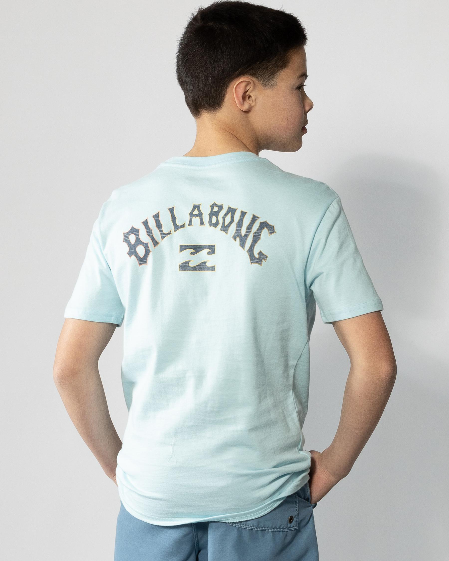 The Billabong Boys' Arch Fill T-Shirt in Coastal offers a classic fit with a stylish blue hue, perfect for everyday wear.