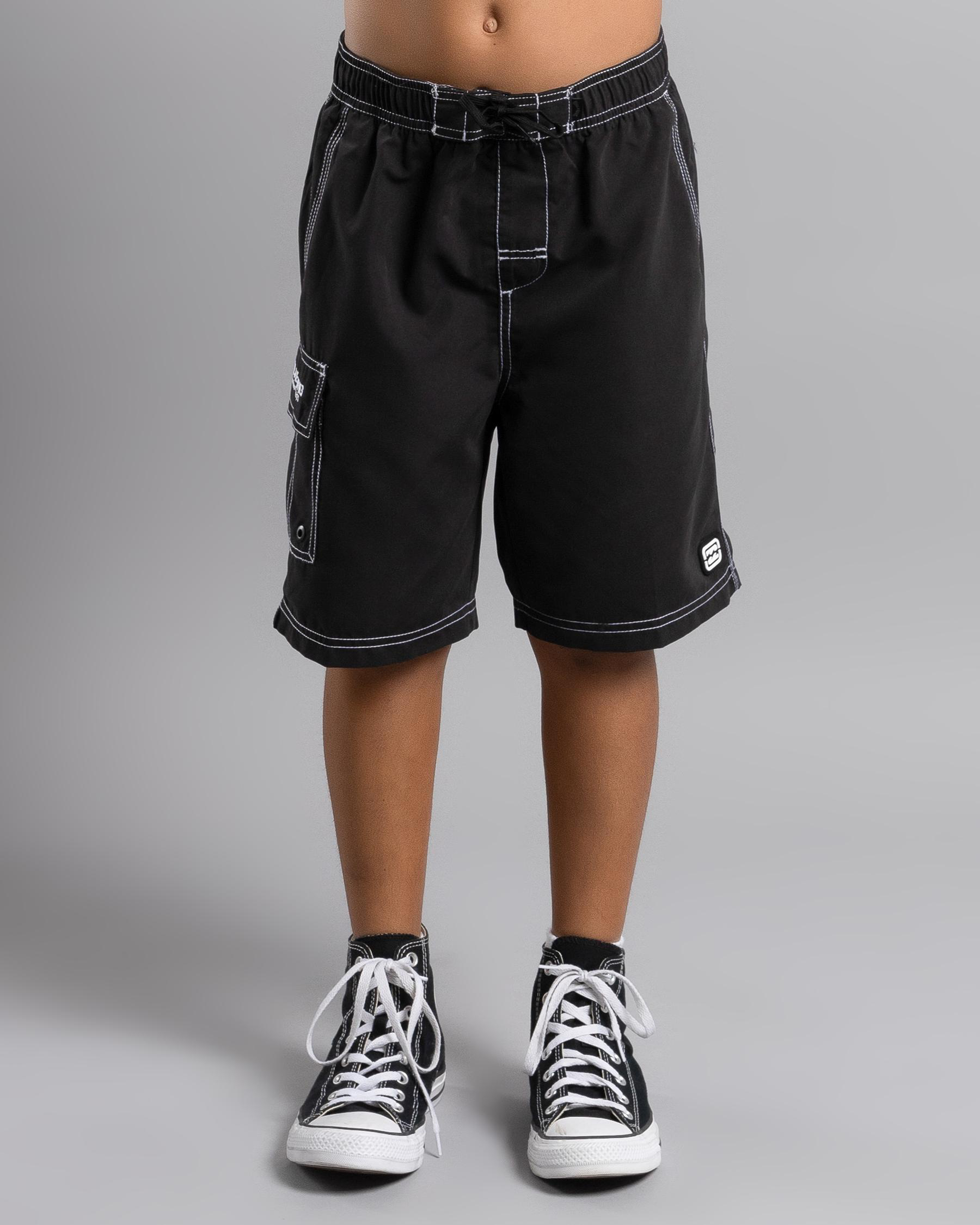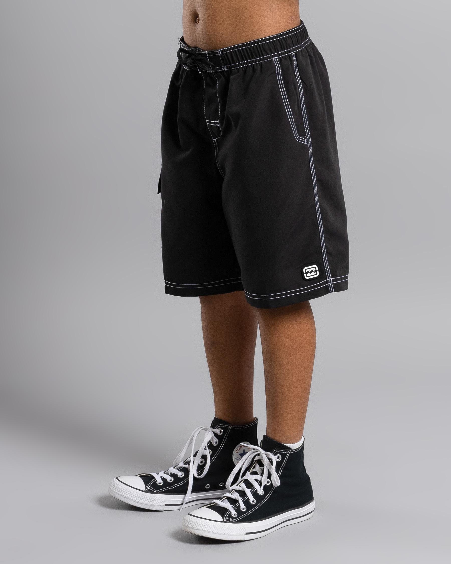 The Billabong Boys' Throw On LB Board Shorts in black are perfect for a day at the beach or by the pool. Classic style with a comfortable fit.