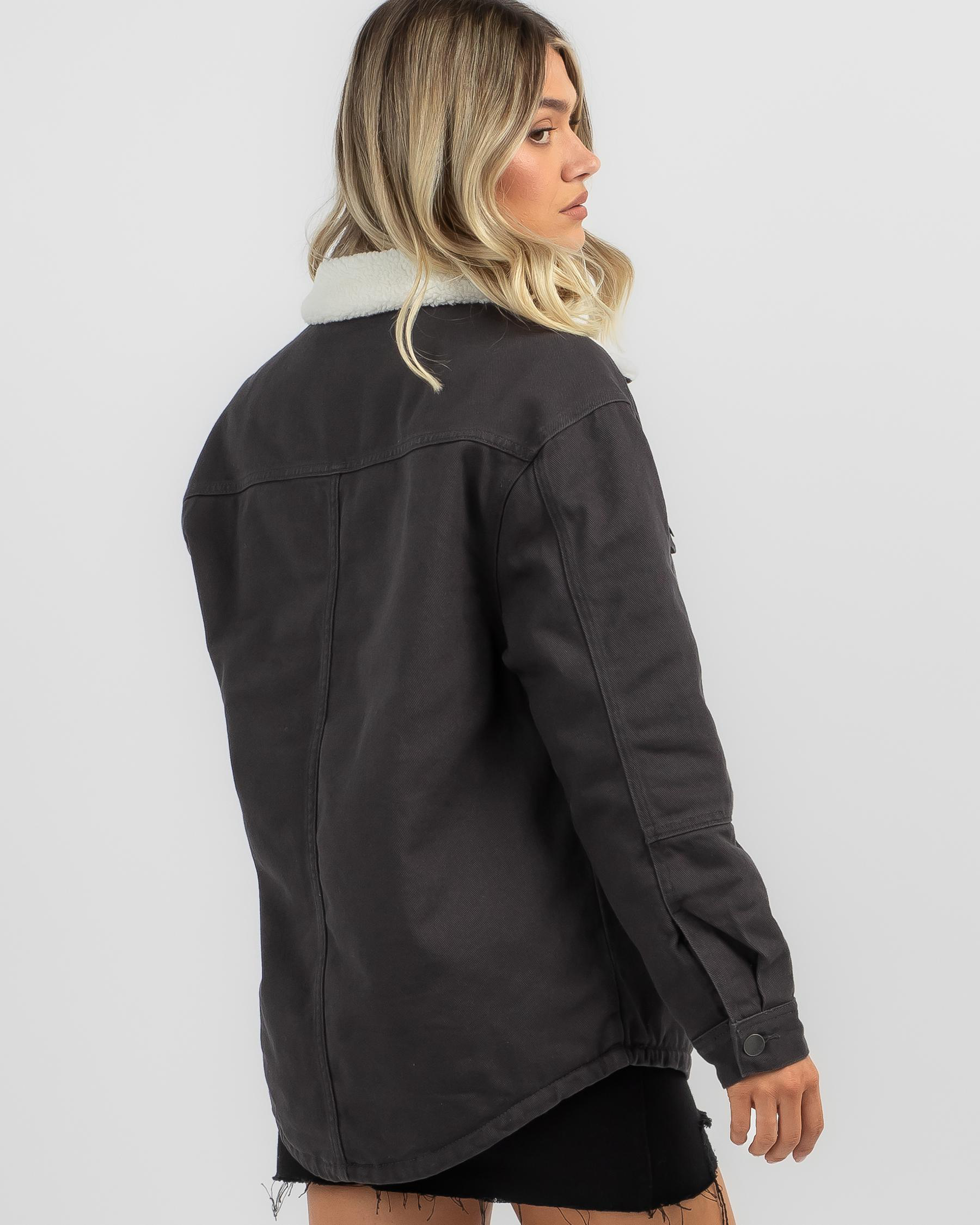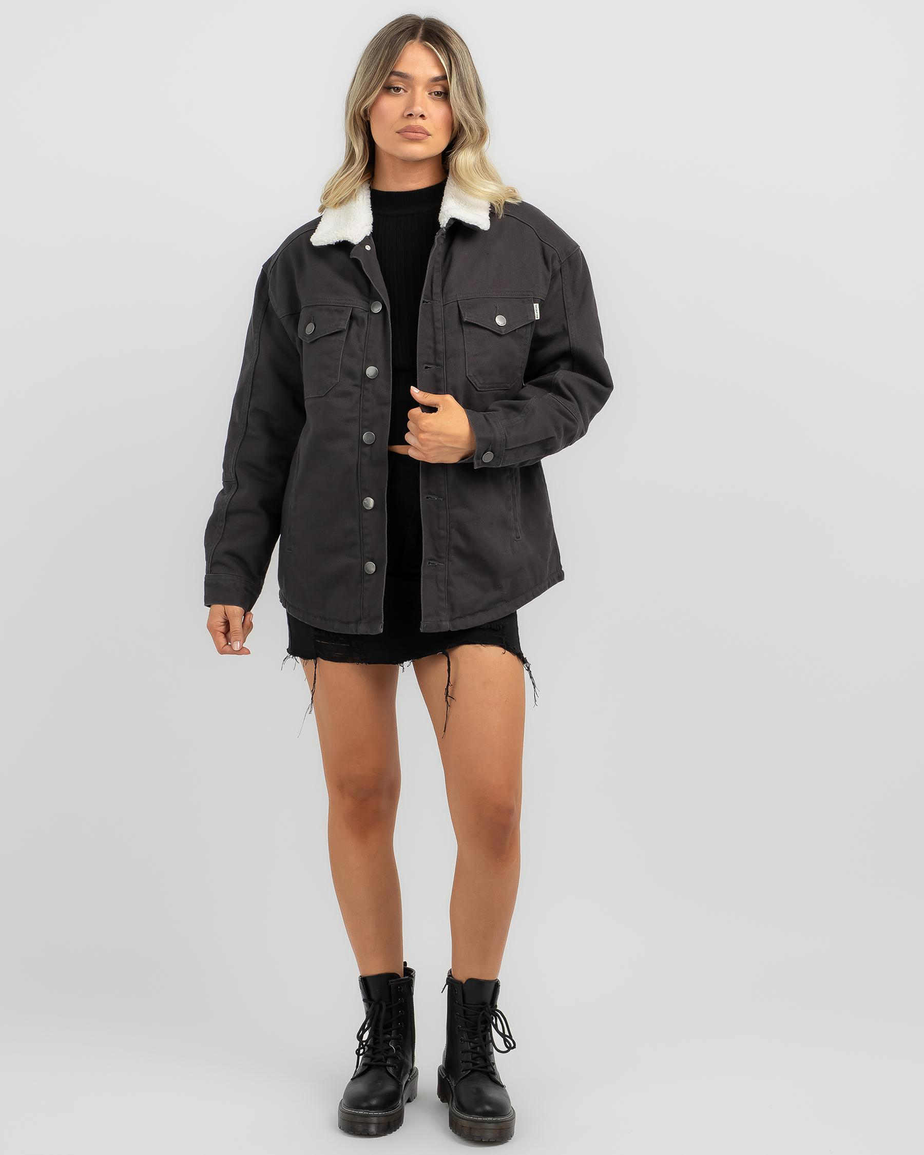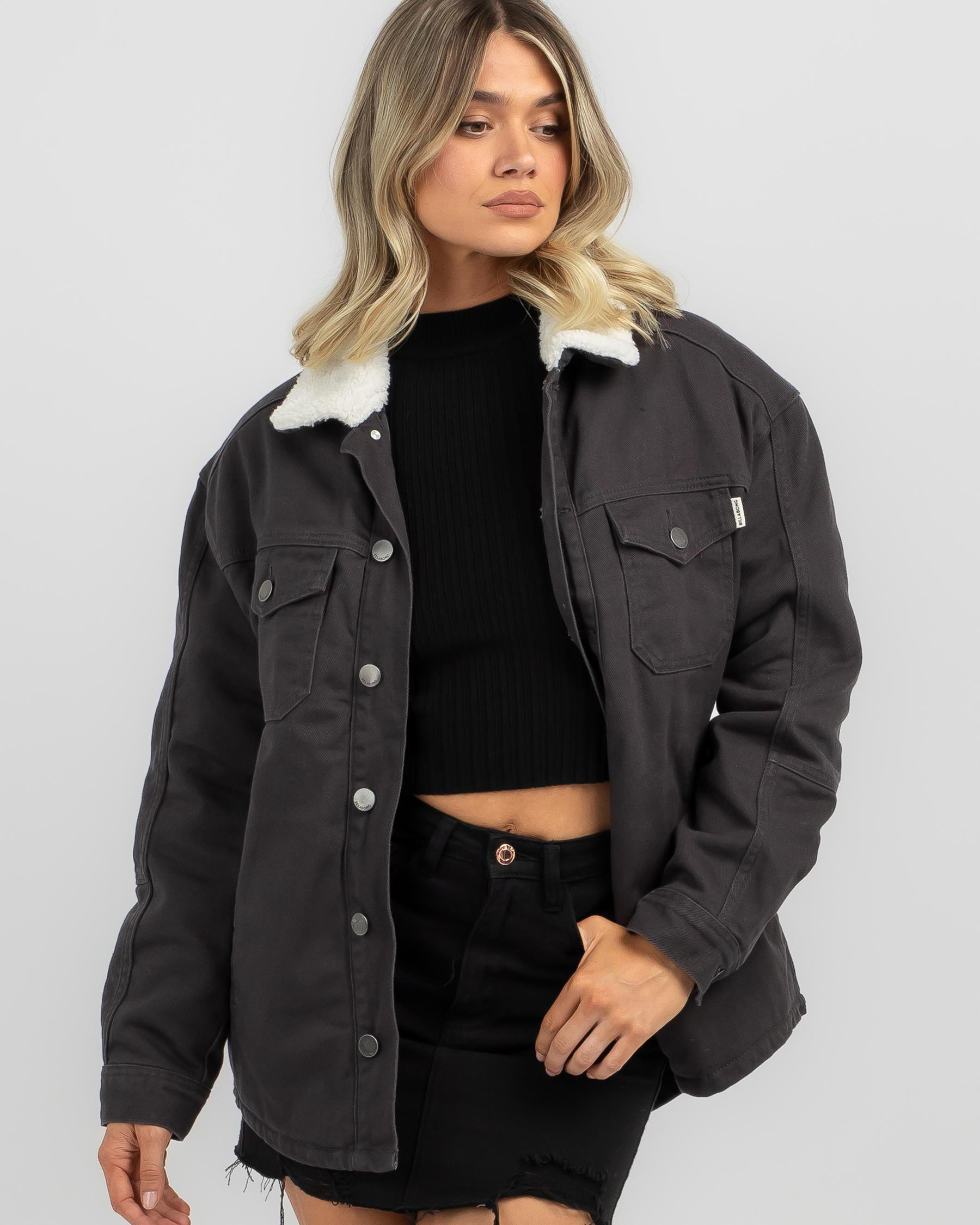 Stay chic in the Billabong Cheeky Jacket in elegant off black. This versatile piece is perfect for layering and adds a touch of sophistication to any outfit.