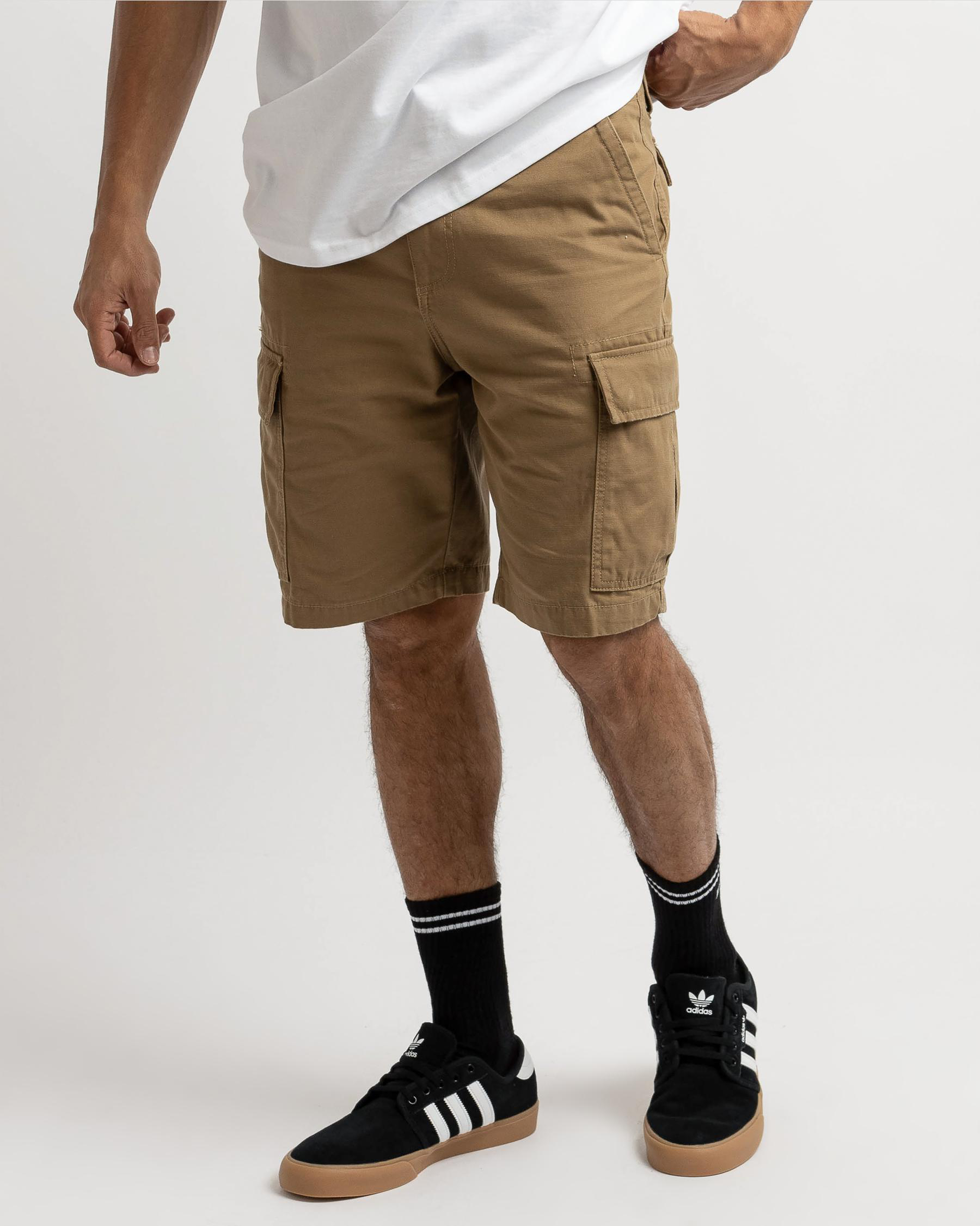 The Billabong Combat Cargo Shorts in light khaki are perfect for all your outdoor adventures. Made with durable fabric and plenty of pockets.