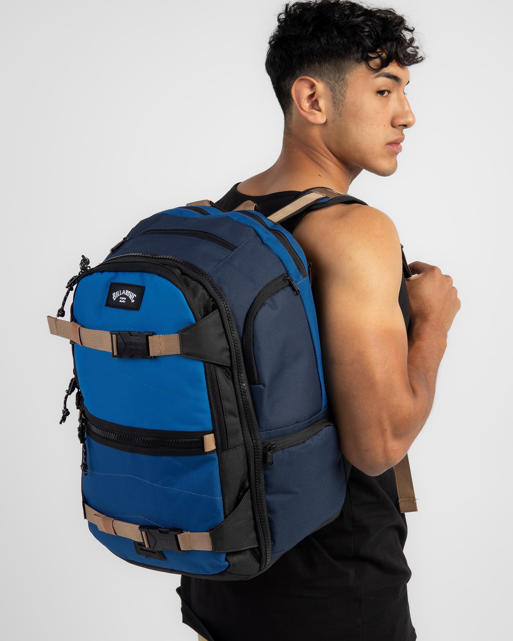 Handle, Padded straps, Padded backpanel, Sternum straps, Media compartment, External zipped pocket, Fits A4 sized folders and books, Skate straps, External side pockets