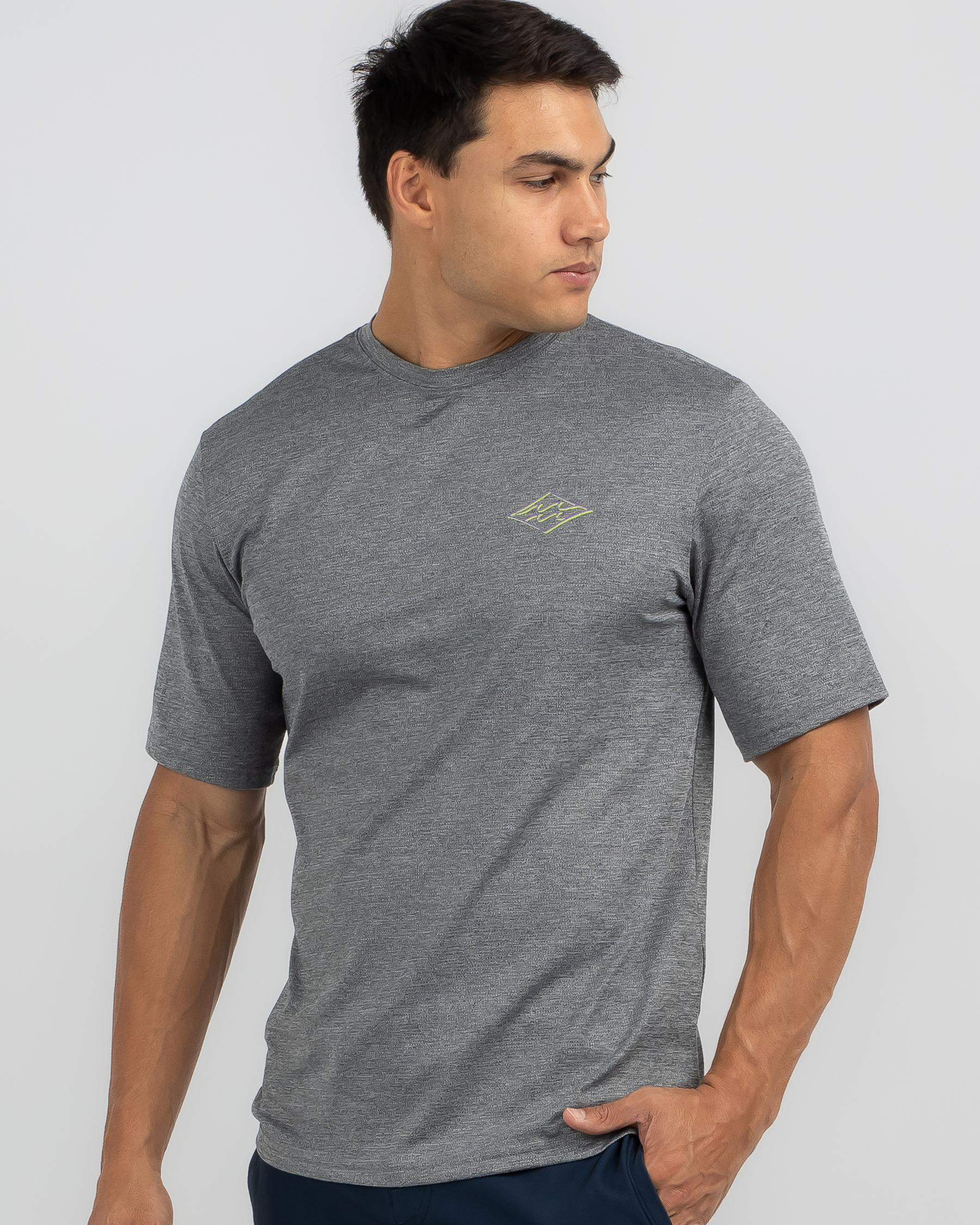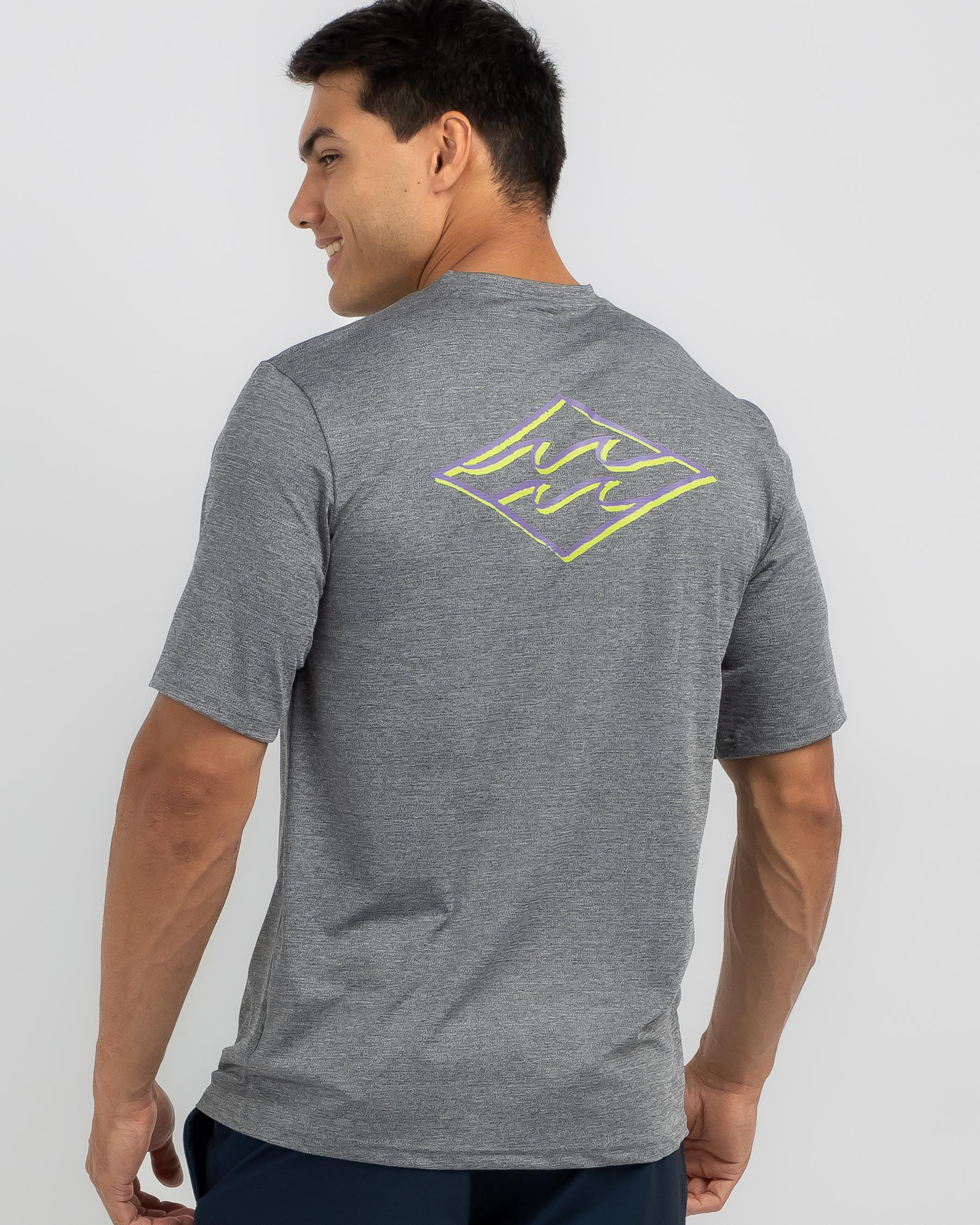 Add a touch of elegance to your beach look with the Billabong Diamond Shoreline Short Sleeve Surf Tee in Black Heather. Perfect for catching waves or lounging in style.