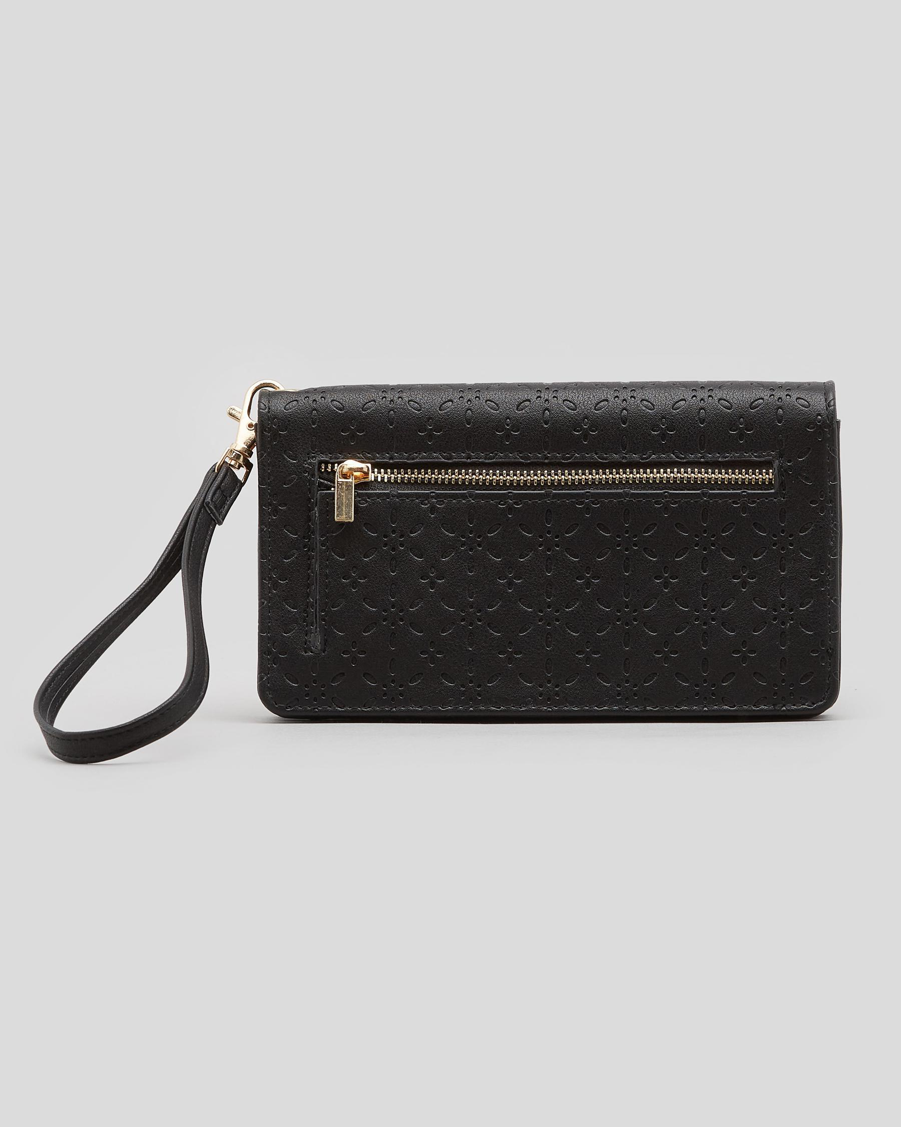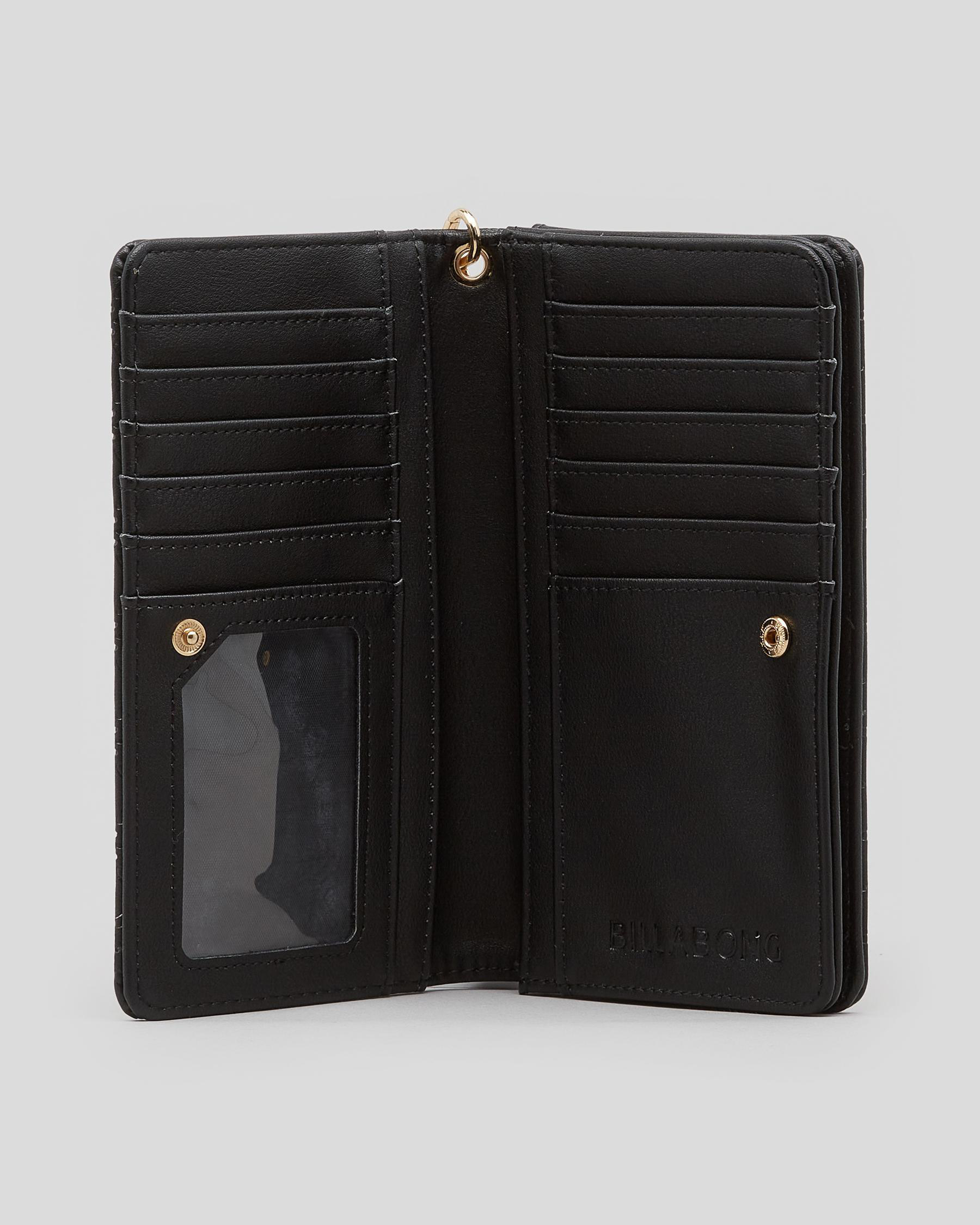 Multiple card slots, Multiple note compartments, ID window, Internal lining, External coin compartment, Removable wrist strap
