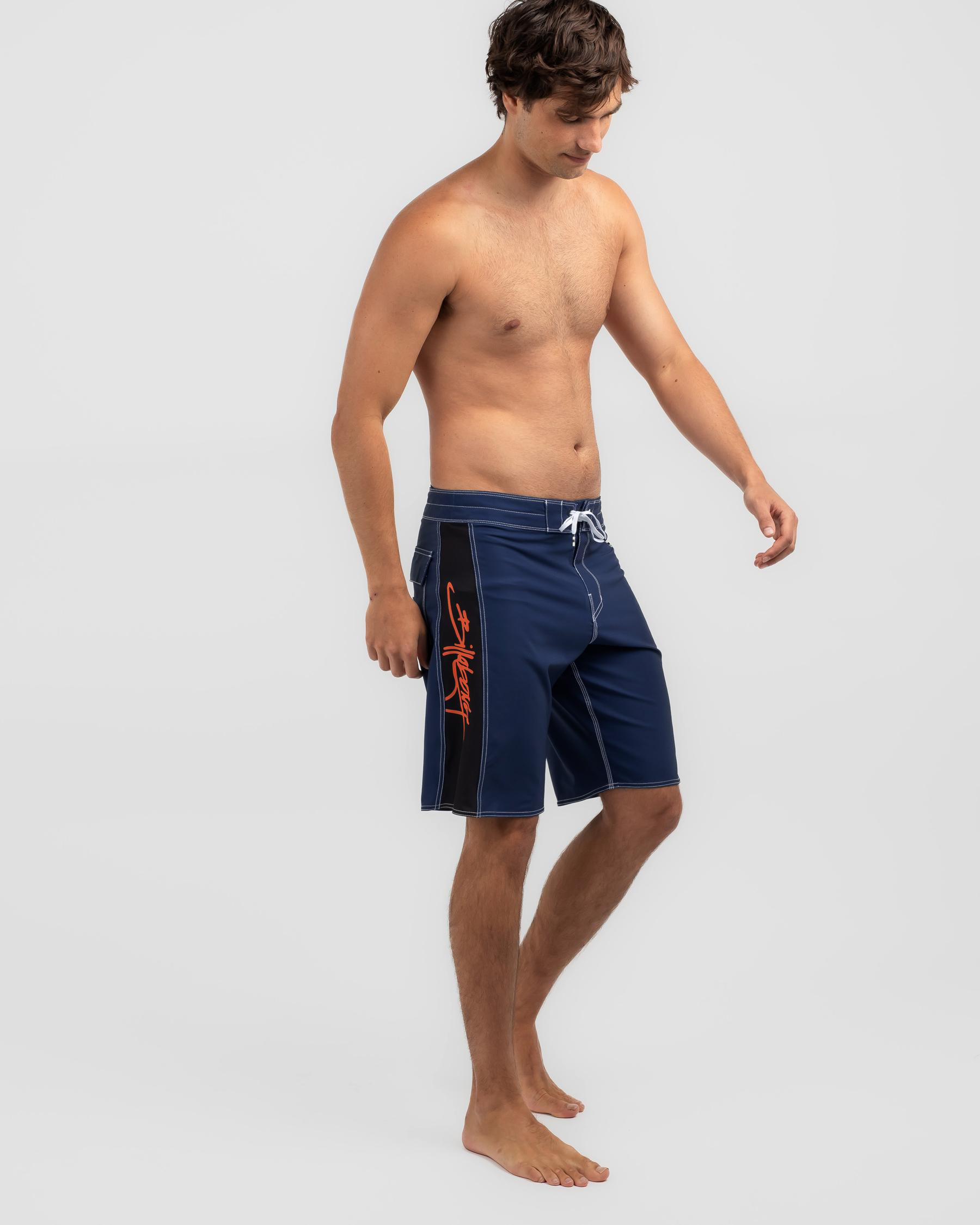The Billabong Rogue Pro Board Shorts in Dark Blue feature a sleek design with a pop of color for your next beach adventure.