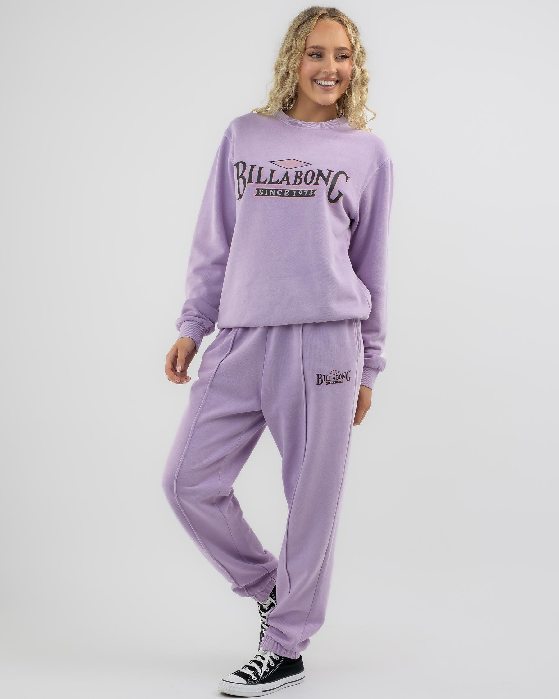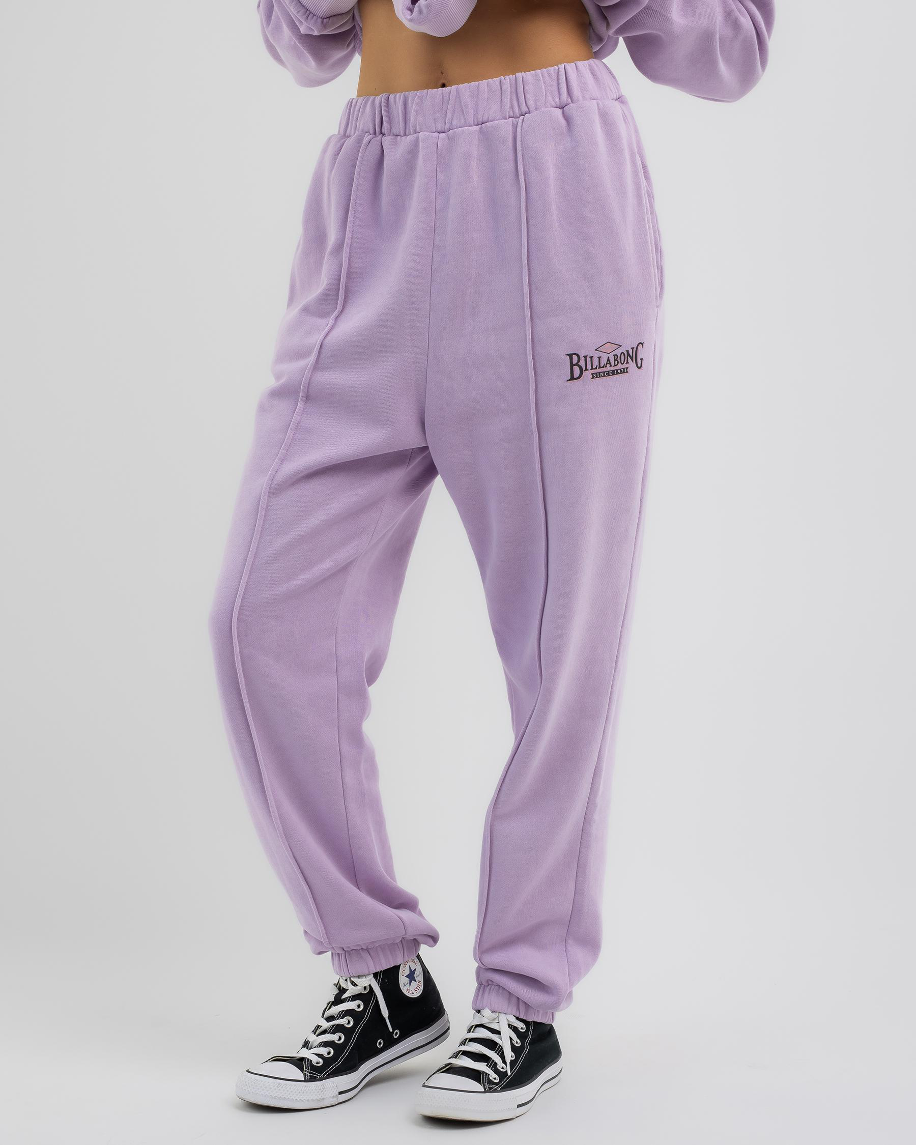 Billabong Surfed Out Track Pants in Orchid Hush offer ultimate comfort and style. Perfect for lounging or hitting the waves.