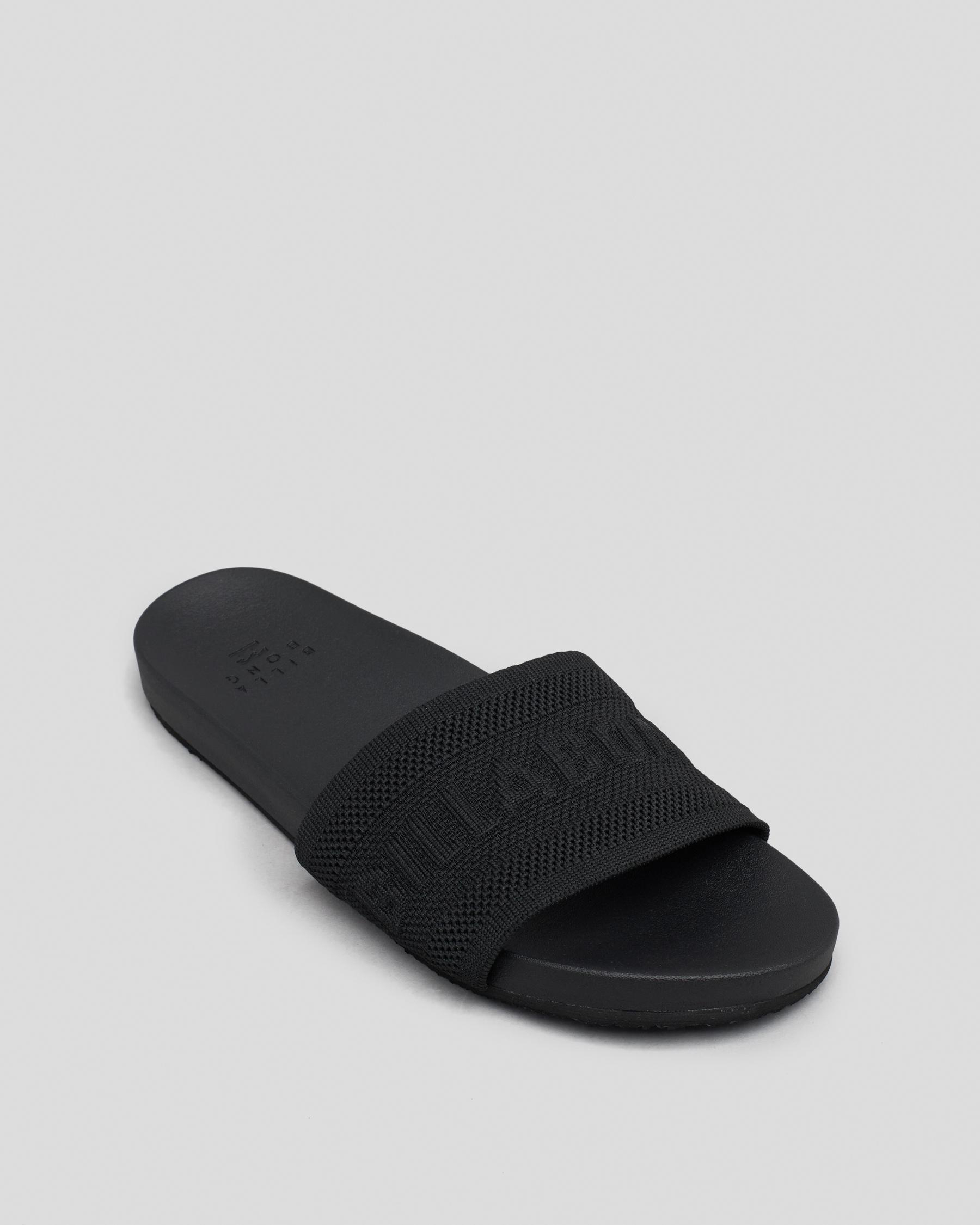 The Billabong Cruz Slide Sandals in Salt Crystal offer a sleek and stylish design, perfect for adding a touch of summer chic to any outfit.