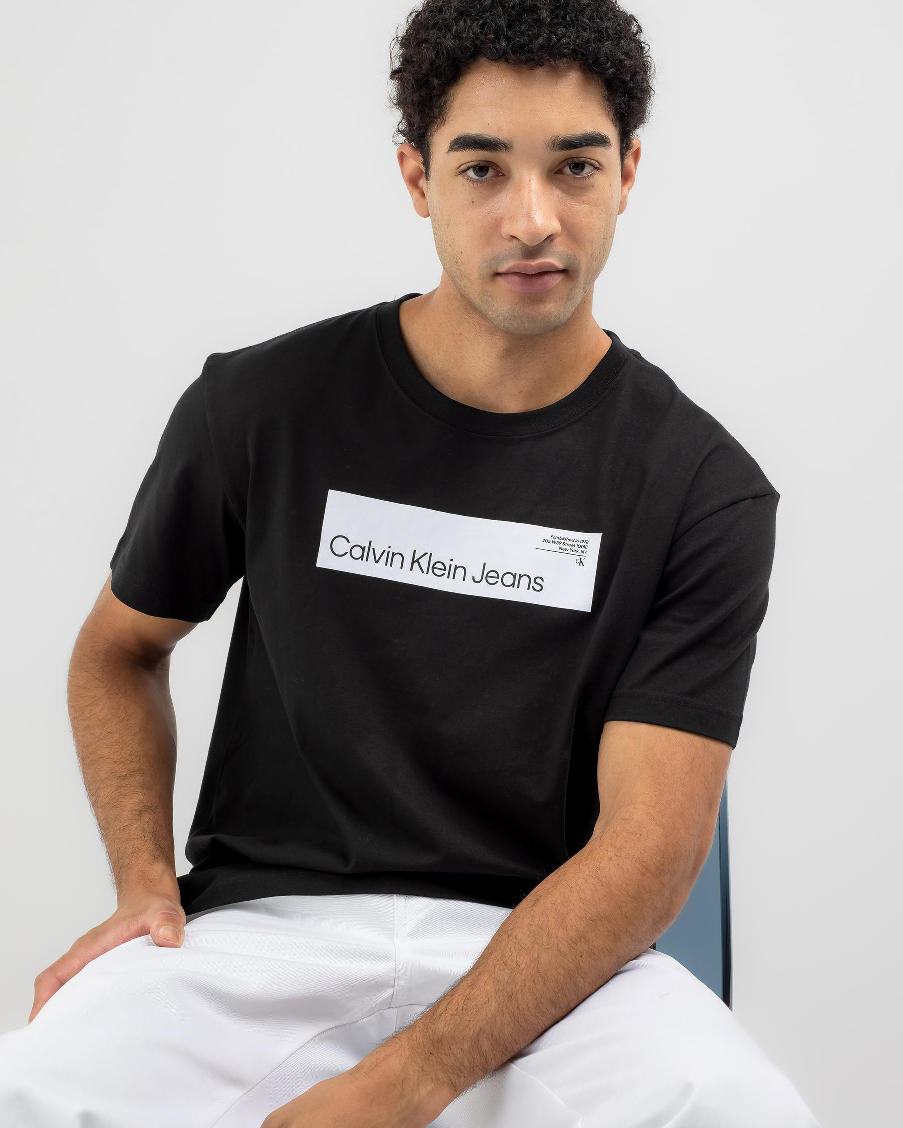 Calvin Klein Hyper Real Box Logo T-Shirt in CK Black. Sporty and versatile, this tee is a must-have for any casual wardrobe.
