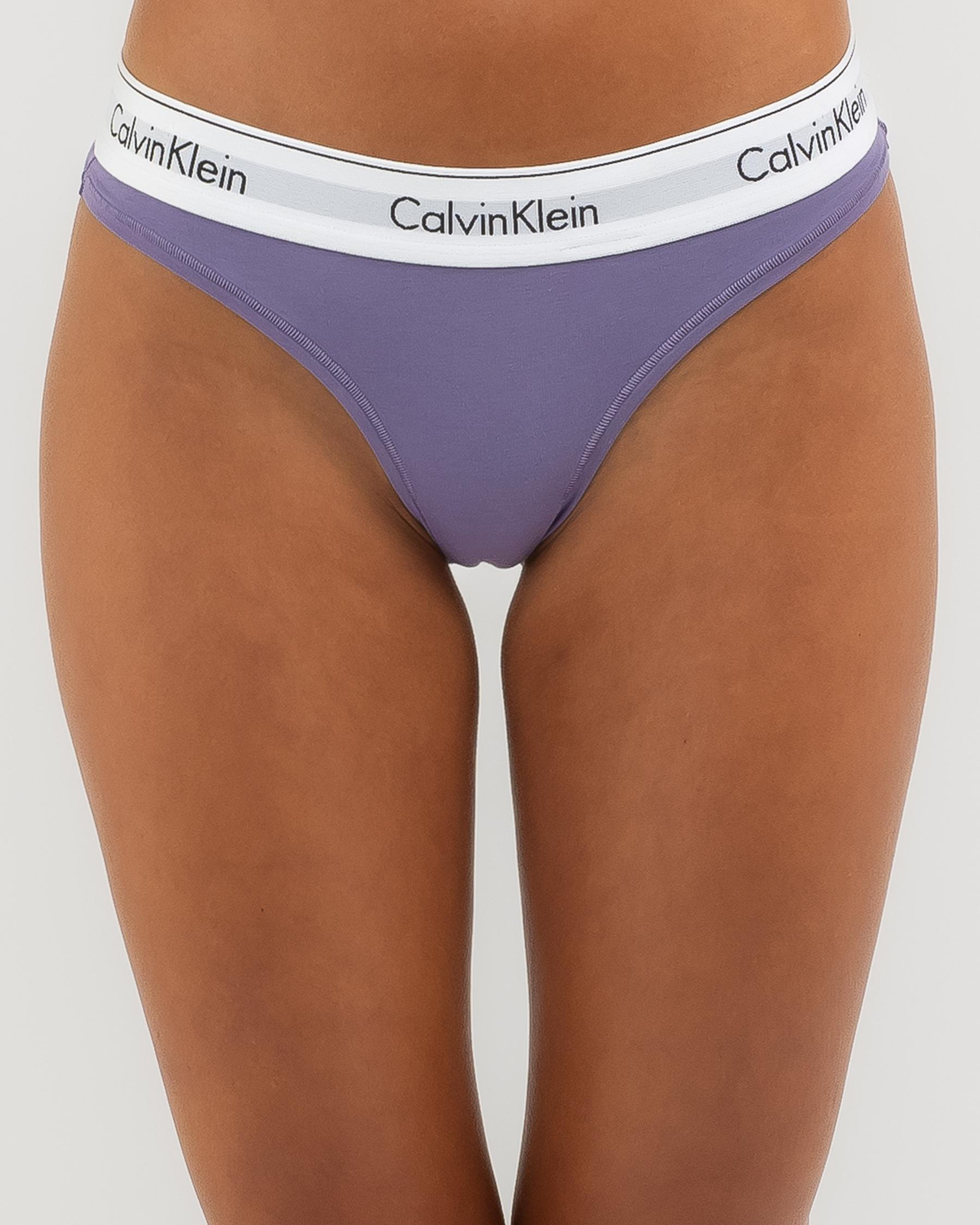 Calvin Klein Modern Cotton Thong in Splash of Grape - Add a pop of colour to your lingerie collection with this ultra-comfortable thong in a vibrant shade of grape.