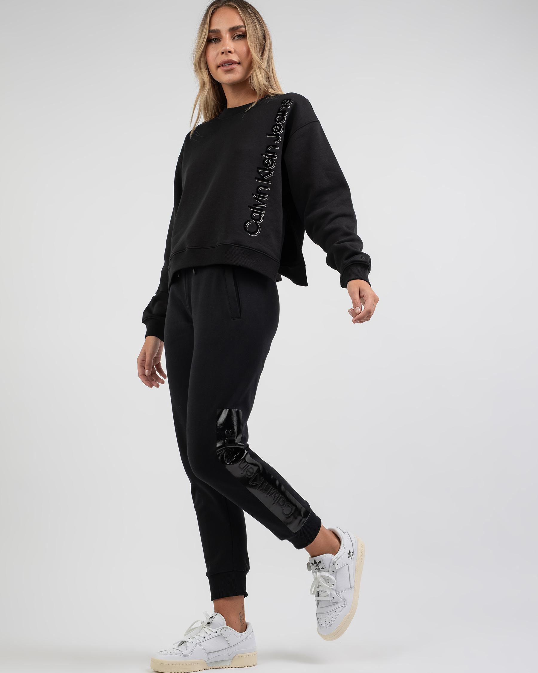 Womens Shiny Logo Block Track Pants