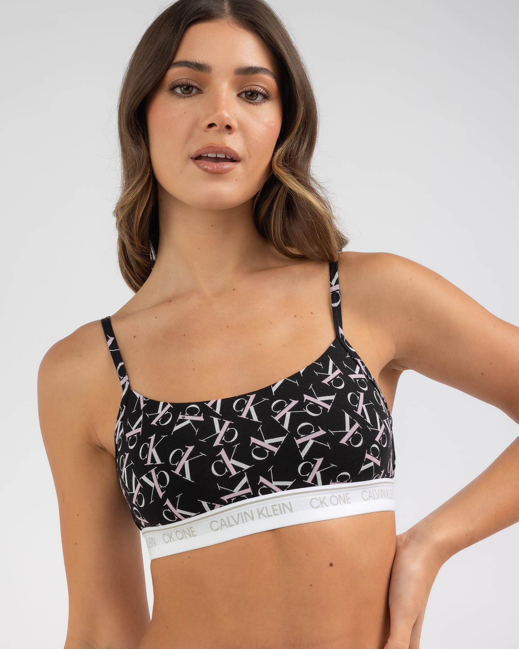 Calvin Klein Unlined Bralette in Sand Rose logo print. Comfort meets style in this chic and versatile piece. Read more