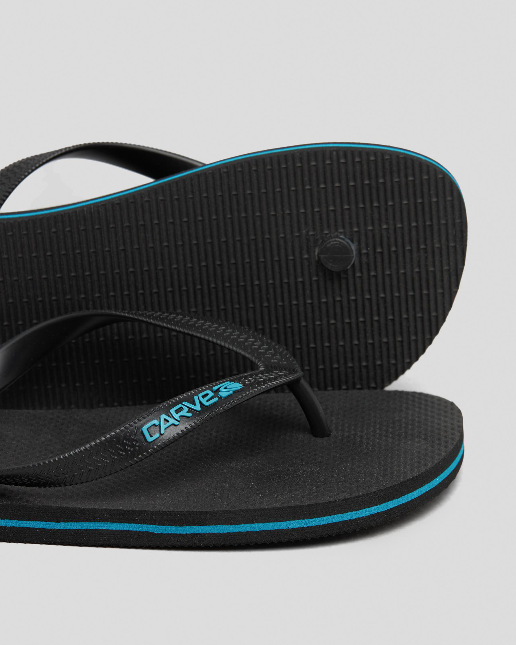Get summer ready with the sleek Carve Kingpin Thongs in Black. The perfect combination of style and comfort for the beach or pool.