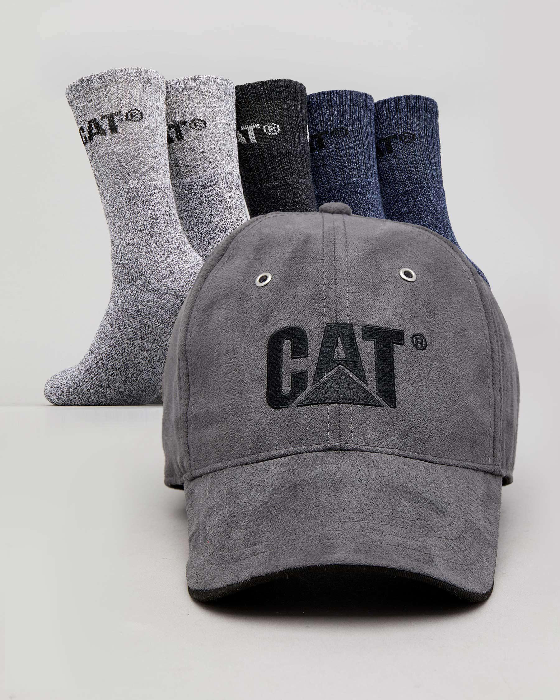 Get the 6 pack you have always wanted! Containing a light weight Cat logo hat and five pairs of durable work socks.