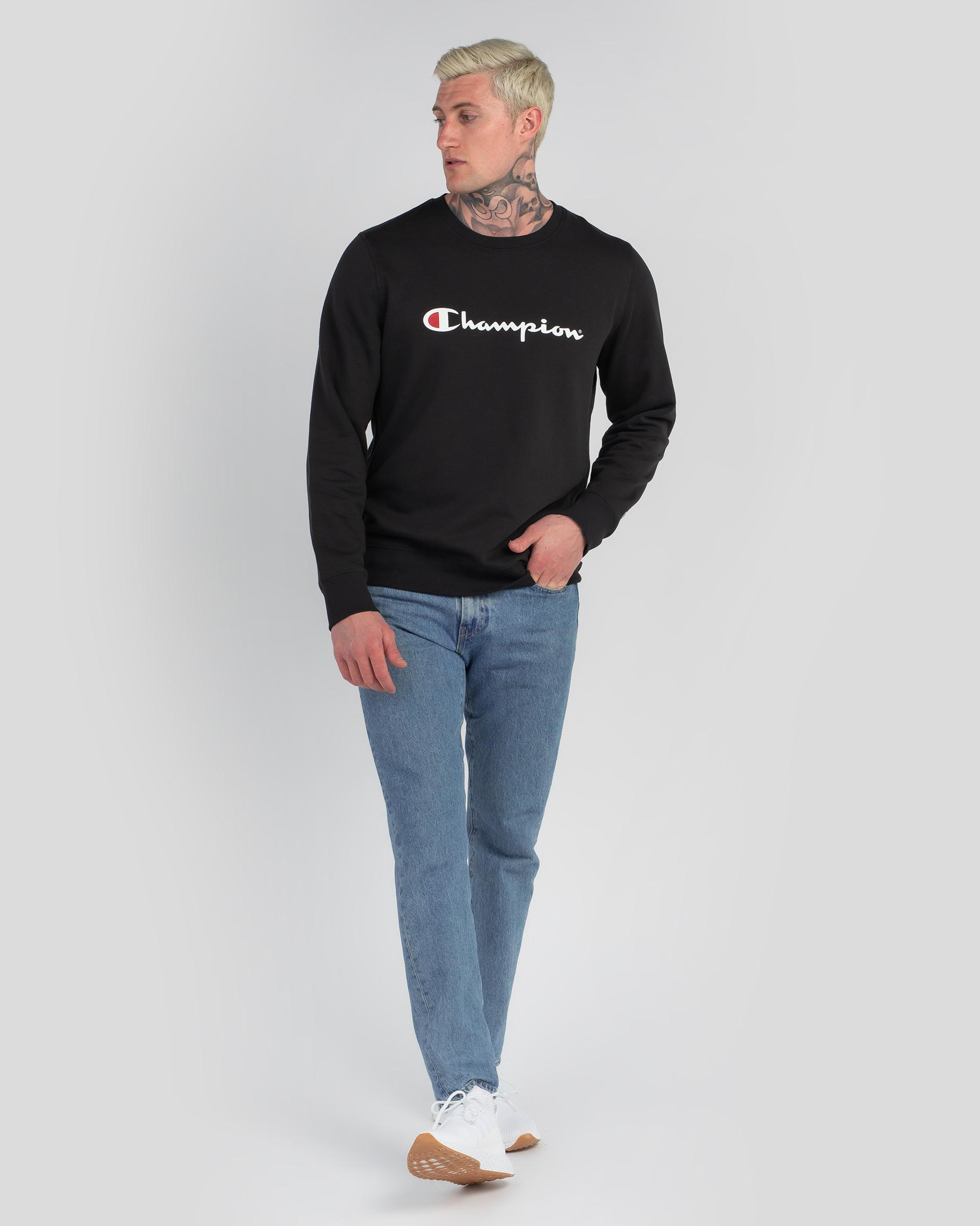 Stay cozy in the Champion Logo Crew Sweatshirt in classic black. Featuring a bold logo, this sweatshirt is perfect for everyday wear. now at City Beach Australia.