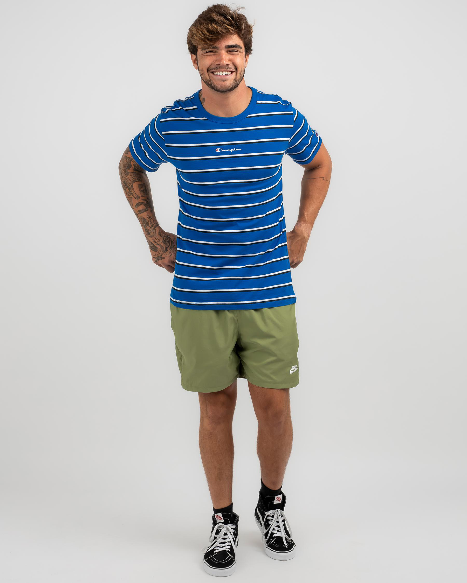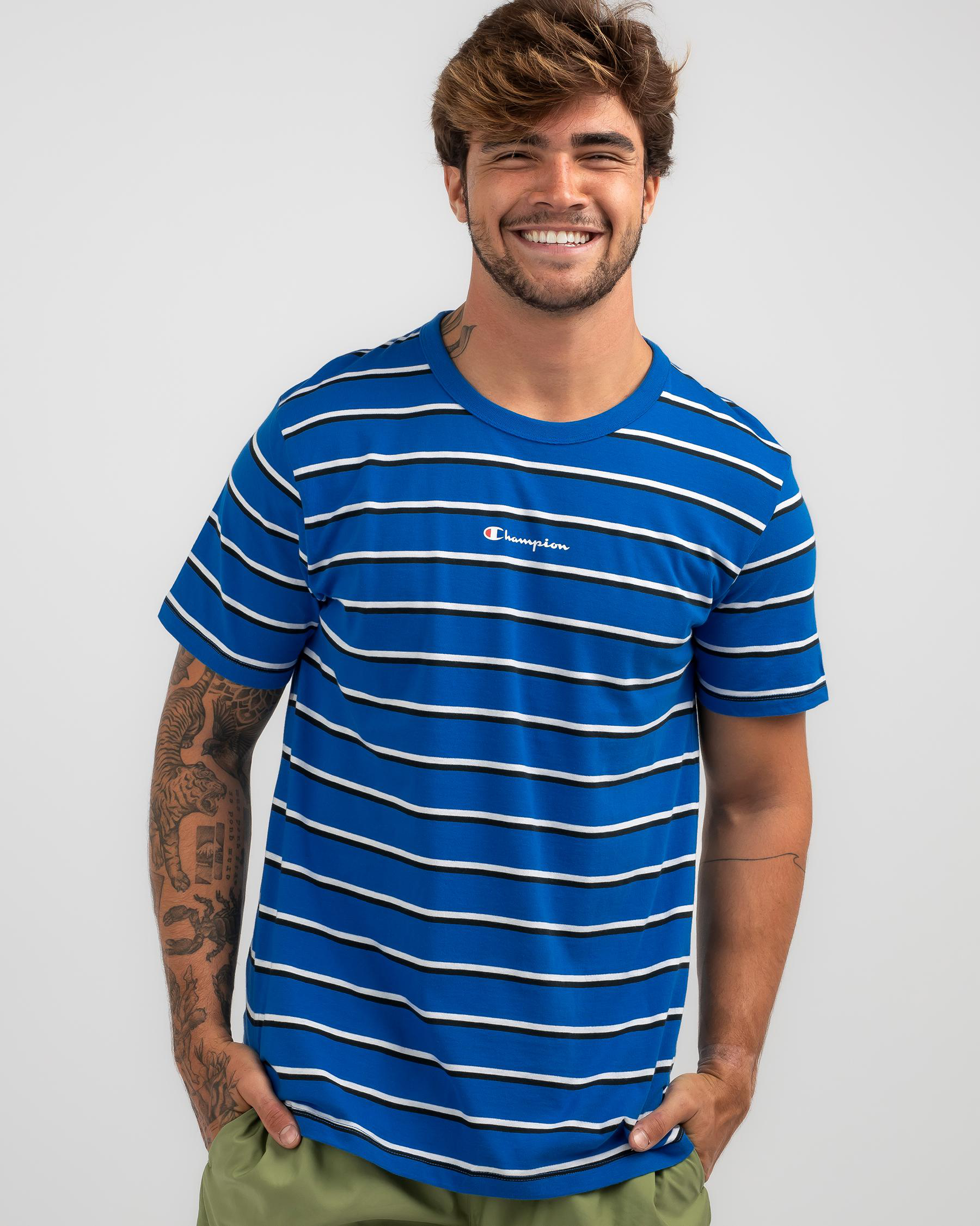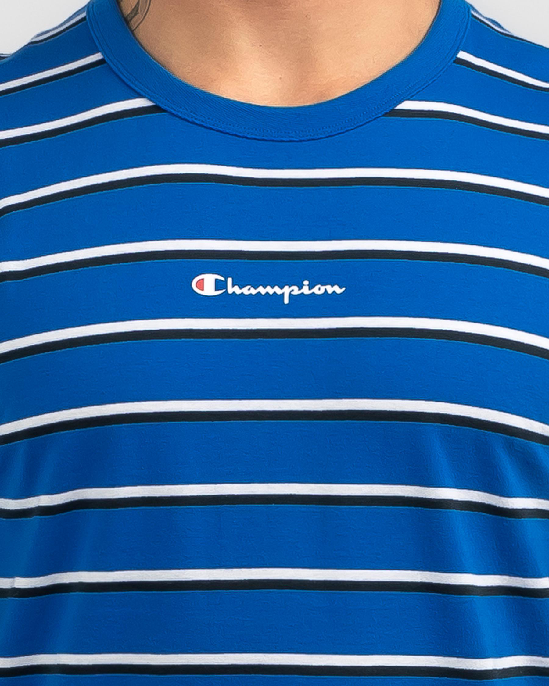 The Champion Logo Stripe T-Shirt features a bold force white colour, perfect for showing off your championship style.