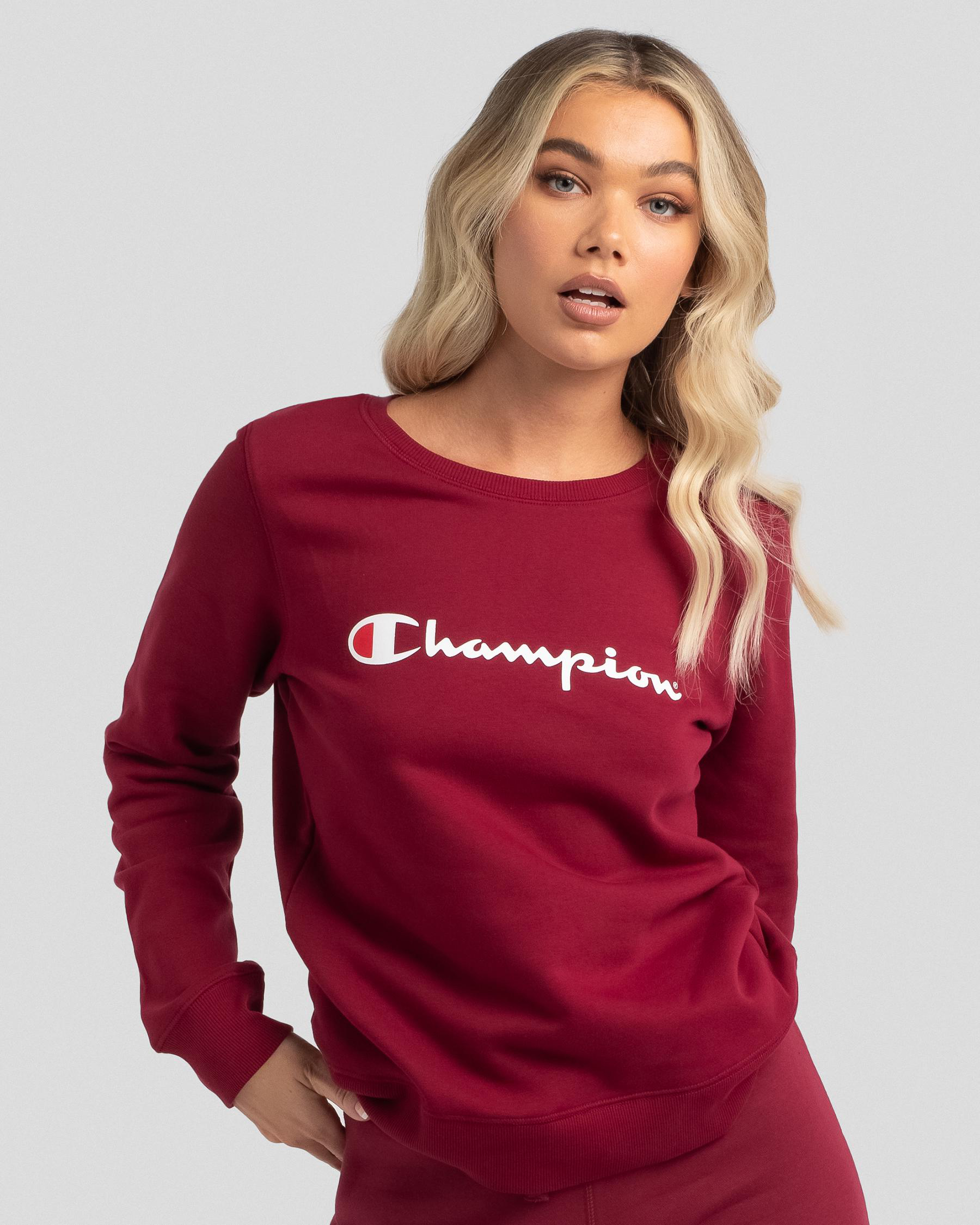 Stay stylish in this classic Champion Logo Sweatshirt in sleek black. Featuring a bold logo print, this sweatshirt offers both comfort and timeless street style.