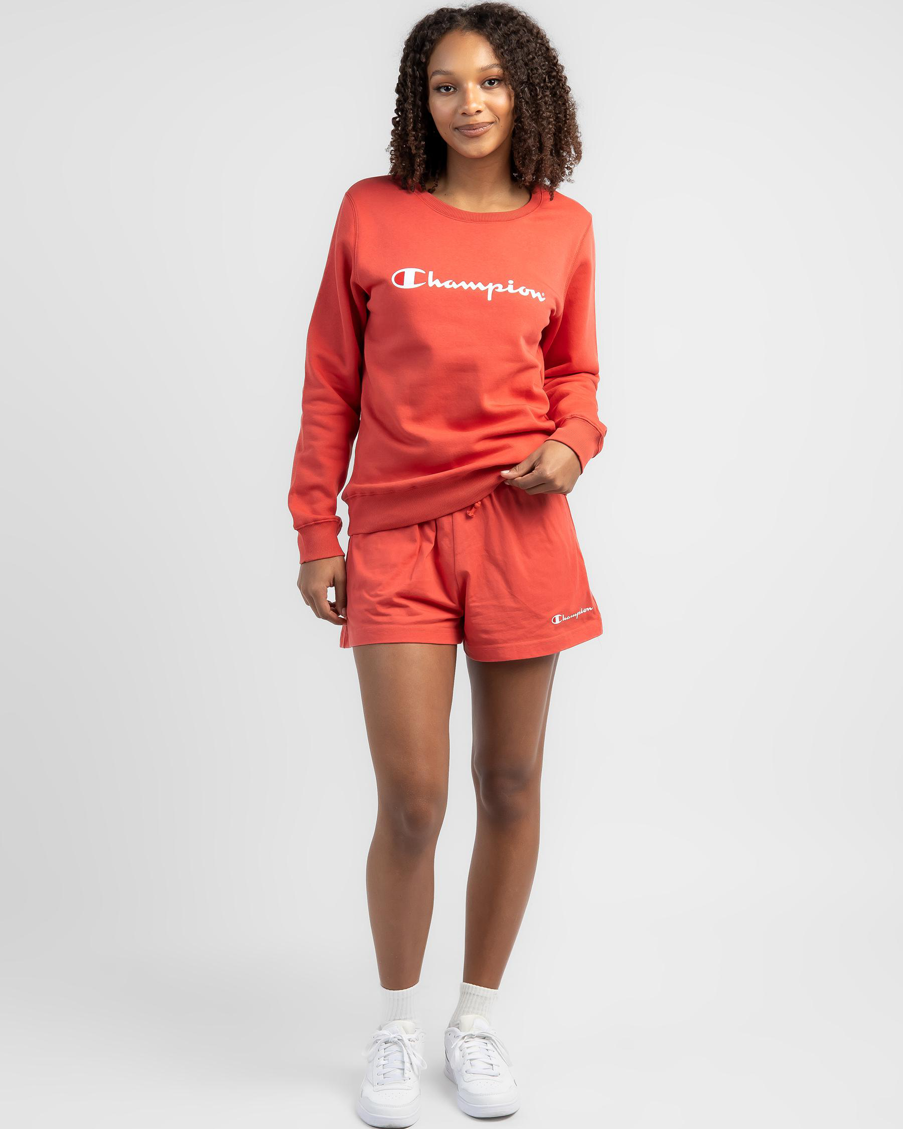 Stay cozy in the Champion Logo Sweatshirt in a vibrant, happy day hue. The iconic logo adds a sporty touch to your casual look.