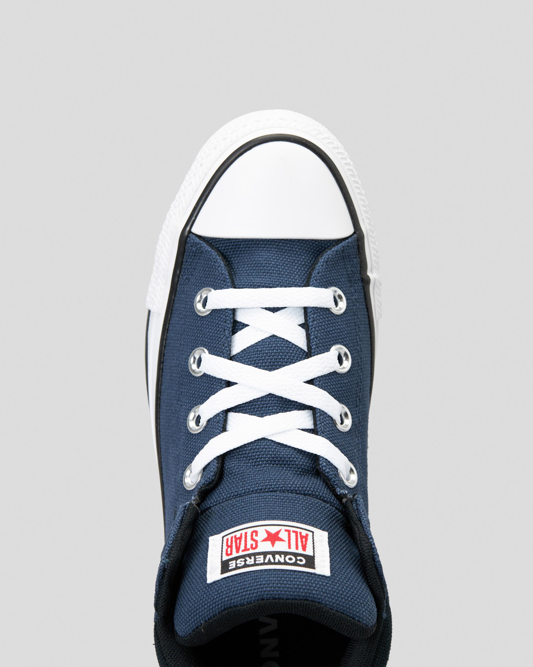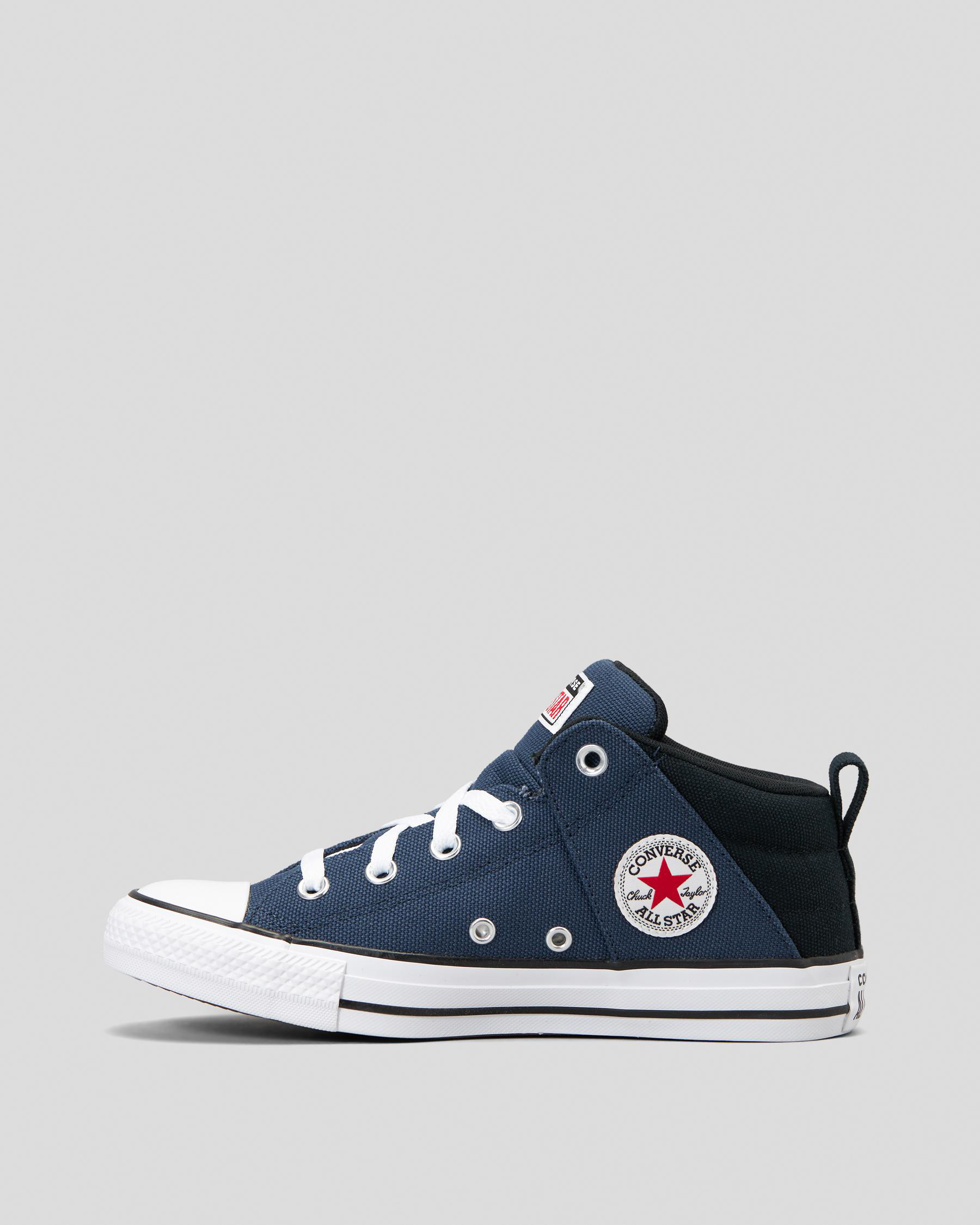 Step up his street style with the Converse Boys' CTAS Axel Sport Remastered Shoes in navy. These classic kicks feature a sleek design with a pop of black and white for added flair.