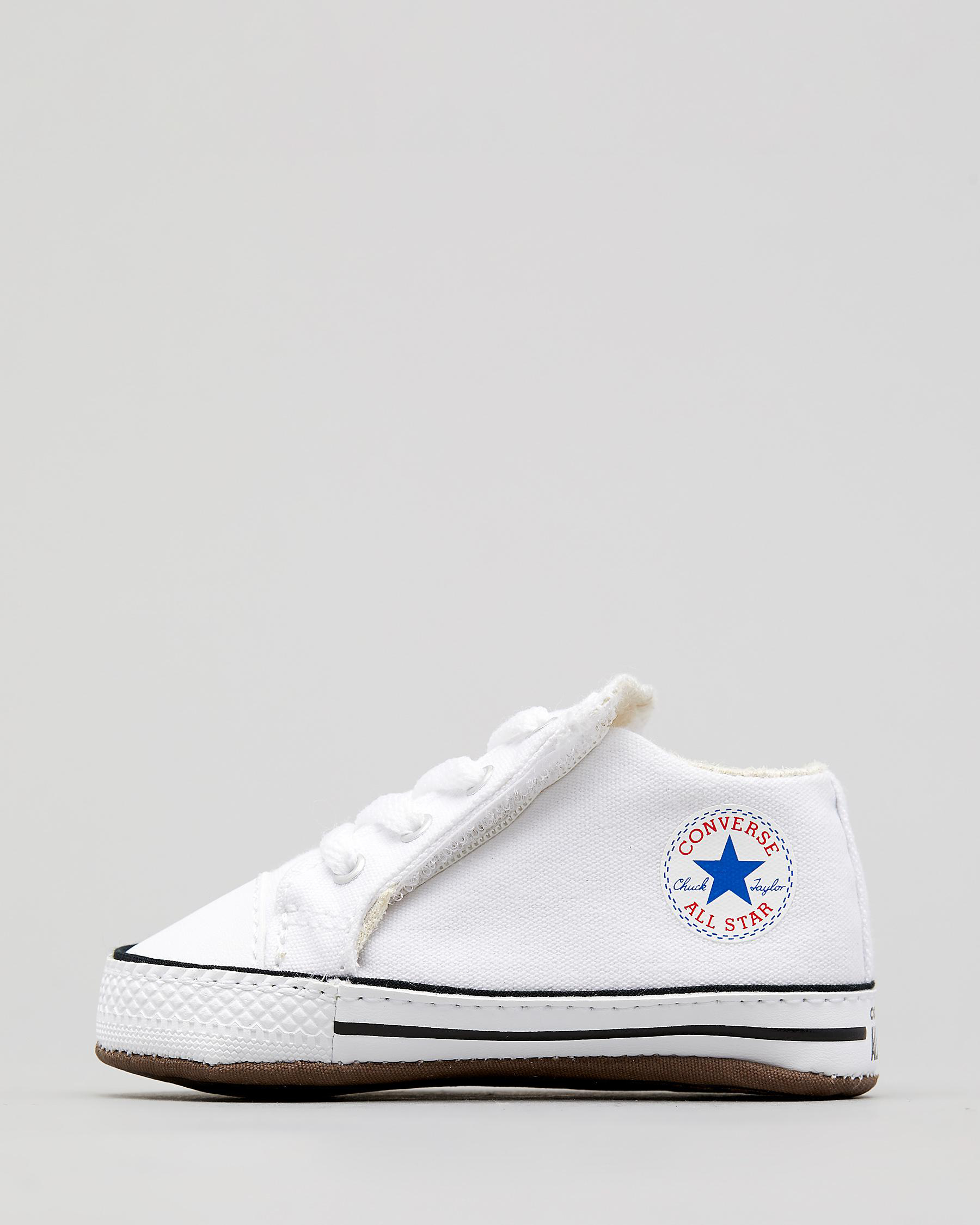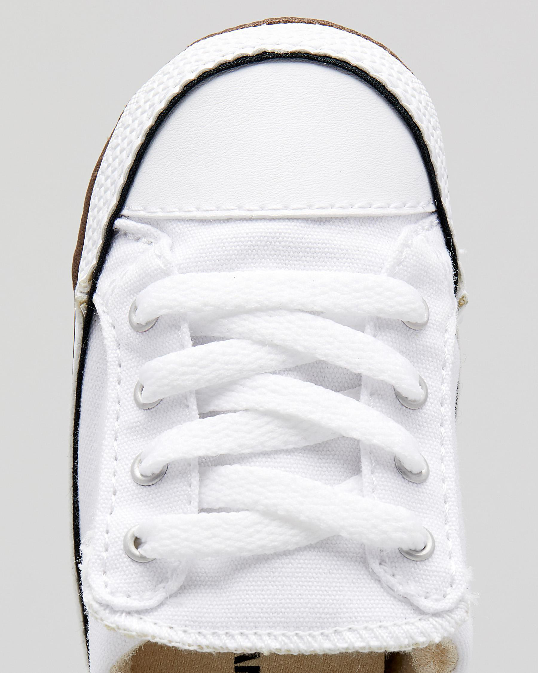 Step out in style with the Converse CT Cribster Shoes in crisp white. These adorable crib shoes are perfect for your little one's first steps.