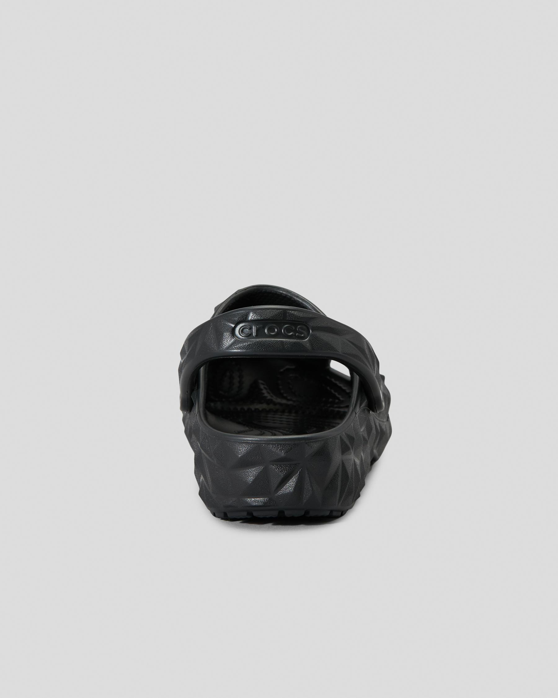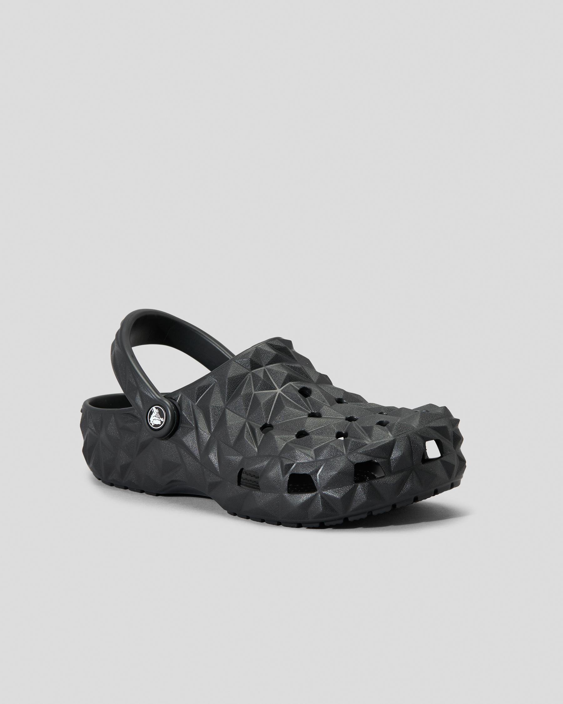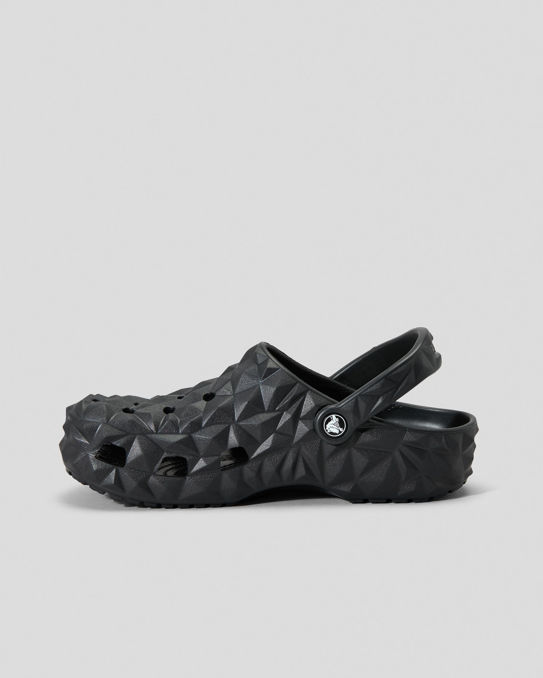 The Crocs Classic Geometric Clog in Black features a sleek, modern design that adds a touch of sophistication to any outfit.