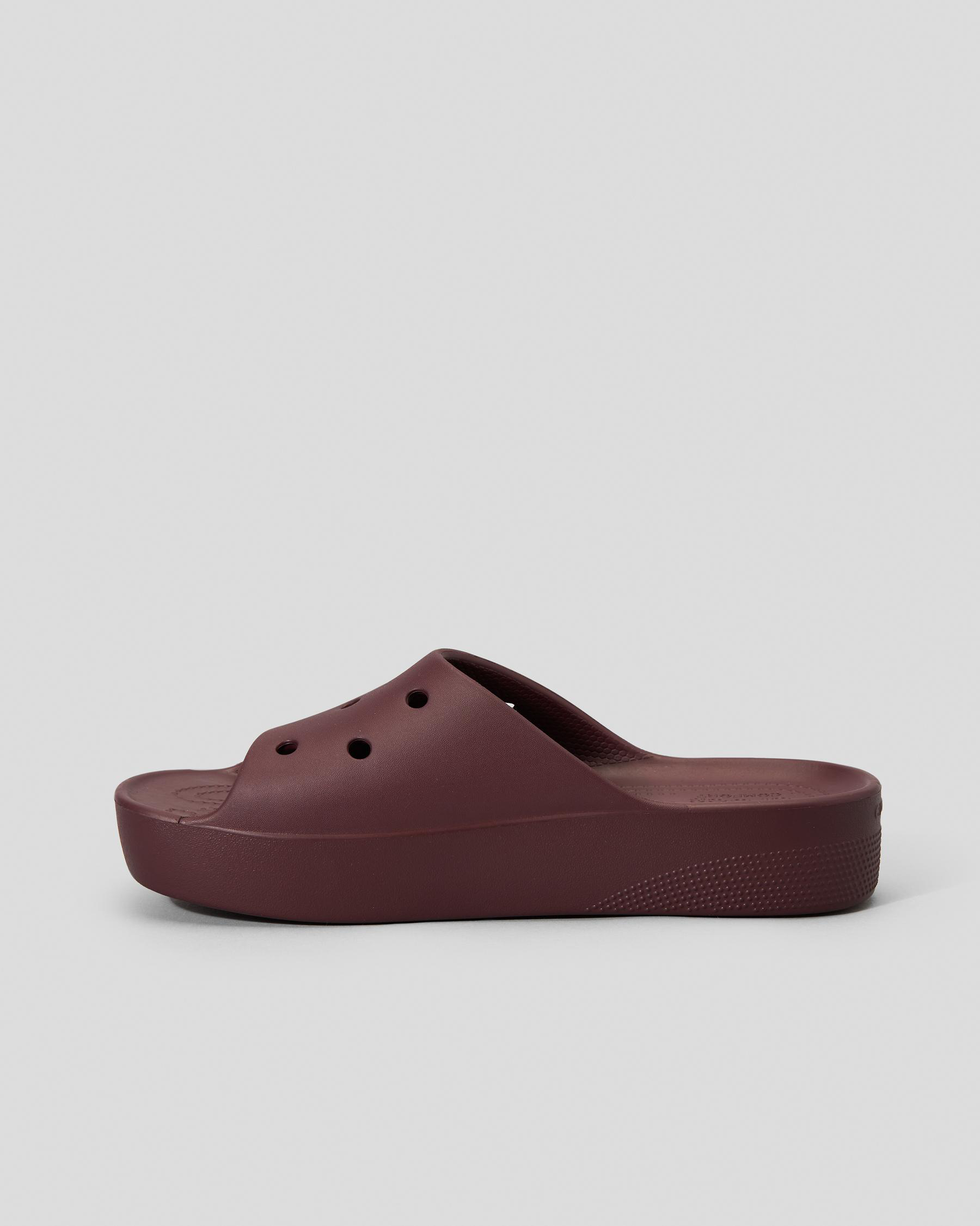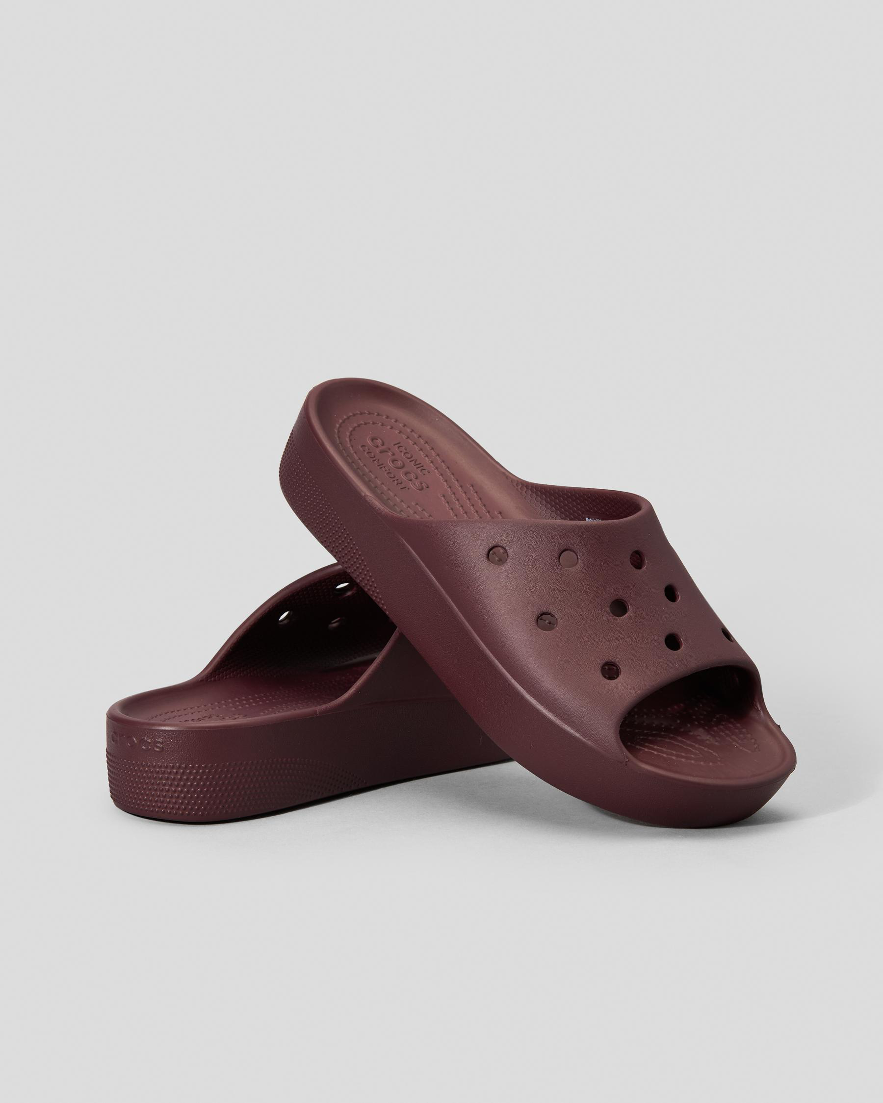 Step out in style with the Crocs Classic Platform Slides in Dark Cherry. The deep red hue adds a pop of color to any outfit. Read more