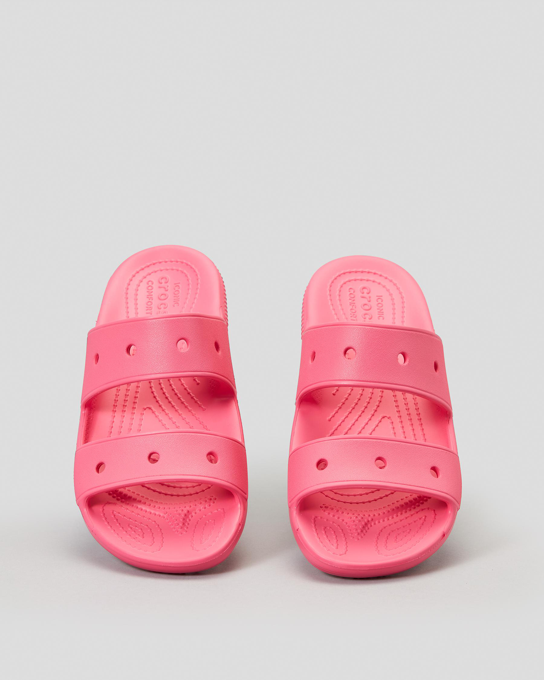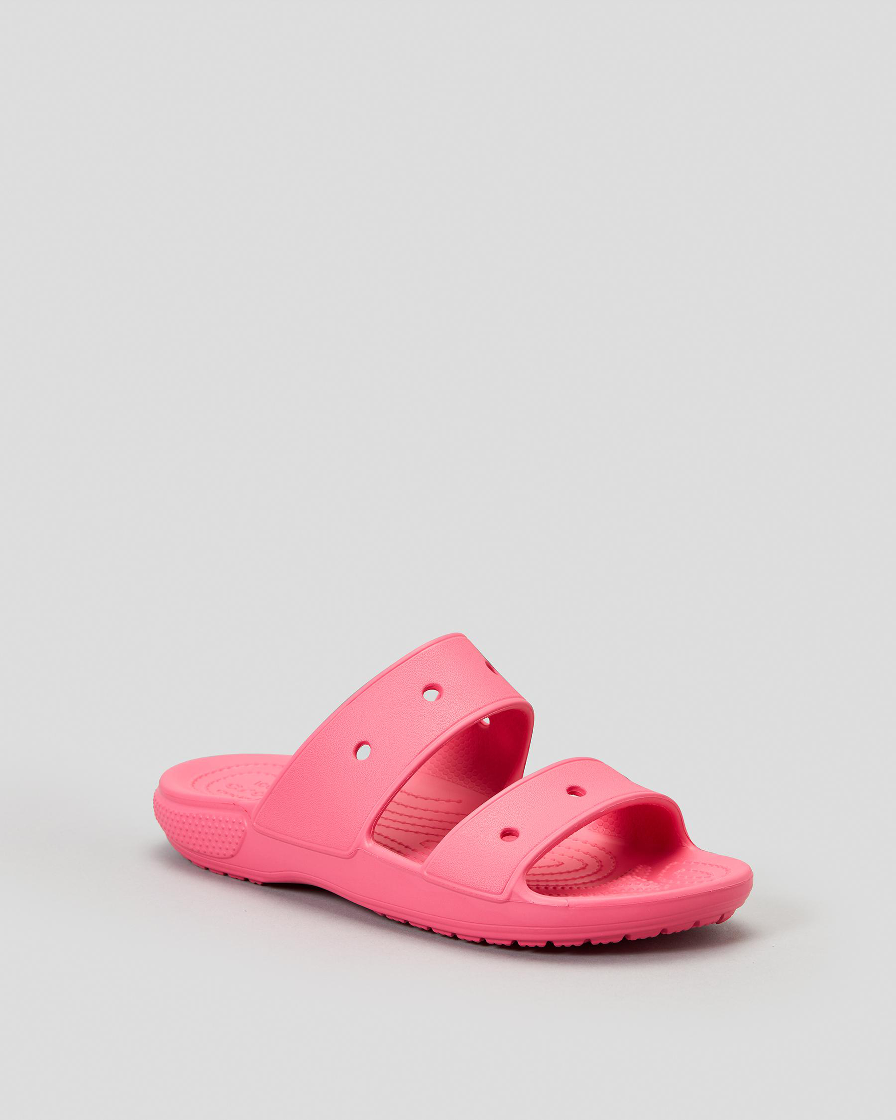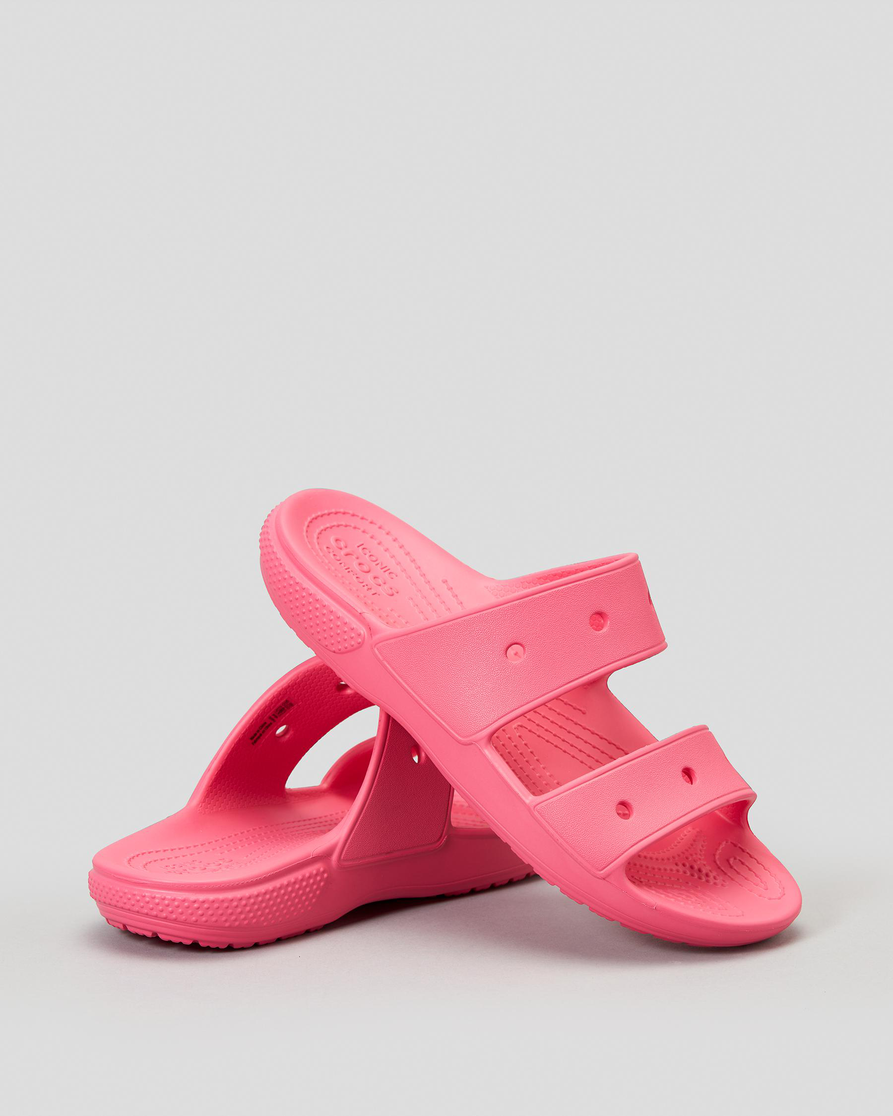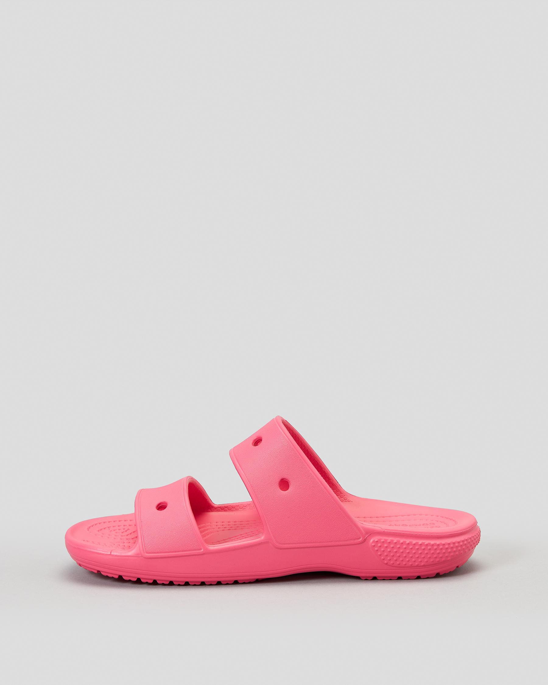 Add a pop of color to any outfit with the Crocs Classic Sandal in Hyper Pink. Comfortable and stylish, perfect for warm weather adventures.