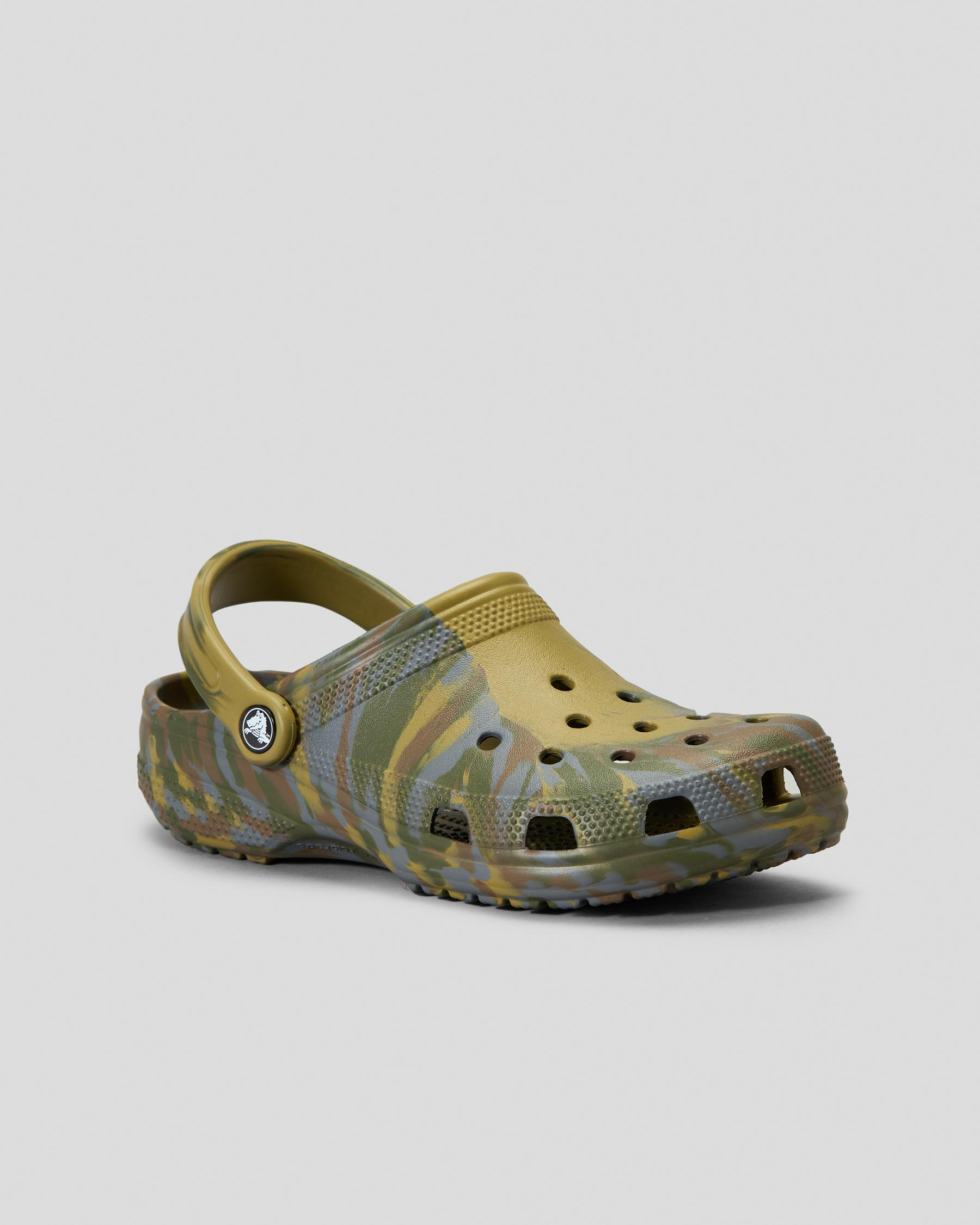 The Crocs Marble Classic Clogs in Aloe Green are a stylish choice for any casual outfit, featuring a unique marble design.
