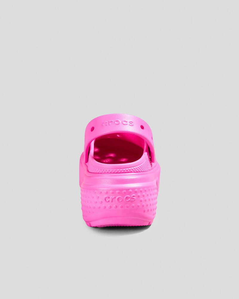 Step out in style with the Crocs Stomp Clogs in Pink Crush. These versatile clogs are the perfect blend of comfort and fun for any casual outfit.