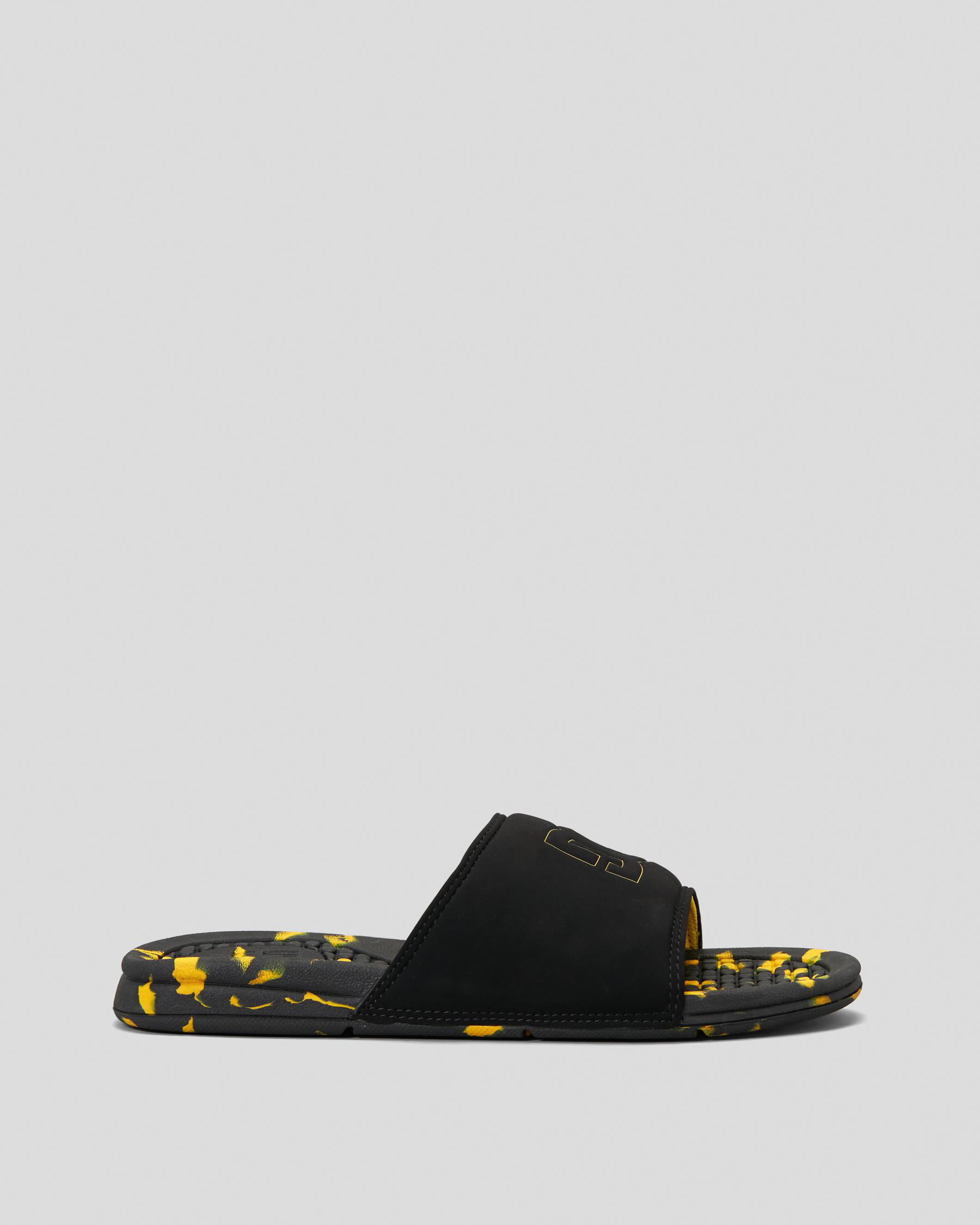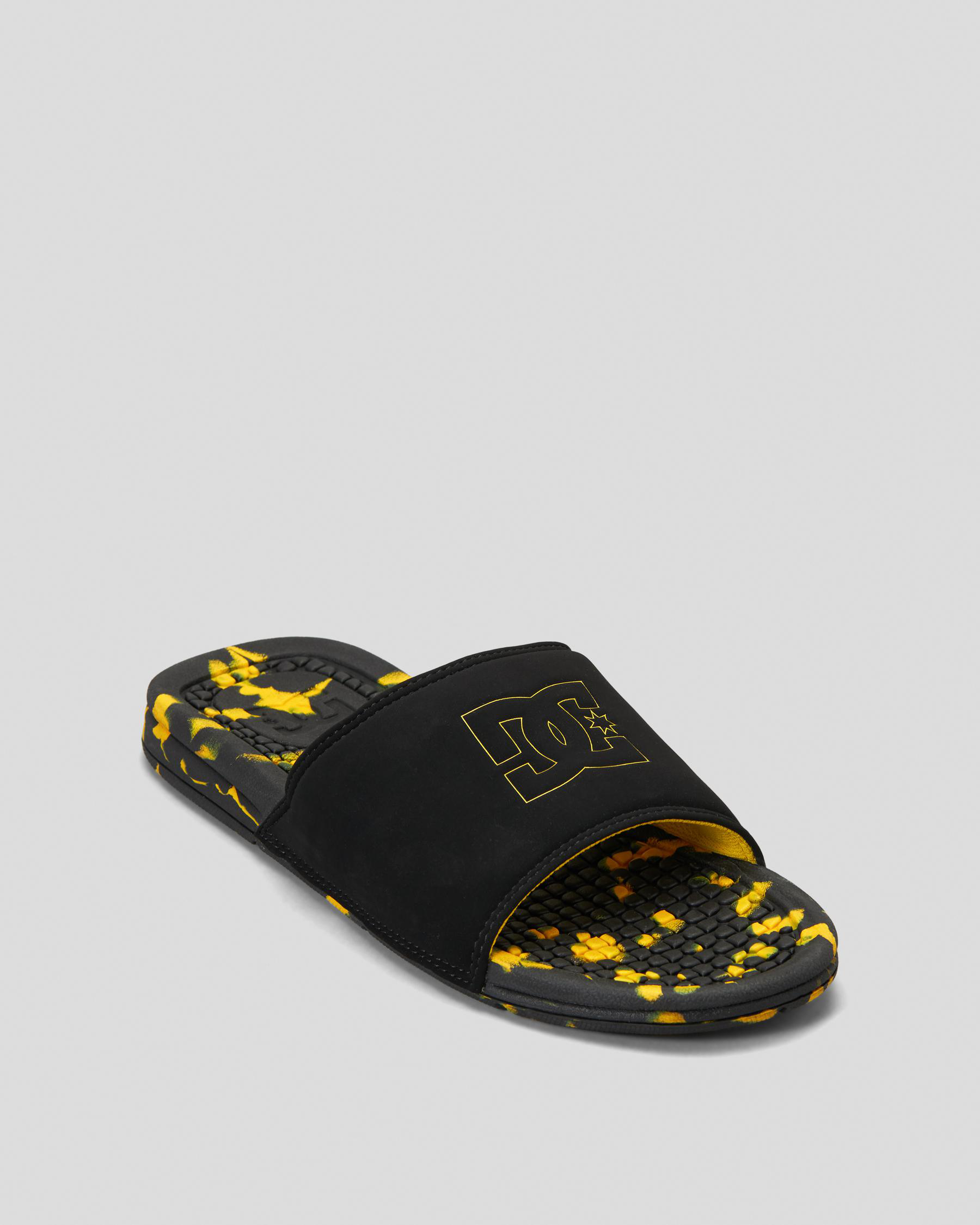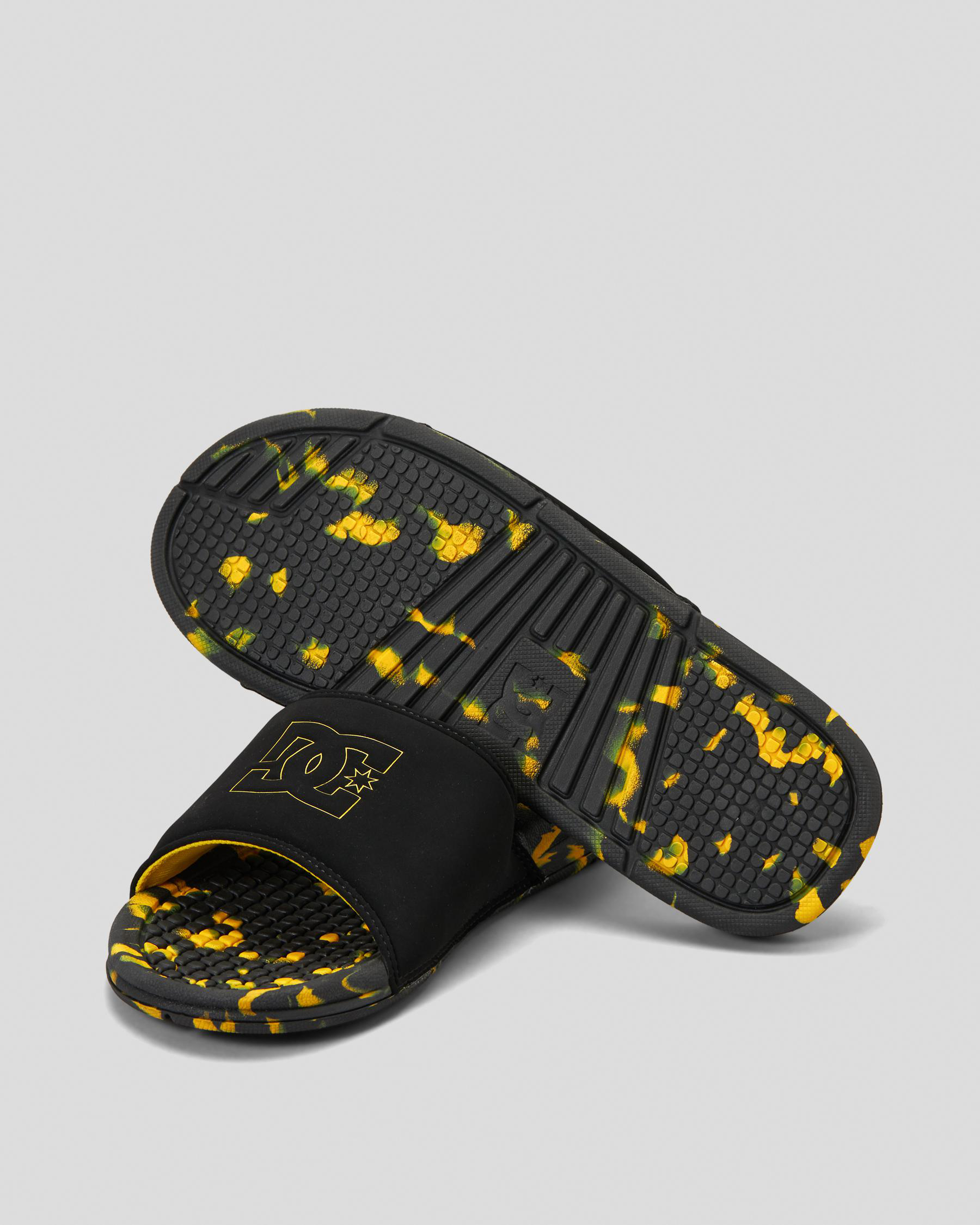 Slip into style with these DC Shoes Bolsa slides in sleek black. Accented with a pop of yellow for a bold touch.