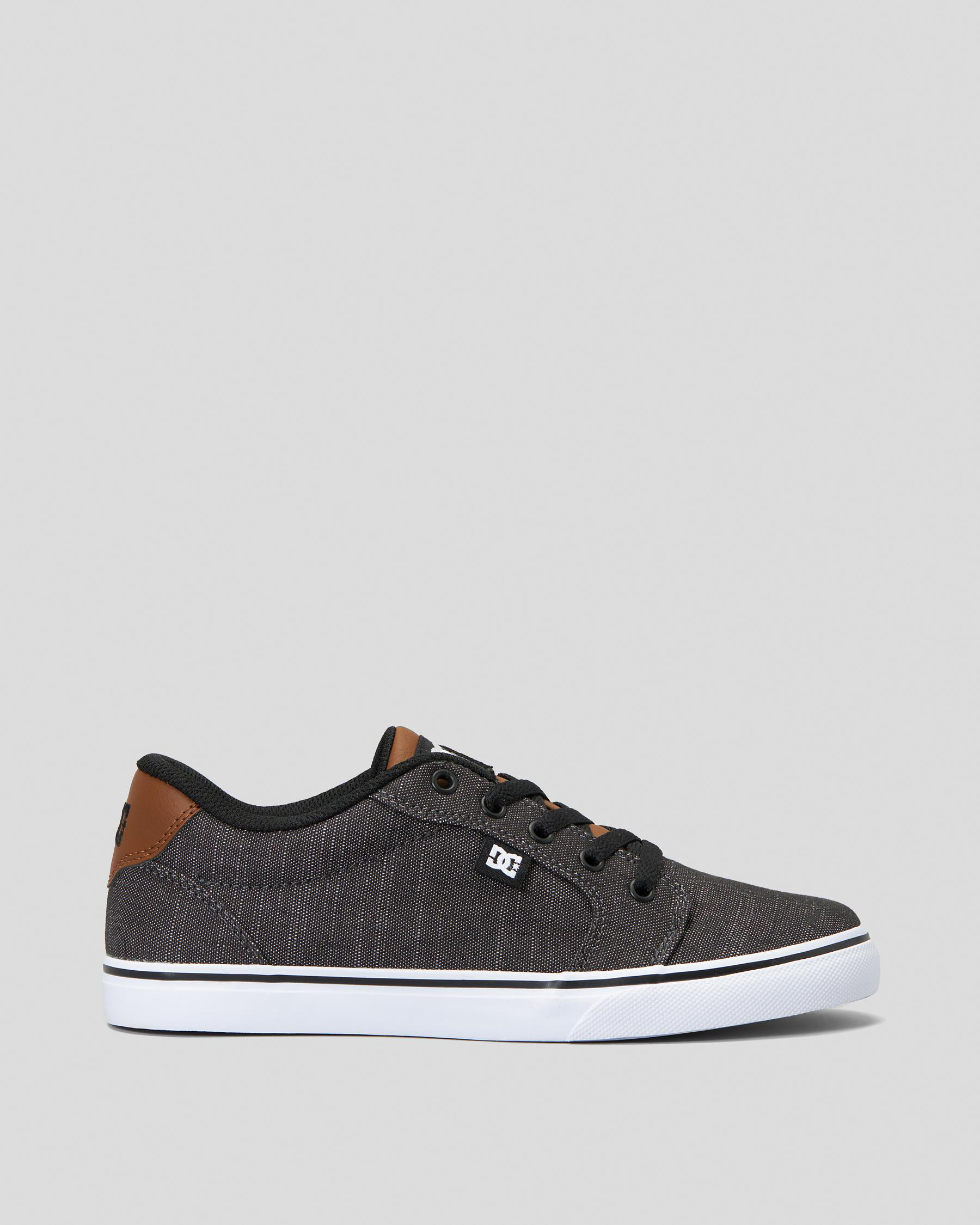 The DC Shoes Boys' Anvil SE Shoes in Dark Grey feature a sleek and versatile design, perfect for everyday wear.