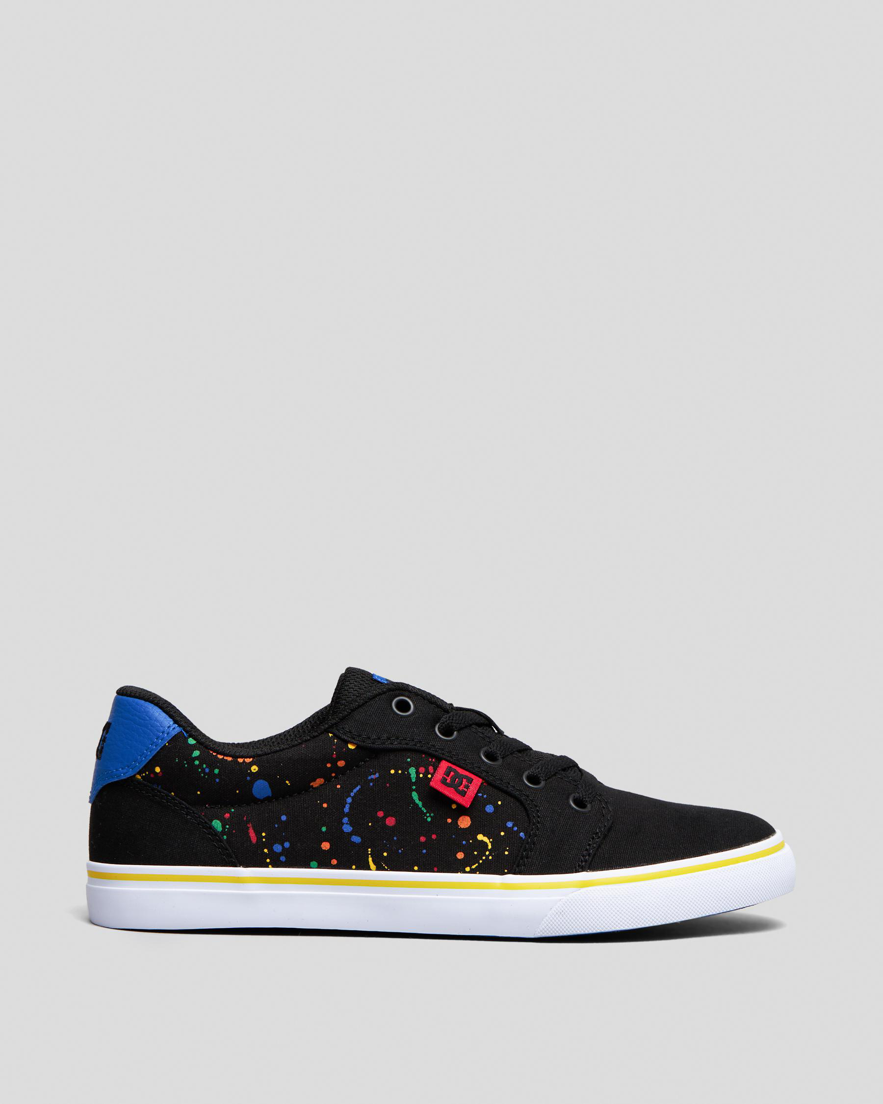 The DC Shoes Boys' Anvil Shoes in Black are a classic choice with a fun splatter design for added flair. Perfect for everyday wear. Read more