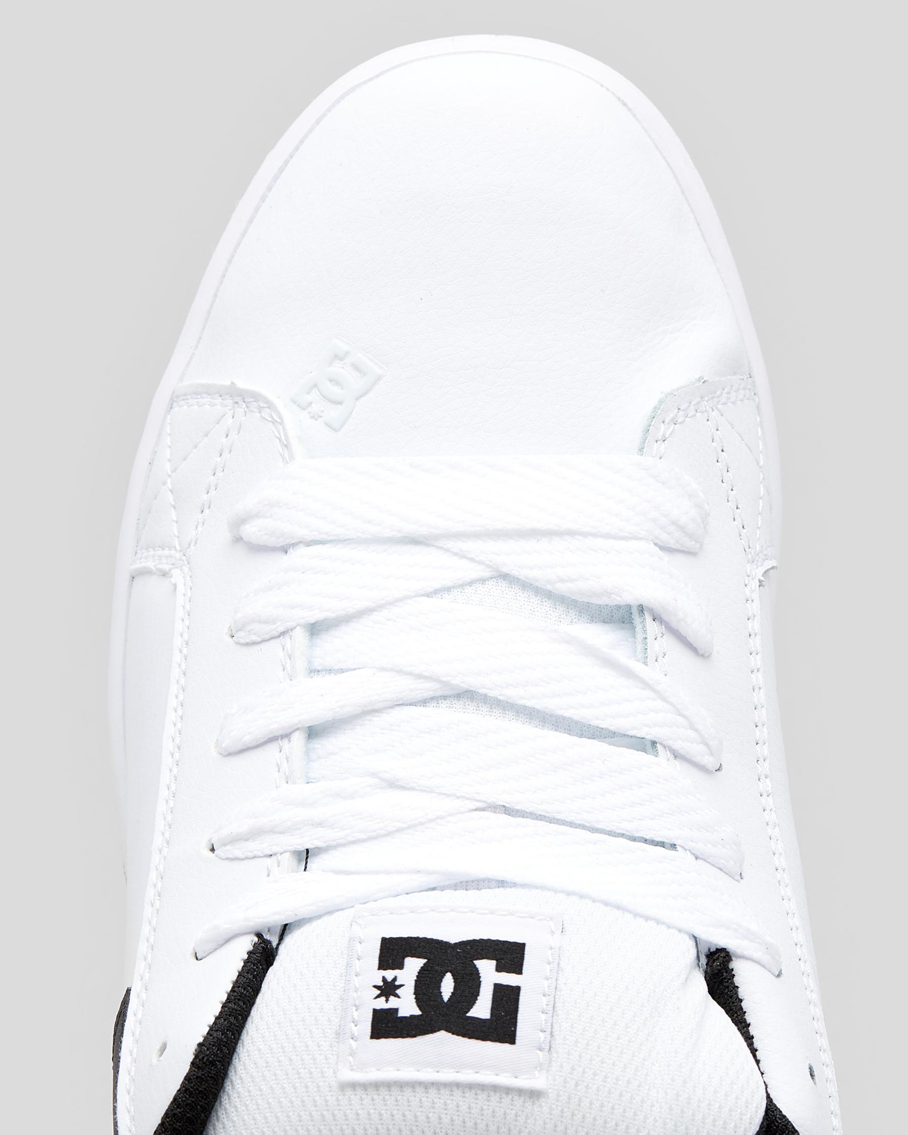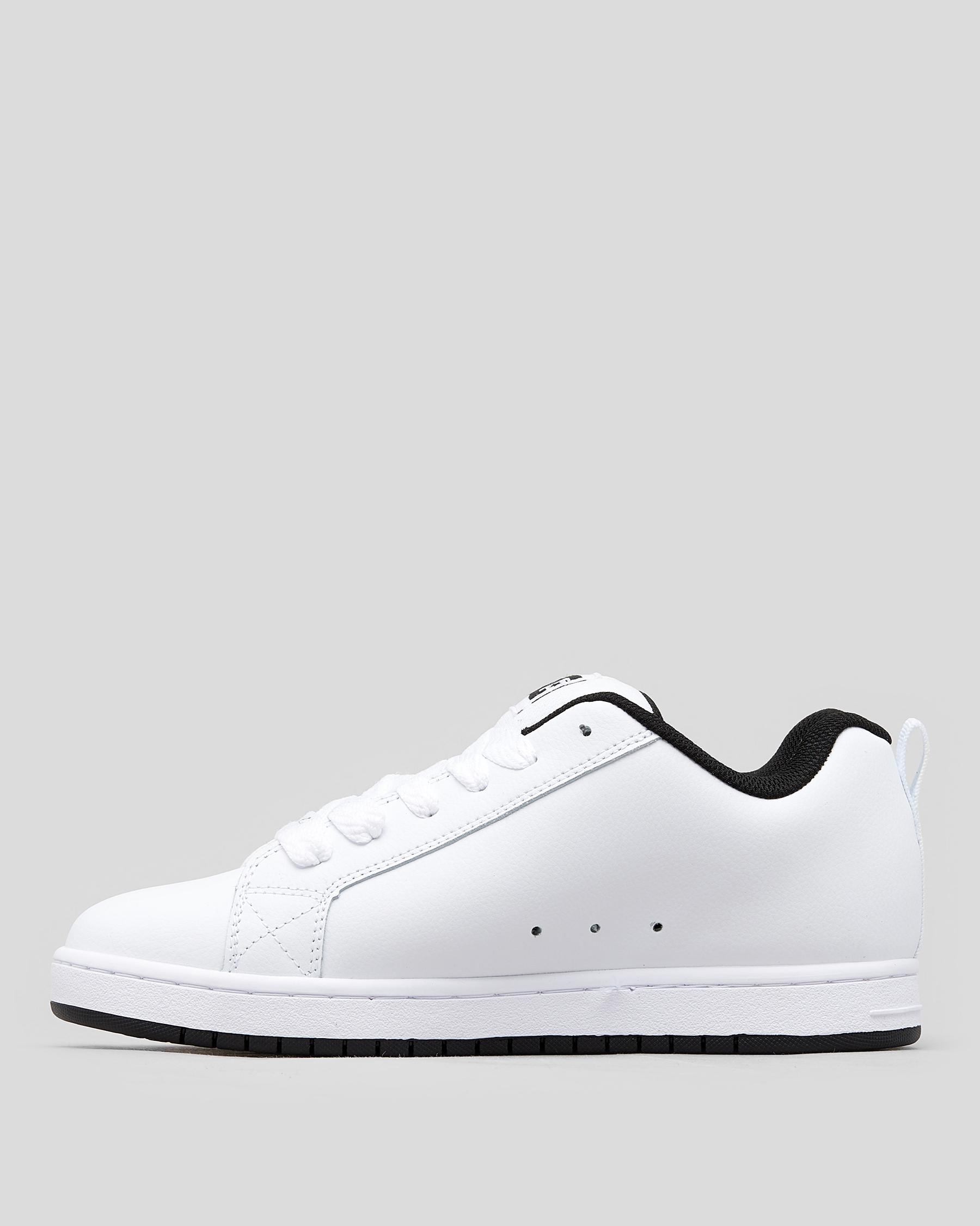The DC Shoes Court Graffik Shoes in white offer a sleek and stylish look, with a touch of black for added edge. Perfect for any casual outfit.