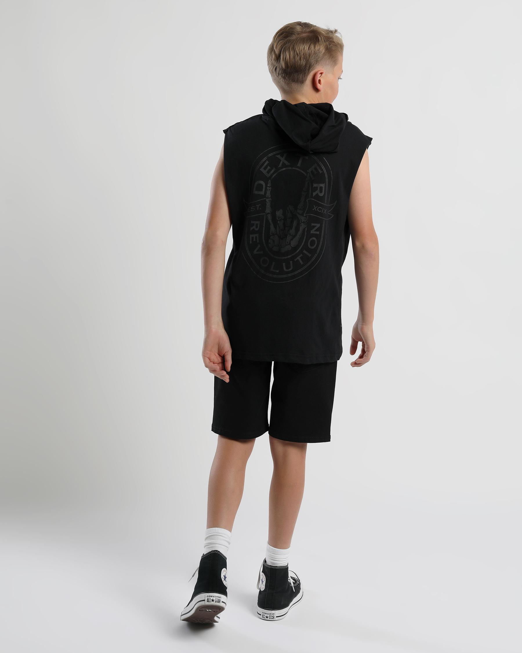 The Dexter Boys' Hardcore Hooded Muscle T-Shirt in Black is a must-have for edgy young trendsetters.