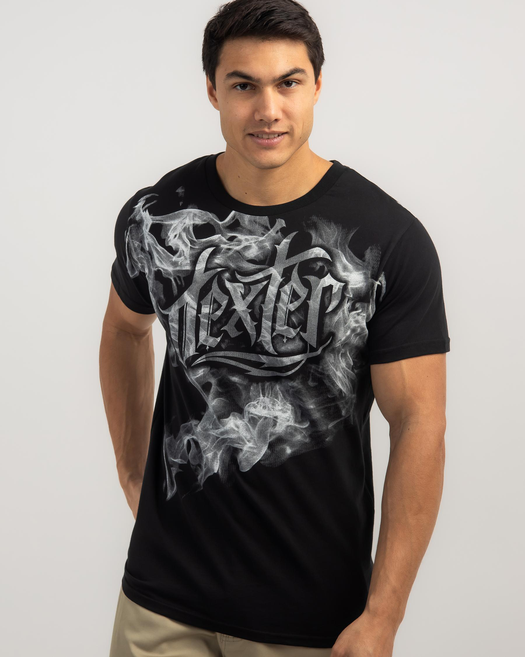 the sleek Dexter Exhaust T-shirt in black. A versatile wardrobe staple for effortless style and edgy vibes.